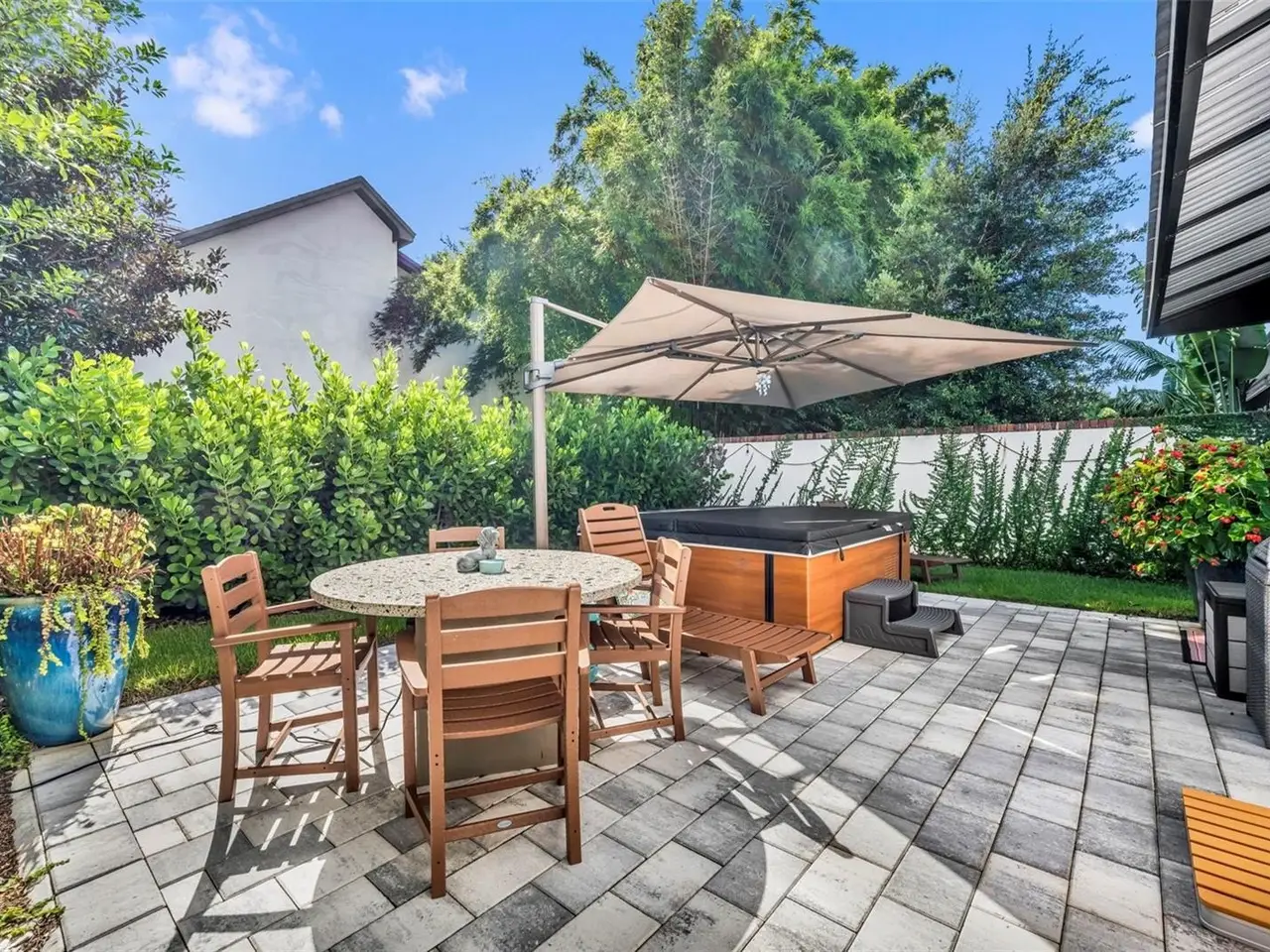 Private backyard oasis with hot/cold tub