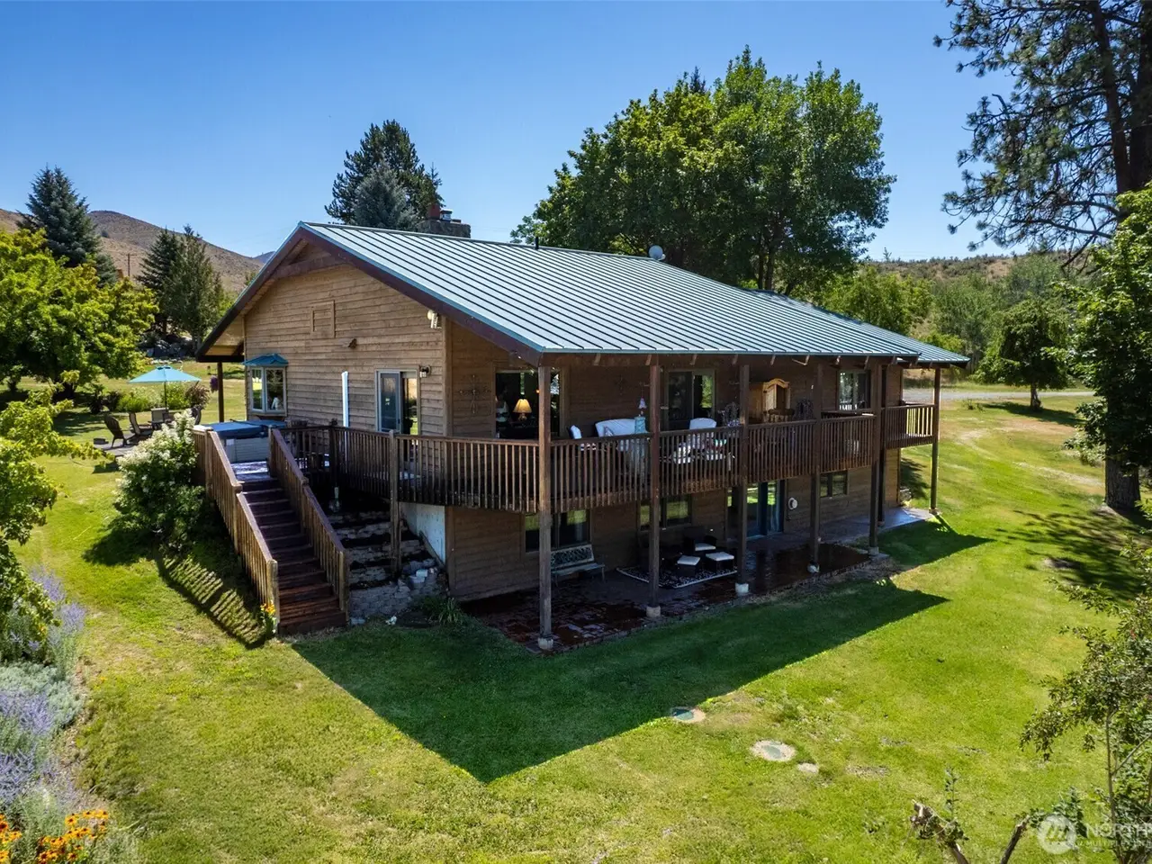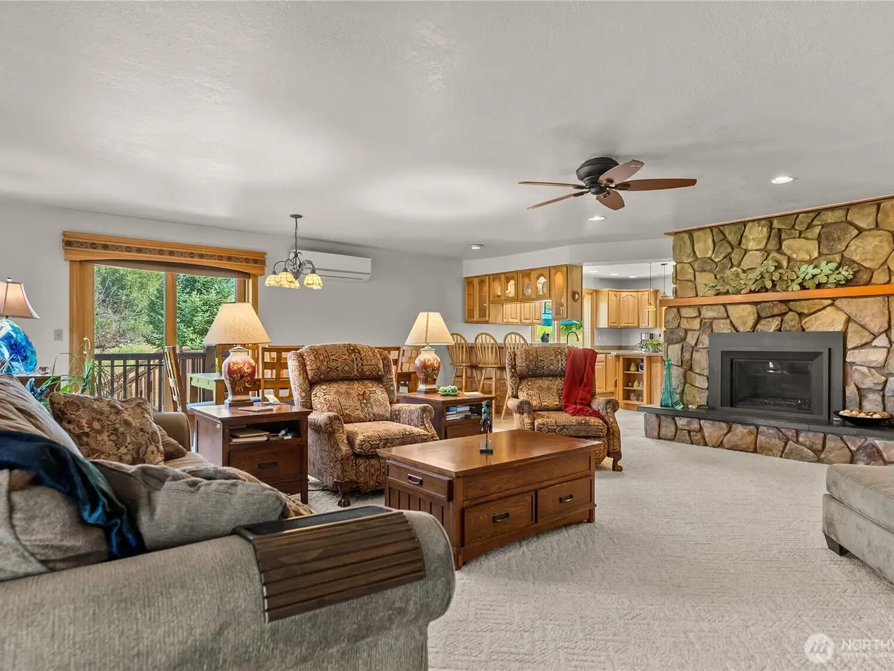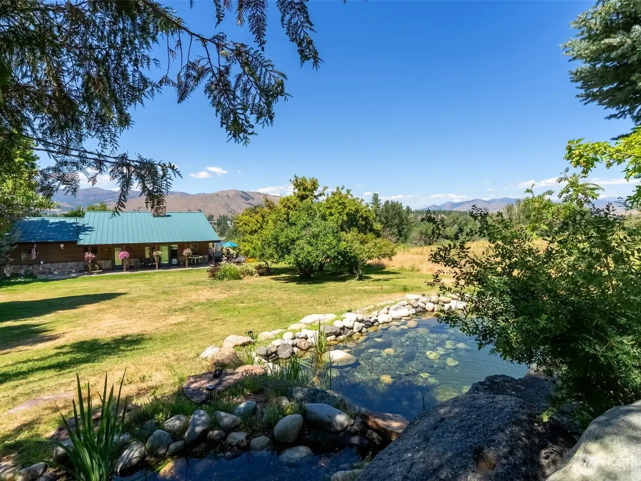 Discover your dream retreat on 25.56 acres! This expansive 3,960 square foot home features three bedrooms and three bathrooms, including a primary suite with a cedar closet. Enjoy the option for a lower-level rental with a full kitchen. Beautiful cedar siding enhances the exterior, while the interior boasts a propane fireplace and a mix of carpet, tile, and laminate flooring. Relax on the covered redwood deck, taking in stunning views of the river and mountains. The property also features a hot tub, expansive lawns, well-established flower gardens, and a tranquil pond with a fountain. Additionally, there's an extra single-wide manufactured home - ideal for guests or generating rental income! With two parcels and ample privacy, this is a rare find!