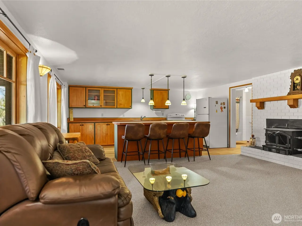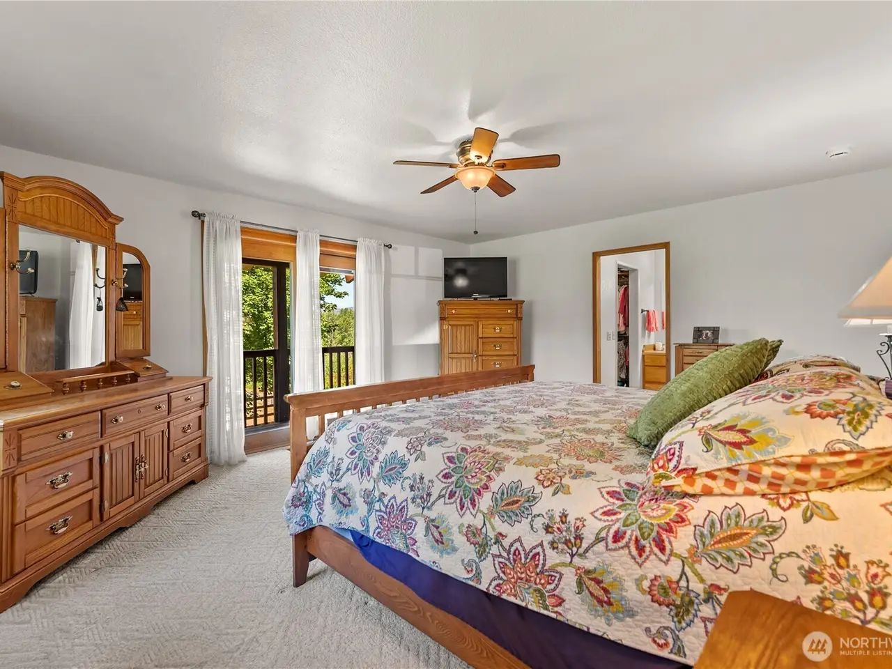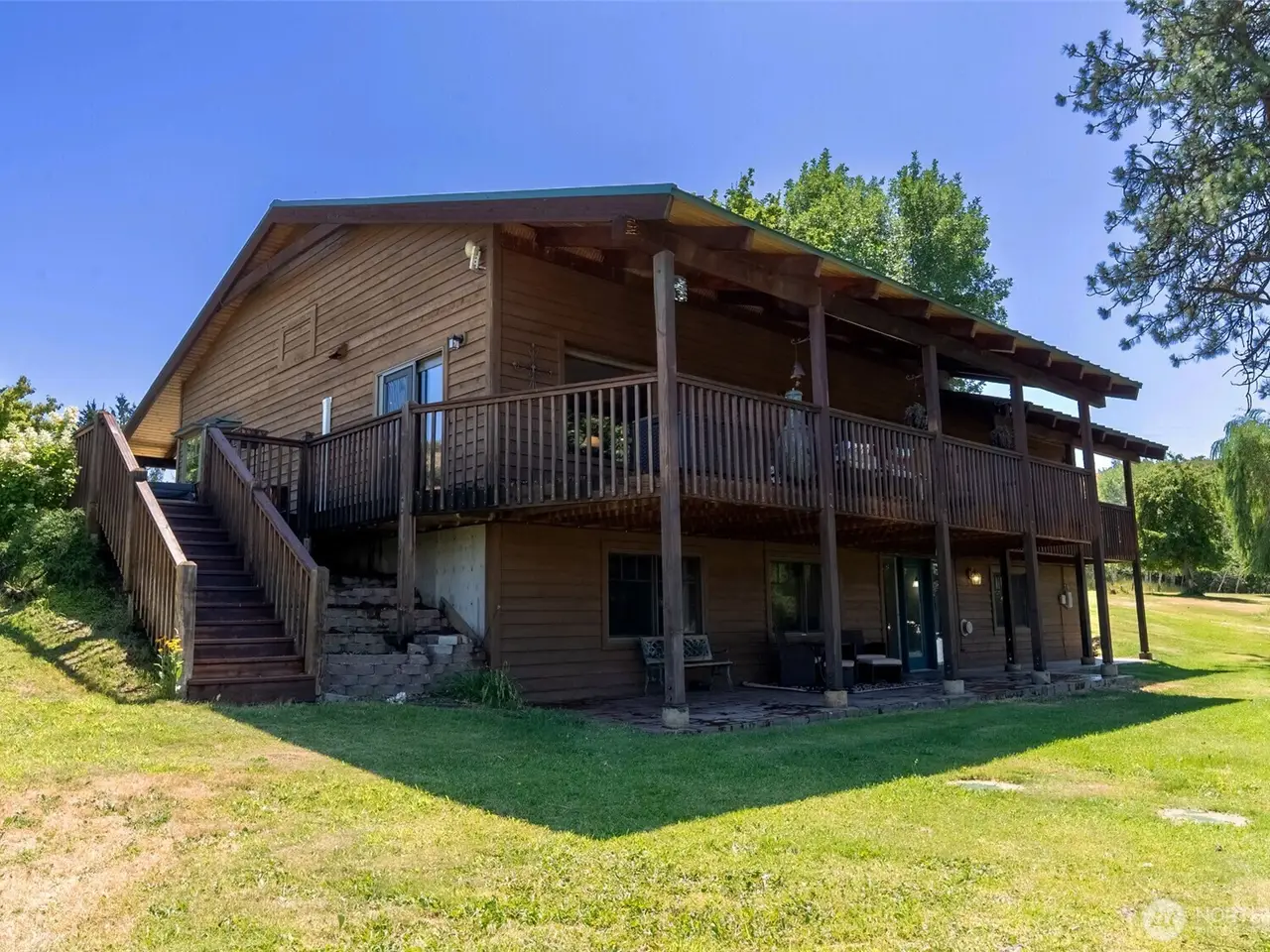 Discover your dream retreat on 25.56 acres! This expansive 3,960 square foot home features three bedrooms and three bathrooms, including a primary suite with a cedar closet. Enjoy the option for a lower-level rental with a full kitchen. Beautiful cedar siding enhances the exterior, while the interior boasts a propane fireplace and a mix of carpet, tile, and laminate flooring. Relax on the covered redwood deck, taking in stunning views of the river and mountains. The property also features a hot tub, expansive lawns, well-established flower gardens, and a tranquil pond with a fountain. Additionally, there's an extra single-wide manufactured home - ideal for guests or generating rental income! With two parcels and ample privacy, this is a rare find!