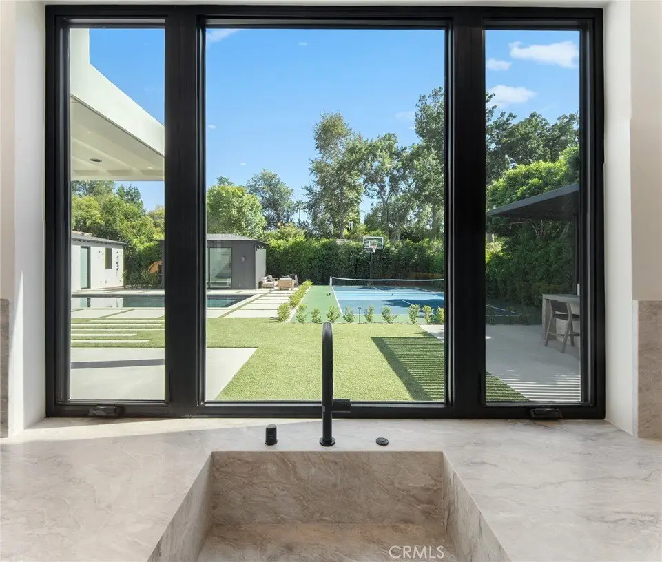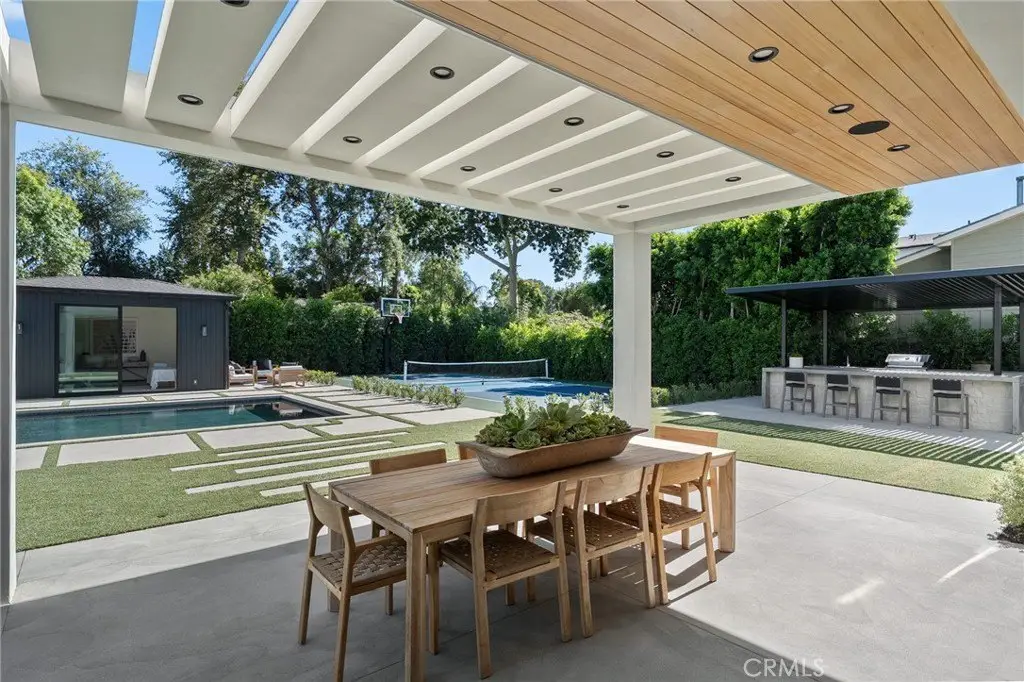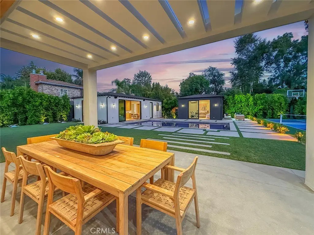 Welcome to this exquisite custom-gated estate, just completed and situated in the prestigious Walnut Acres community of Woodland Hills, CA. Nestled on a tranquil, quiet, and desirable street, this luxurious property offers a total living area of 6,418 square feet. It features a primary residence of 5,369 square feet, an 830-square-foot guest house, and a 219-square-foot gym. The estate features six spacious bedrooms, each with its own en-suite bathroom, as well as a guest bathroom located downstairs. Exceptional amenities include a sports court/pickleball court, a pool, a jacuzzi, a sauna, and an outdoor covered barbecue area. Inside, you will find a state-of-the-art theater room and convenient laundry facilities on both levels. Set on an expansive 18,338-square-foot flat lot, this property presents a rare opportunity to own a home in one of Woodland Hills' most sought-after neighborhoods.