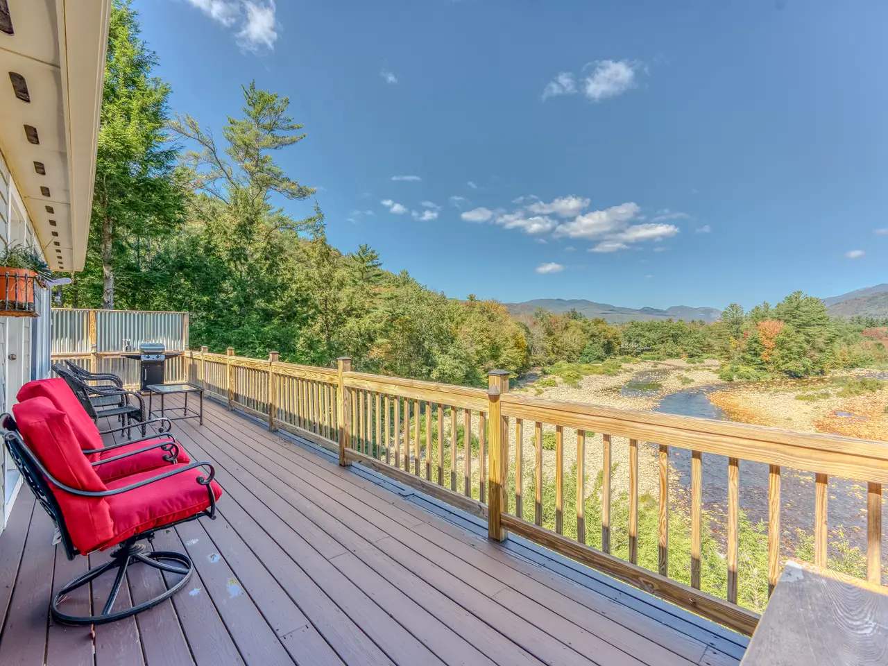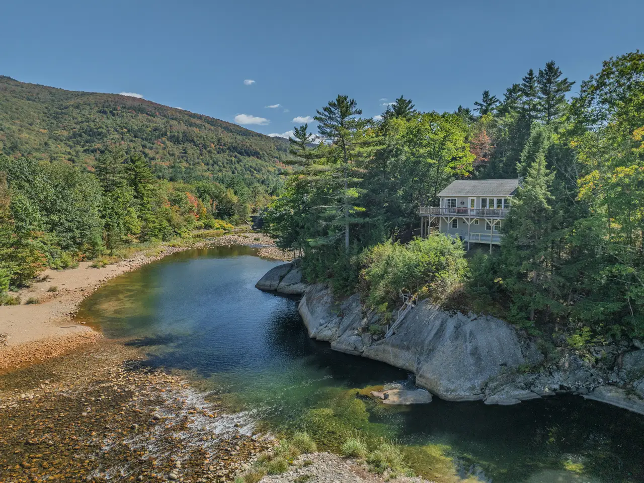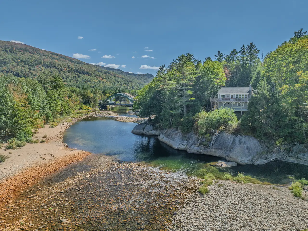 Rare Riverfront Retreat with Unmatched Views in the Heart of the White Mountains. A luxurious riverfront escape offering the best of both worlds: approximately 400 feet of prime, accessible frontage on the Pemigewasset River and stunning views down the mouth of Franconia Notch. Perched atop a scenic granite ledge on just under an acre, this remarkable property provides the perfect blend of nature, privacy, and convenience. Located less than a mile from Main Street in Lincoln, just three miles to Loon Mountain, and 10 miles to Cannon Mountain, you’re right in the heart of all the White Mountain region has to offer. Inside, the home features a bright and open layout, with a variety of rich hardwood floors and elegant tile throughout. The upper level boasts a spacious open-concept kitchen and living area, centered around a beautiful fireplace and flowing seamlessly out to a large deck—perfect for entertaining or soaking in the view. The primary suite occupies the top level, complete with a large walk-in closet and private access to the upper deck. Multiple stairways lead from the home to the yard, riverbank, and a cozy fire pit area. This home is being sold fully furnished, with an established rental history and professional property management in place for a seamless investment opportunity or private retreat. Private showings only—please do not enter the property without a scheduled appointment. Currently used as a four-bedroom home (with a three bedroom septic system).