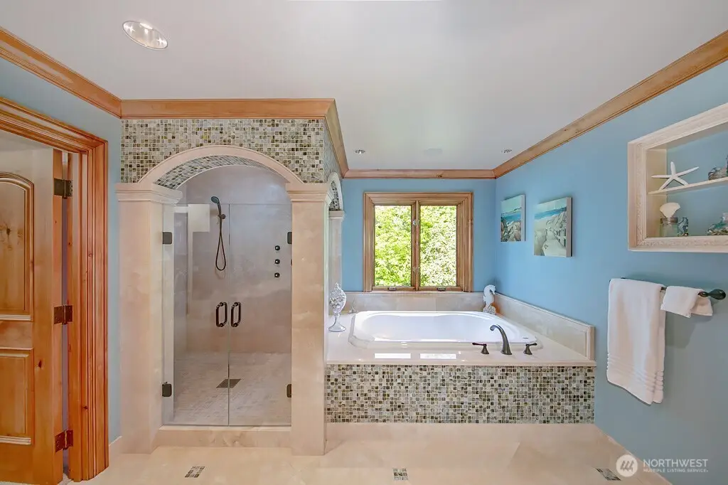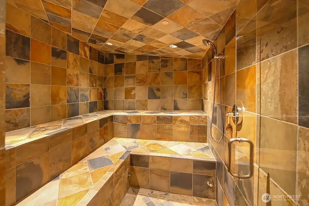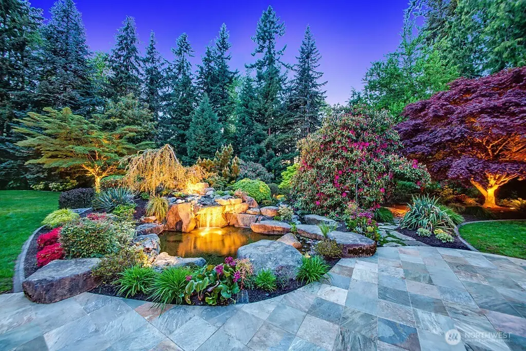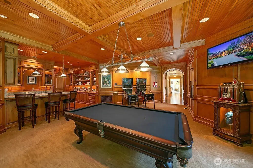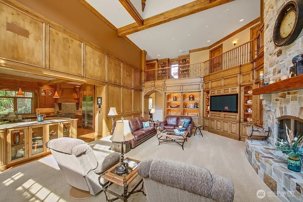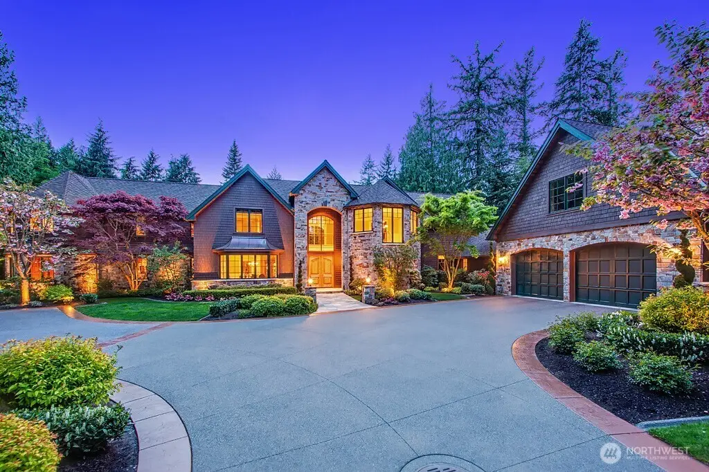 Auto enthusiasts will be captivated by the world-class collector's garage, featuring 14 bays and an impressive showroom - just the beginning of the unmatched luxury this private gated estate offers. Set on 2.79 acres, the home seamlessly blends distinctive European architecture with the natural splendor of the Northwest. Meticulously crafted interiors showcase soaring cathedral ceilings and rich wood and stonework, echoing the region's rugged beauty. Step outside to a covered heated patio designed for year-round enjoyment, with a stone fireplace, hot tub and tranquil waterfall - complemented by a nearby steam room. Entertain in style with a billiards parlor, bar and home theater. Minutes from waterfront parks, I-5, downtown Edmonds and Seattle.