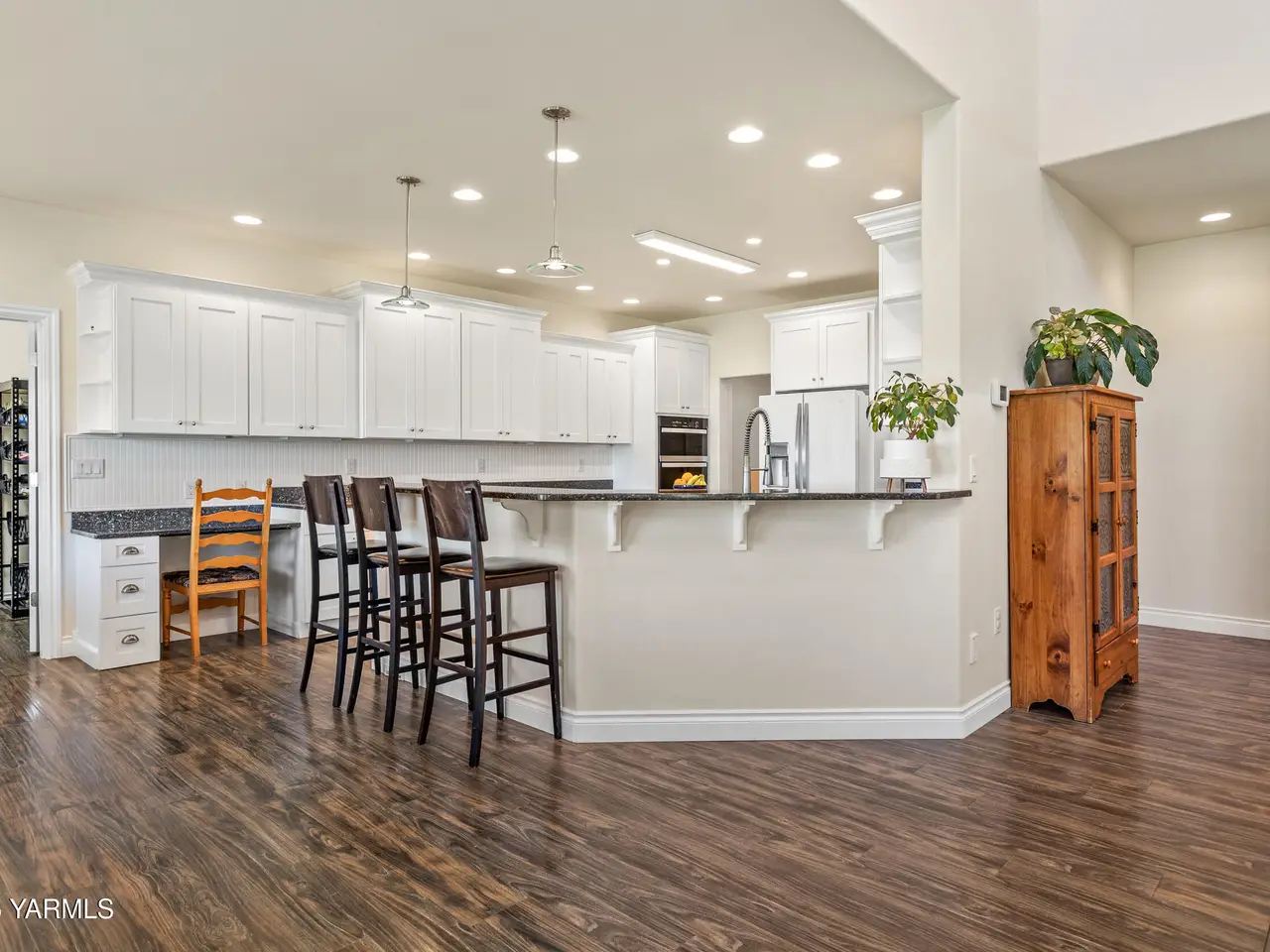 Modern families need flexible, multigenerational living options--and this custom-built home by Smith Construction in West Valley delivers. With 4028 sq. ft., 5 bedrooms, and 3.5 bathrooms, this spacious home is designed for comfort and functionality. A detached 864 sq. ft. ADU offers 1 bedrooms, 1.5 baths, an open kitchen/living area, and its own 2-car garage--perfect for an aging parent, adult child, or guest.The main house features a bright open living area with a gas fireplace and soaring 20-foot vaulted ceilings. Durable LVP flooring runs through common spaces, with carpeted bedrooms and tiled bathrooms. Granite countertops shine throughout. The kitchen boasts a new built-in microwave/oven, cooktop with second oven, center island, desk, and a Butler's Pantry.The oversized primary suite includes space for seating, heated tile floors, a jacuzzi tub, walk-in shower, and skylights. Upstairs, a private en-suite bedroom is ideal for guests. Additional highlights: central vacuum, media system, arched walls, and a 3-car garage with boat space. Enjoy Cascade Mountain views from the covered back porch. The fenced yard includes mature trees, a shed, timed irrigation, and gas BBQ hookup. Community Well and Yakima-Tieton Irrigation.