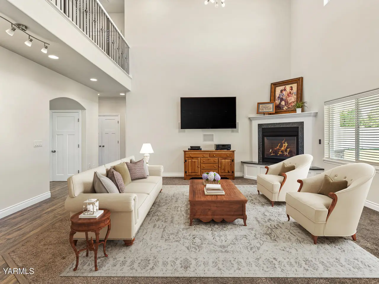 Gas fireplace with 20-foot vaulted ceilings
