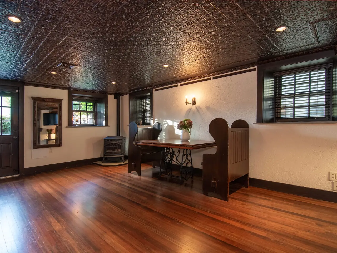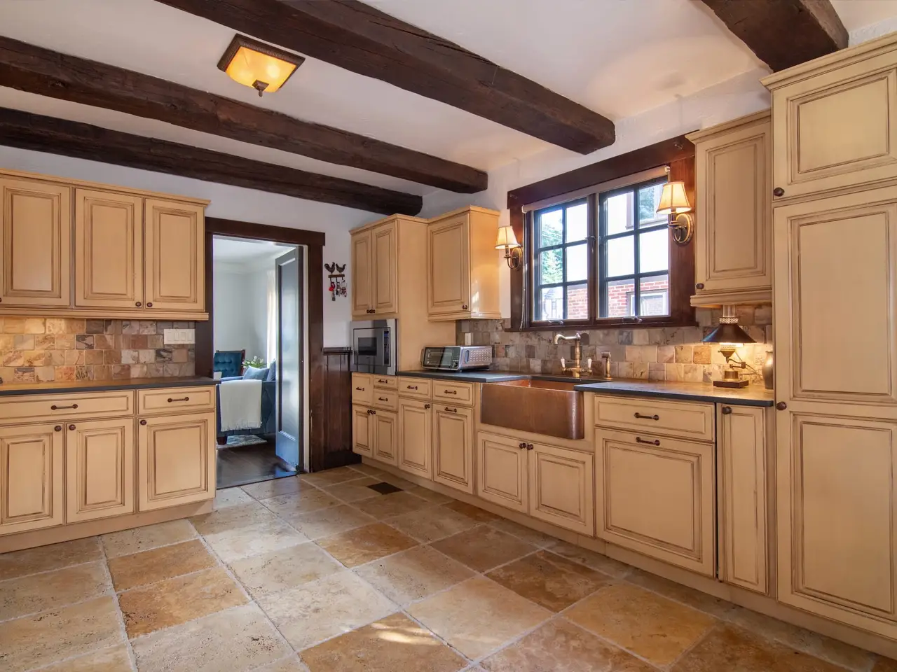 Welcome to this beautifully maintained 3-bedroom which lives like a 4 bedroom, 3-bath Tudor nestled on a quiet, newly paved cul-de-sac in the heart of Lincoln Park. Combining timeless charm with modern amenities, this residence offers a lifestyle of comfort, privacy, and convenience. Thoughtful renovations were completed with careful attention to preserving the homes original architectural features.The exterior showcases classic English Tudor architecture with red windows, stonework, exposed black beams, and white stucco, framed by a charming archway side entrance and a long private driveway. Step inside through the welcoming entryway into a spacious and sun-filled interior designed for both entertaining and everyday living.The first floor features a grand dining room with a wood-burning fireplace and oversized window, perfect for gatherings. A sun-filled family room overlooks Kneeland Avenue and flows seamlessly into the expansive kitchen with custom cabinetry, stainless steel appliances, radiant-heated floors, copper farmhouse sink, wainscoting, and antique 1800s wood-beam ceilings. A bright sunroom with door leading to the deck and backyard, a serene spot for morning coffee or reading. A flexible bedroom or den along with a full bathroom complete this level.Upstairs, the primary suite offers an en-suite bath with tub and shower combination and a walk-in dressing room with dual closets. Two additional spacious bedrooms, each with double closets, and a full hall bathroom. The second-floor landing opens to a private terrace with stunning views. A finished walk-up attic provides a carpeted open plan area with a walk-in closet and endless possibilities.The lower level is a true entertainers delight. It features a recreation room with a vintage wood bar, tin ceiling, recessed lighting, summer kitchen, and full bath with walk-in shower. Also, laundry room, storage room and utilities and direct access to the two-car garage.The private backyard is fully fenced with cedar Nantucket style fencing, a paved patio, and mature trees, perfect for relaxing or entertaining. Additional amenities include central air, radiant floor heating, sprinkler system, and security system. Additional, finished basement 524sq. ft. and attic 251sq. ft. not included to the total square footage.Ideally located just minutes from express buses, #4 subway, Metro North (approximately 30 minutes to Grand Central), major parkways, shopping, and Tibbetts Brook Park, this home offers the best of suburban tranquility and city convenience.