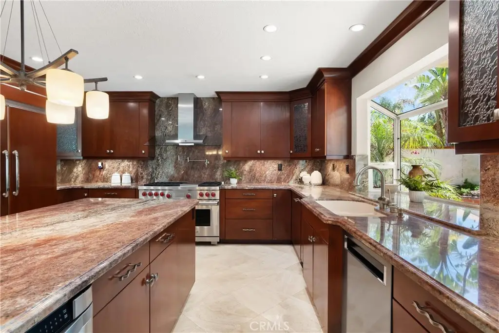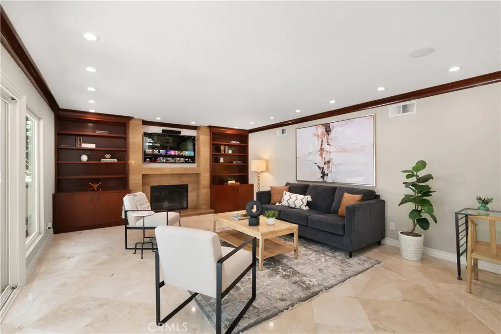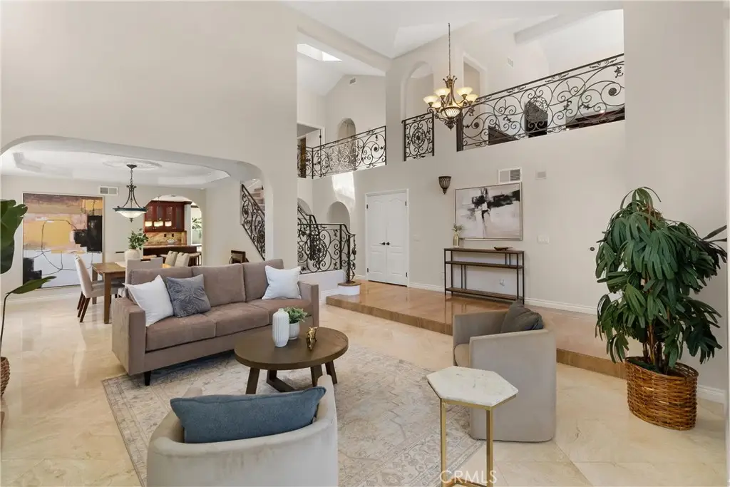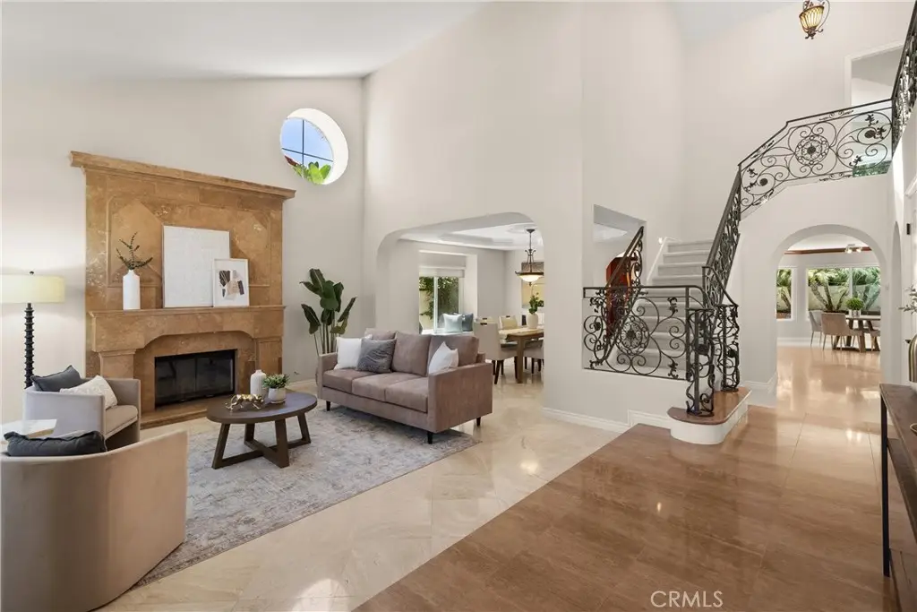 This beautifully upgraded Estate II District home, built by S&S Homes, is located in the sought-after East Lake Village community of Yorba Linda. With 4 bedrooms, 3 bathrooms, and a large bonus room (or optional 5th bedroom), this spacious home offers approximately 3,850 sq ft of thoughtfully designed living space that blends comfort, elegance, and functionality. Step inside to find soaring ceilings, travertine flooring, and a formal living room with fireplace and tall windows. The adjoining formal dining room features crown molding and a built-in wine fridge, creating the perfect space for entertaining. At the heart of the home is a chef's kitchen with granite counters, wood cabinetry, center island seating, and a WOLF 6-burner stove with pot filler. The kitchen opens to a welcoming family room with fireplace and oversized sliding glass door leading to the backyard. A downstairs bedroom with marble floors and direct backyard access is ideal for guests or a home office. A full bathroom and dedicated laundry room complete the main level. Upstairs, the primary suite is a true retreat--offering a fireplace, walk-in closet, newer windows, and a private balcony. The ensuite bath includes dual vanities, a walk-in shower, and ample storage. Two additional bedrooms upstairs (one with vaulted ceilings) share a full hall bath with granite counters and travertine flooring. A spacious bonus room with vaulted ceilings, the home's fourth fireplace, and a wet bar adds flexibility for a media room, lounge, or game room. Enjoy a private backyard oasis featuring an Alumawood patio cover with fan, sparkling pool and spa, lush landscaping, a lemon tree, and plenty of space for outdoor living. Additional upgrades include a newer roof and electrical panel. East Lake Village offers resort-style amenities including pools, clubhouse, tennis, gym, lake trails, and more--all within award-winning PYLUSD.