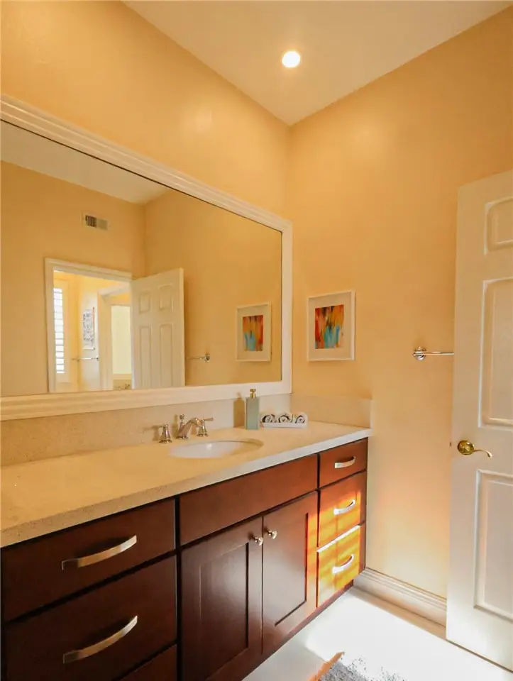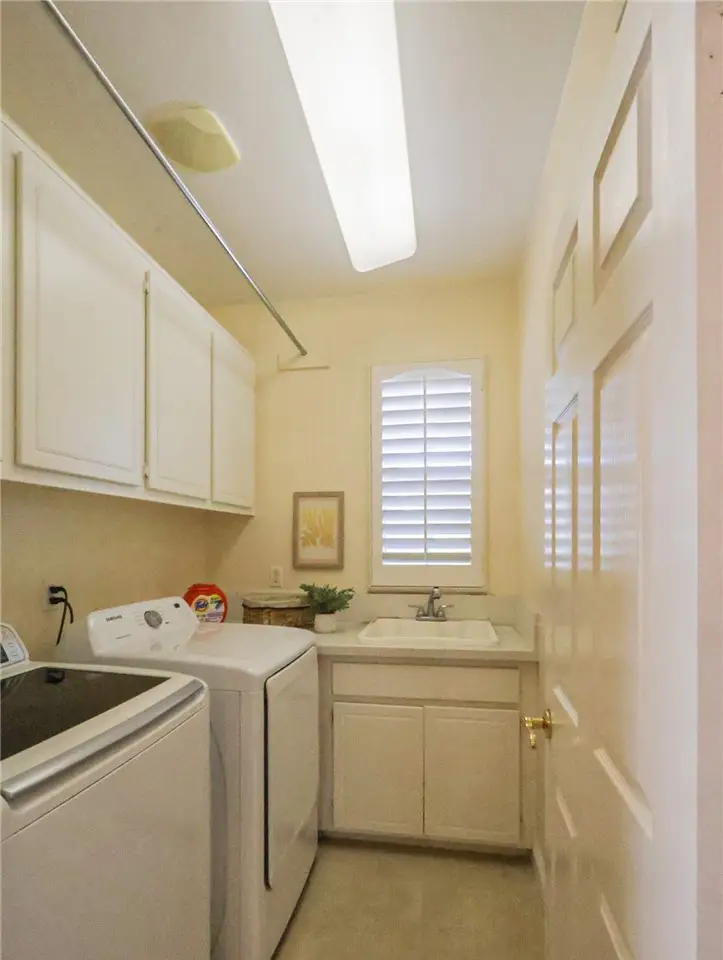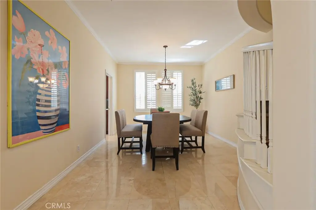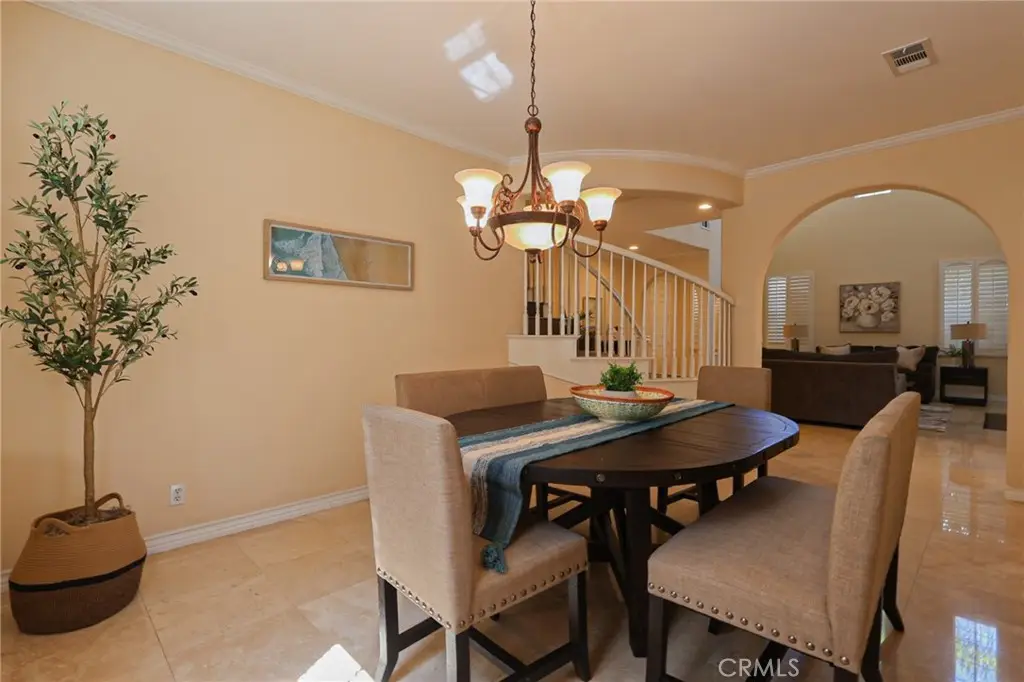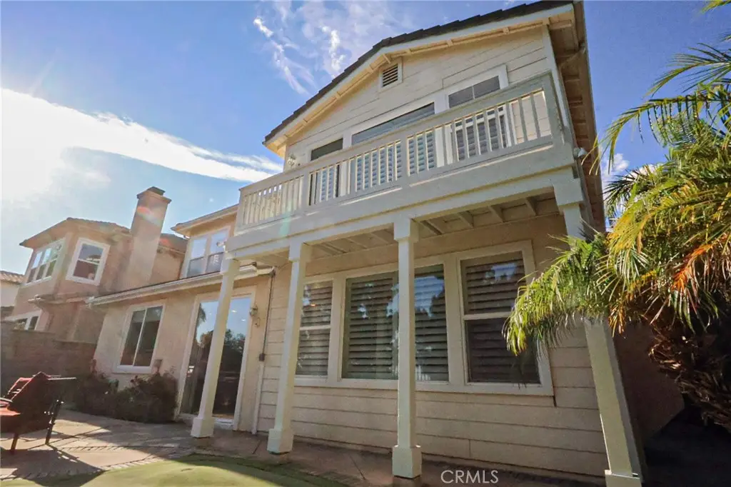 This meticulously designed five-bedroom, four-bathroom home offers an exceptional blend of luxury and function. Upon entry, you are greeted by 20-foot ceilings and polished travertine flooring that flows throughout the main level. The floor plan includes formal living and dining rooms, a dual-sided fireplace, and a desirable downstairs bedroom with a full bathroom. The gourmet kitchen is appointed with granite countertops, a massive center island, and a butler's pantry, opening to a spacious family room. A circular stairway leads to the second level, which hosts three full bathrooms and four additional bedrooms, including the expansive master suite. This private retreat features a large walk-in closet, a separate tub and shower with dual sinks, and a private balcony with a gorgeous view. The property is complete with a built-in backyard BBQ, a putting surface for recreation, and a three-car tandem garage for ample parking and storage.