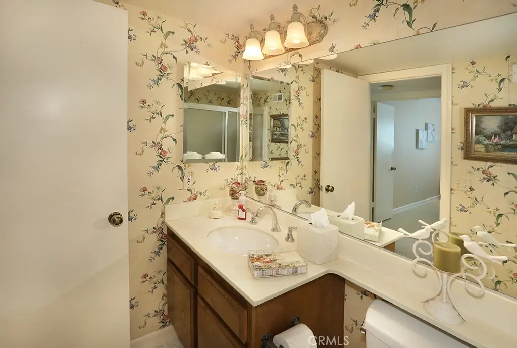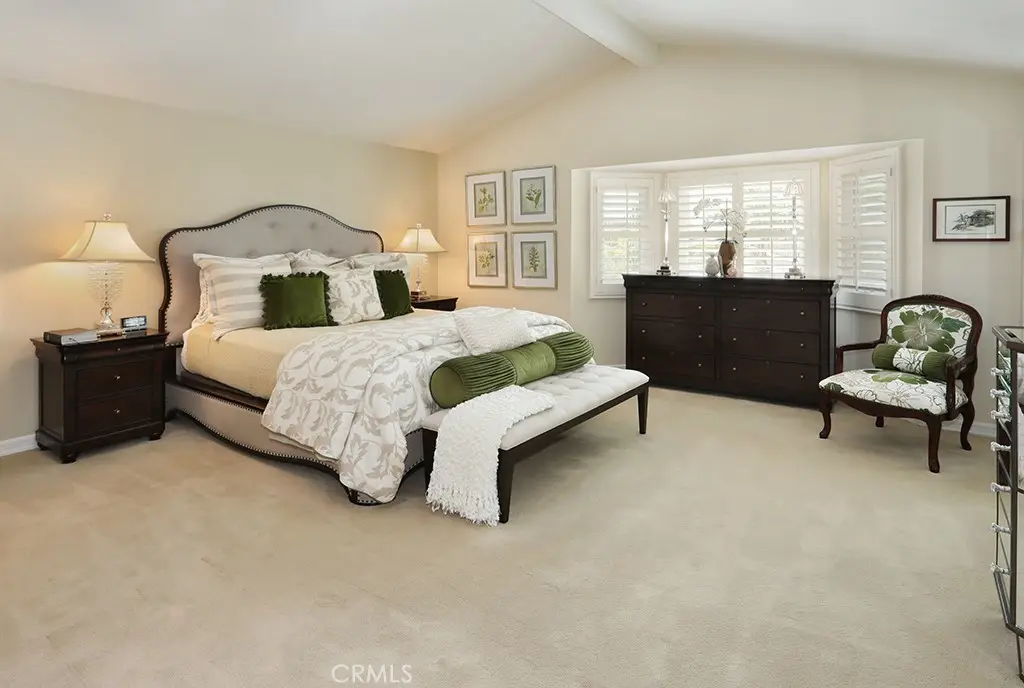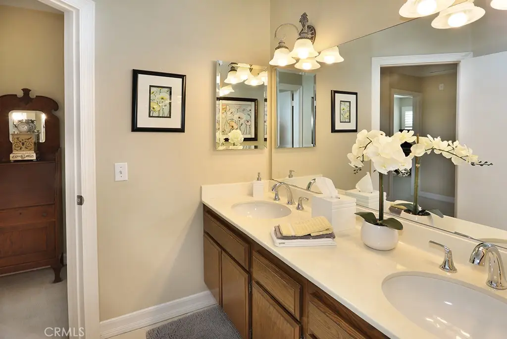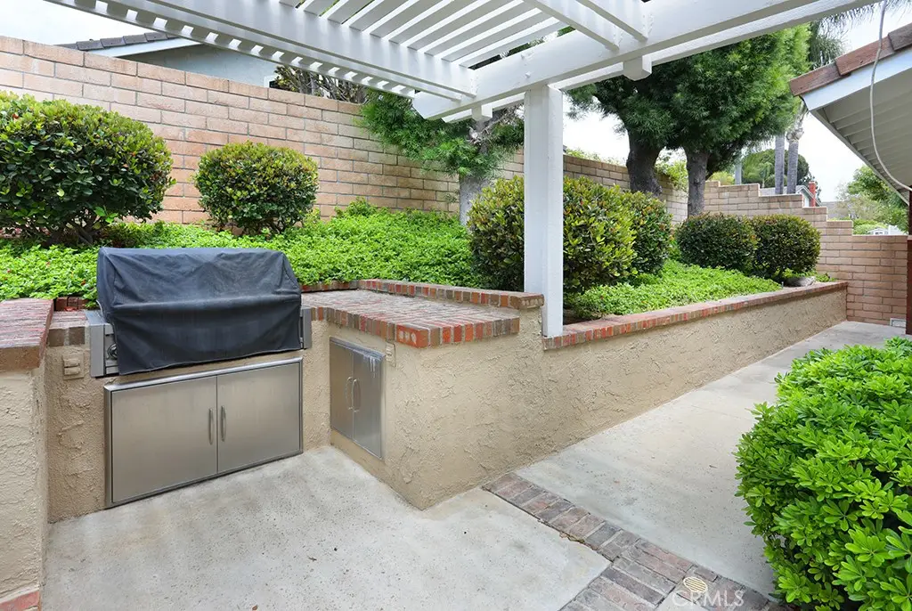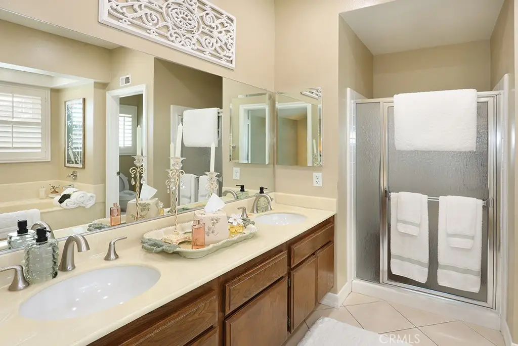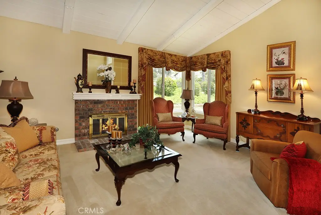 Welcome to this beautifully appointed 4 bedroom 3 bathroom home primely situated in the heart of Yorba Linda. Spanning 2,484 sq. ft. on a generous 8,100 sq. ft. lot, this property offers a perfect blend of comfort combined with traditional elegance. As you enter, you're greeted by a spacious formal living room featuring vaulted beamed ceilings, custom etched windows and a cozy fireplace with custom mantel which seamlessly flows into the formal dining room. The charming kitchen is pristinely maintained with rich wood cabinetry, sparkling white tile counters, stainless steel dishwasher and refrigerator, recessed lighting, a walk in pantry and a delightful eat in kitchen area which overlooks the private backyard. Down a few steps you'll find a separate family room with fire place, wet bar and patio slider with backyard access. There is also a spacious downstairs bedroom and a full bath, perfect for guests or multi-generational living as well as an interior laundry room with additional storage. Head upstairs and discover the enviable primary suite with vaulted ceilings, dual closets, and a bright and luxurious bathroom with an oversized soaking tub, walk-in shower, and dual vanities. Two additional bedrooms share a secondary bathroom equipped with dual sinks. Step outside to your private backyard with ample space for entertaining! There is a large grassy area, a built in BBQ, lush landscape and plenty of room to dine al fresco under the a new patio cover. Completing the exterior is a spacious side yard with RV potential. Additional improvements include newer exterior paint, upgraded windows throughout, plantation shutters, custom baseboards, newer air conditioning, heating, and water heater. This home is zoned for prestigious award winning schools, and is conveniently located near shops, entertainment, and easy access to the 91 and 241 freeways. Don't miss this incredible opportunity to own a remarkable home in the land of gracious living!