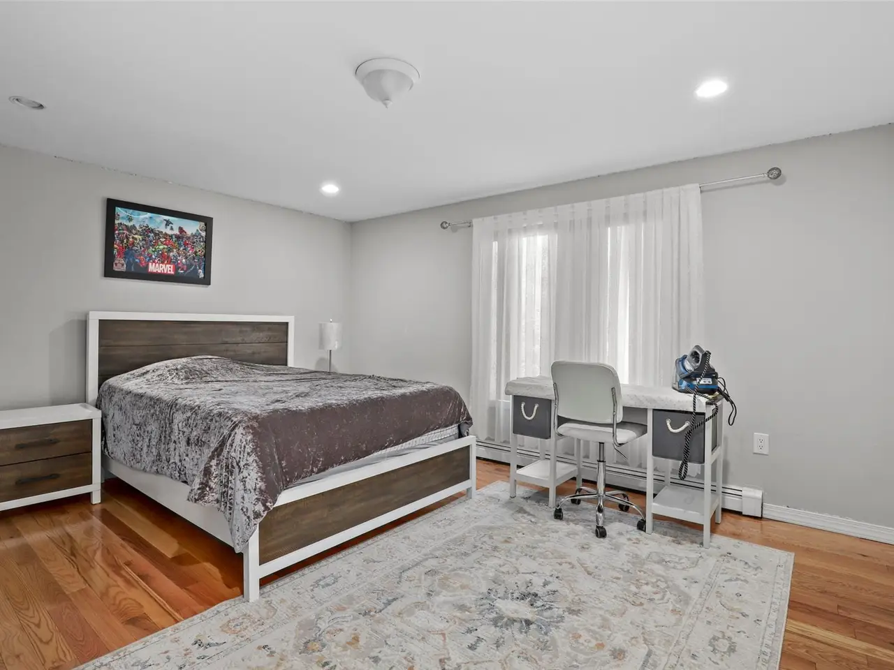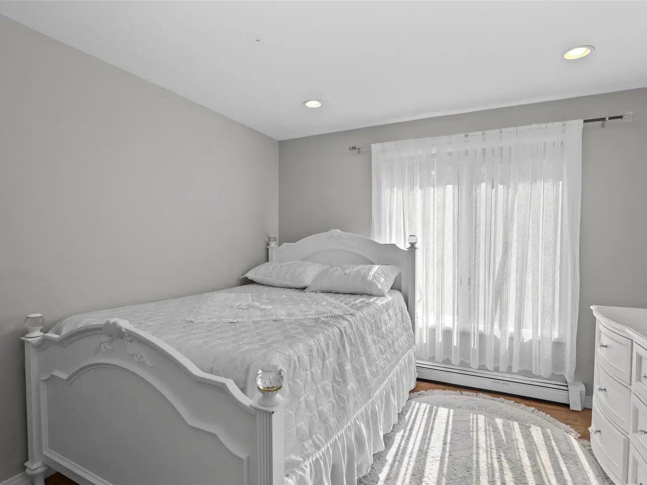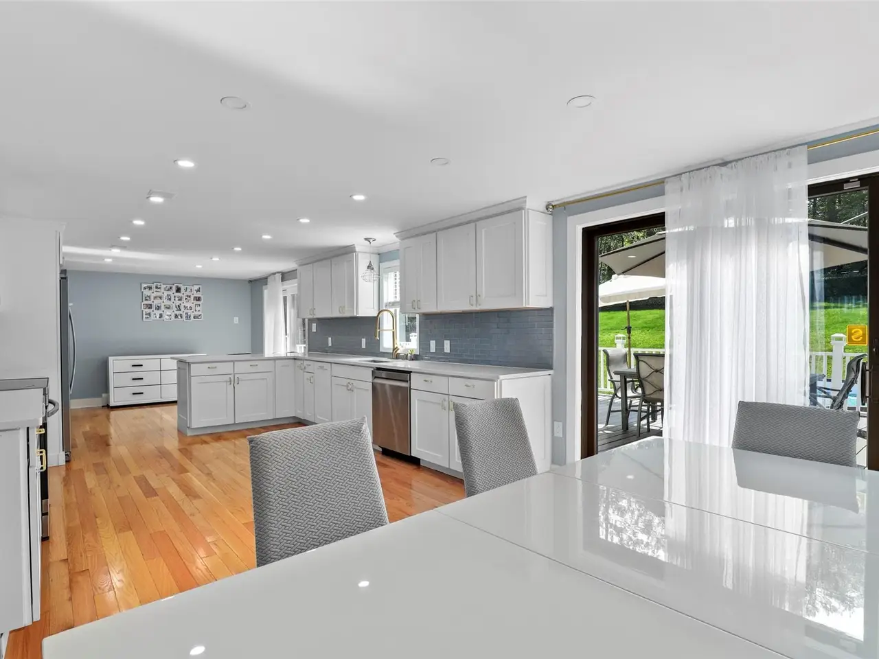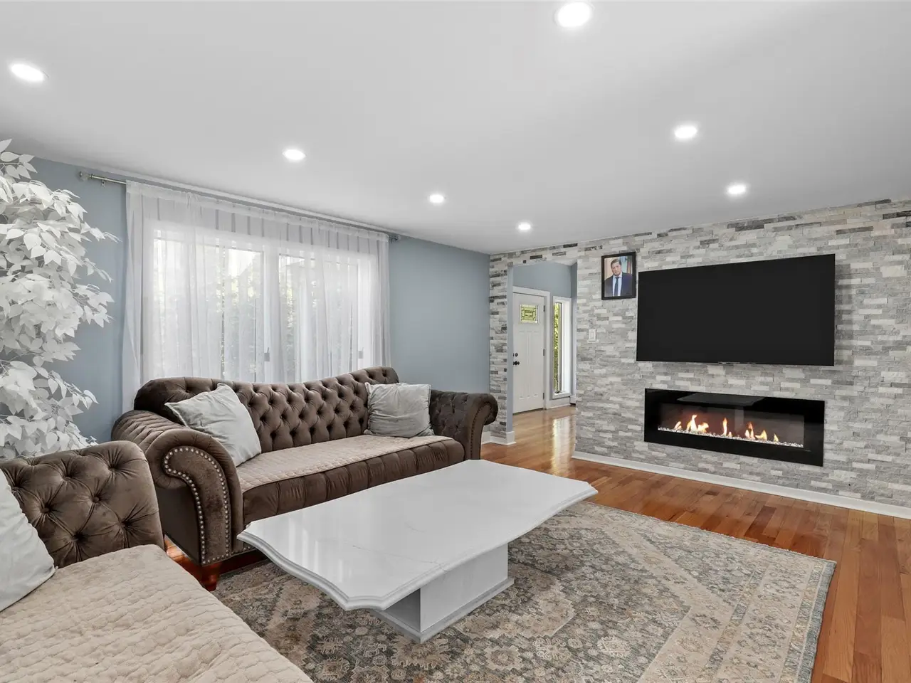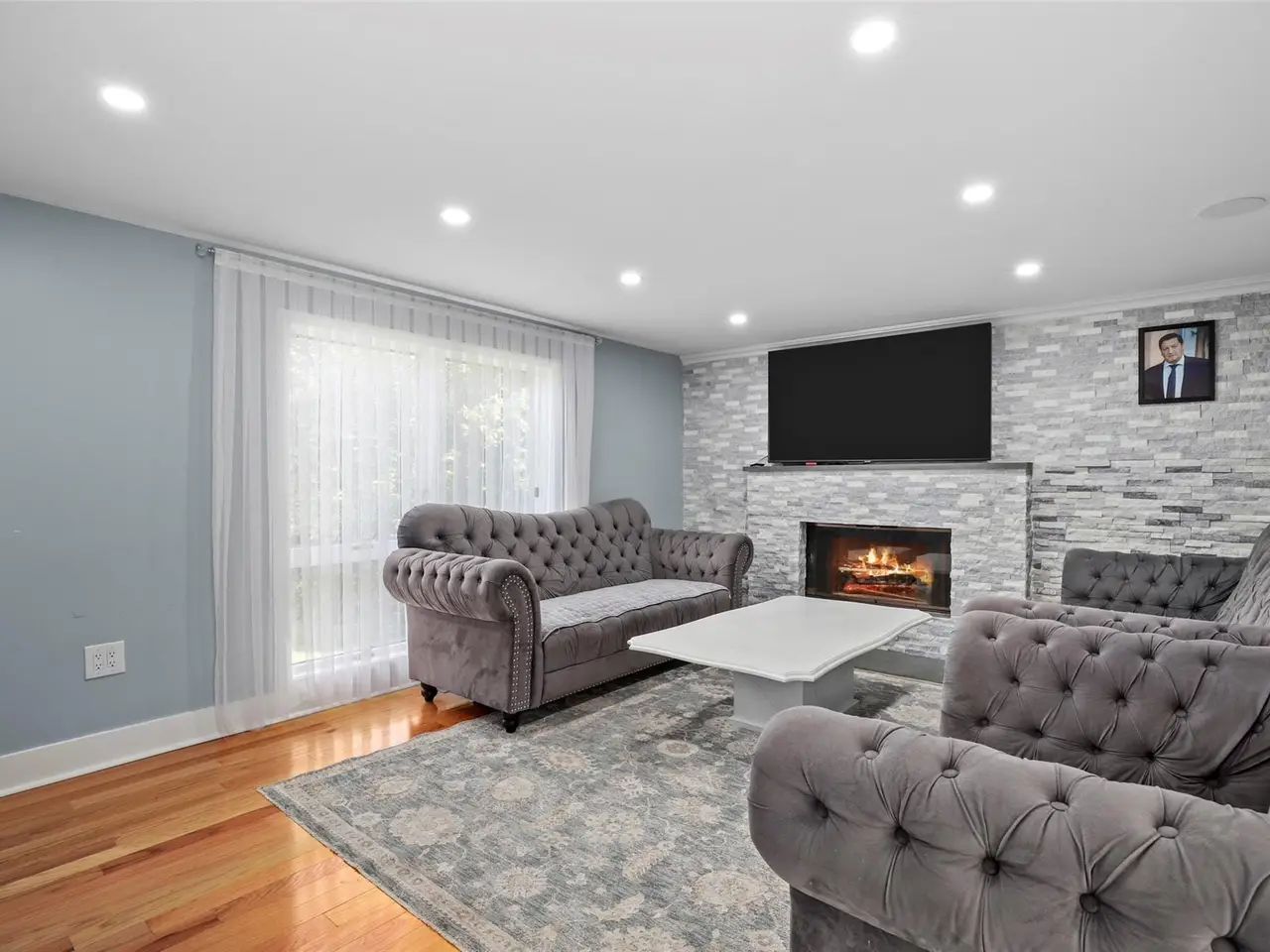 GLEAMING WITH PRIDE! Naturally light-filled Yorktown home with a range of custom, high quality updates by current owner. Your move into this gem comes with peace-of-mind and nothing to do! Newness surrounds this expansive 3 bedroom Contemporary (that lives like a 4). Bursting with charm and slick custom upgrades like TWO beautiful fireplaces, a huge eat-in-kitchen accented by stunning white granite counter tops and a sink window overlooking the expansive private backyard. The floor plan offers a large dining area, living room and a family room all on one floor. Gleaming hardwood flooring throughout. Skylights brighten up the cathedral entry hall area. The multiple-speaker system on the main floor is a nice touch as is the rows of recessed lighting. The primary bedroom is huge, accompanied by a marble laced shower bath. Let's keep going...there's a generator hookup in the two-car garage. You won't believe the custom stone work surrounding the long, expansive driveway (recently re-sealed)! Want more? The house is waterproofed and comes equipped with an enhanced drainage system directing water away from the house. The owner recently installed high end fencing with green camouflage that perfectly blends in with the lush nature surrounding the property. Two SGD's off the kitchen lead to a nice deck overlooking the pool and fire pit with plenty of privacy. Lots of exterior custom lighting, too. Escape & enjoy peace-and-quiet after a long day at this one-of-a-kind retreat that is enhanced by being situated on a quiet cul-de-sac.