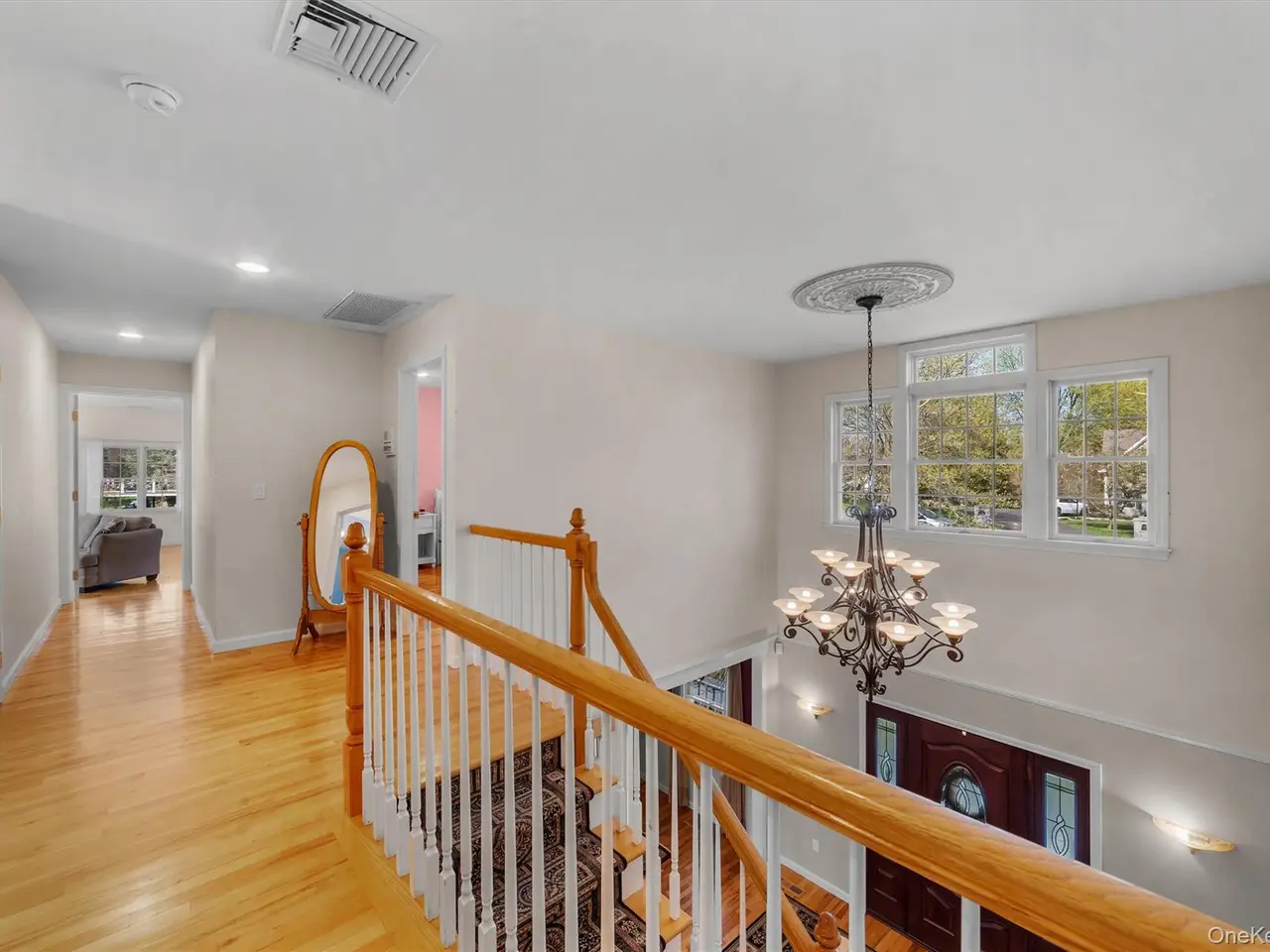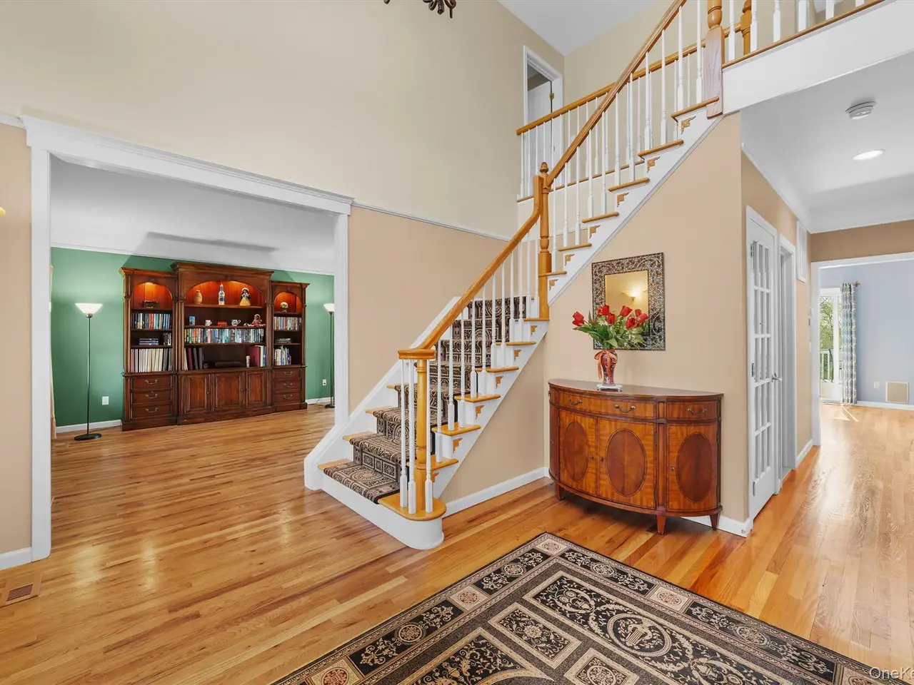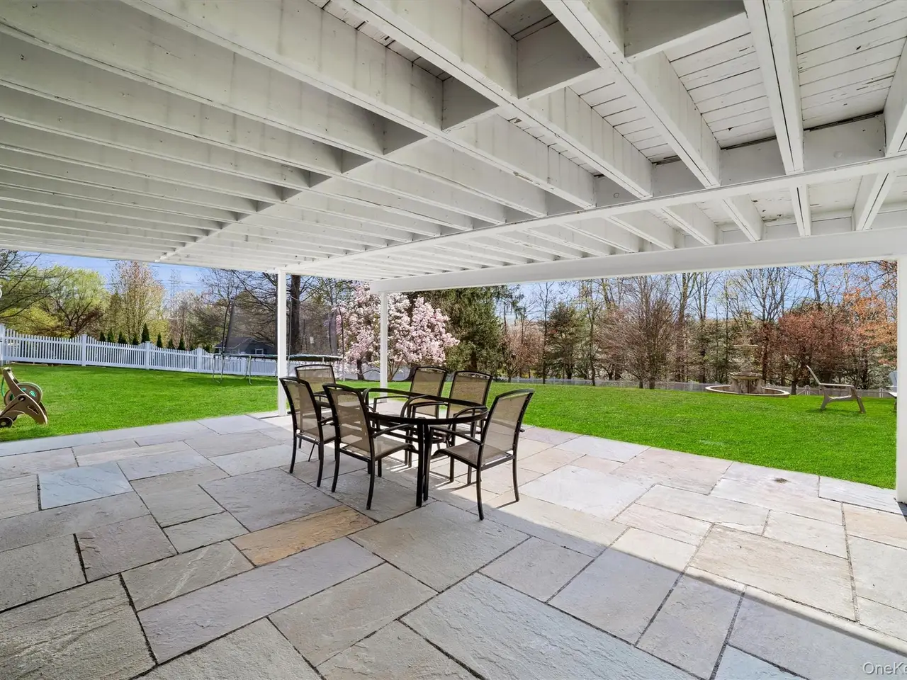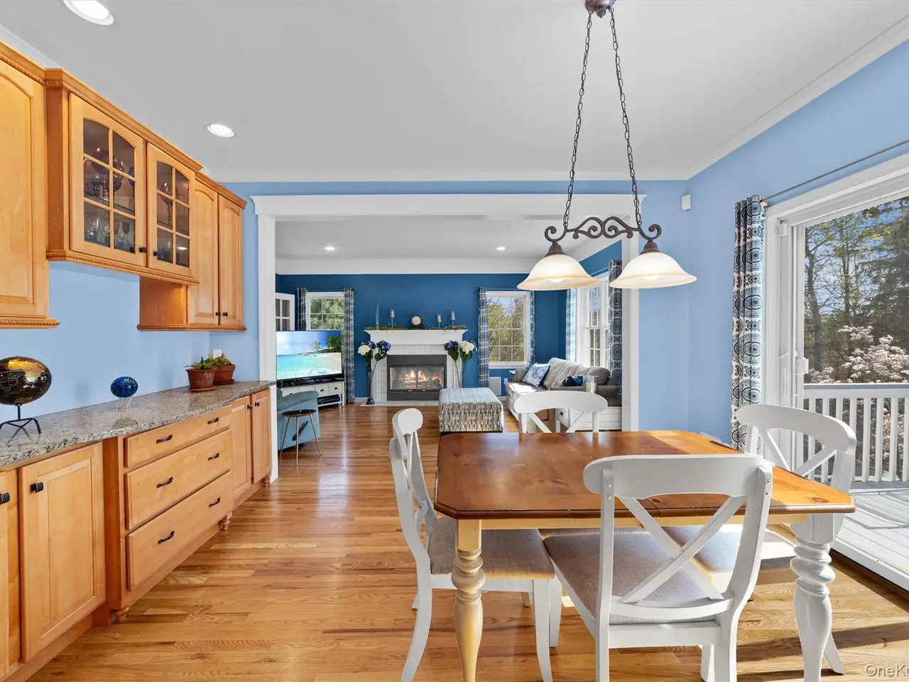 Welcome to Bari Estates. This beautifully maintained home shows pride of ownership in this impressive front porch colonial style. This home shows like a five bedroom and features a light and airy open two story entry, oversized dining room flows to a sundrenched eat in kitchen with butlers' server which opens to the family room with fireplace and sliding glass doors out to an oversized 25' x 20' deck overlooking a private and fenced yard with an imported water fountain from Europe. Enjoy and relax on your oversized deck or your covered blue stone patio and watch the most amazing and breathtaking sunsets as you finish the day. The primary bedroom offers tray ceilings, a walk-in closet and on-suite bathroom with a deep soaking tub and separate glass surround shower, three generous sized bedrooms and a light and airy bonus room at the end of the hall, perfect for a media room, game room, home office or for the extended family. The finished lower level offers more room to enjoy as a rec room, game/media room or guest room with sliders out to an oversized blue stone patio, plenty of storage in the lower level too and enjoy your own wine cellar. All of this and conveniently set and close to town shopping, bike trail, walking trails, major shopping, restaurants, Yorktown schools, parks, parkway and minutes to the metro north train station.