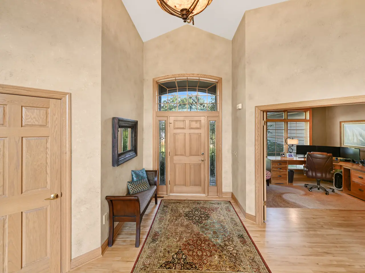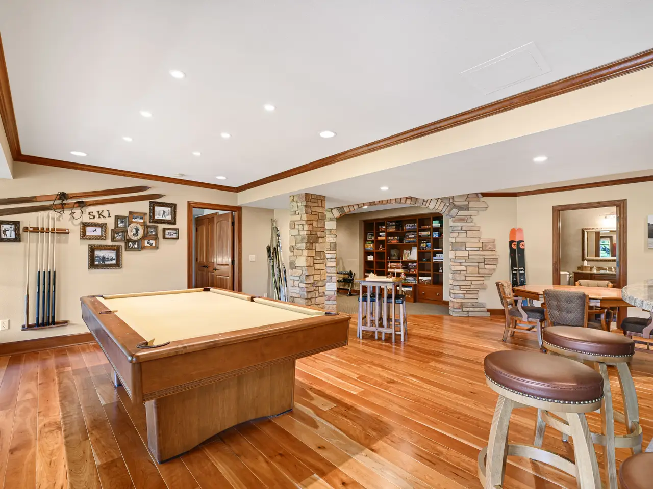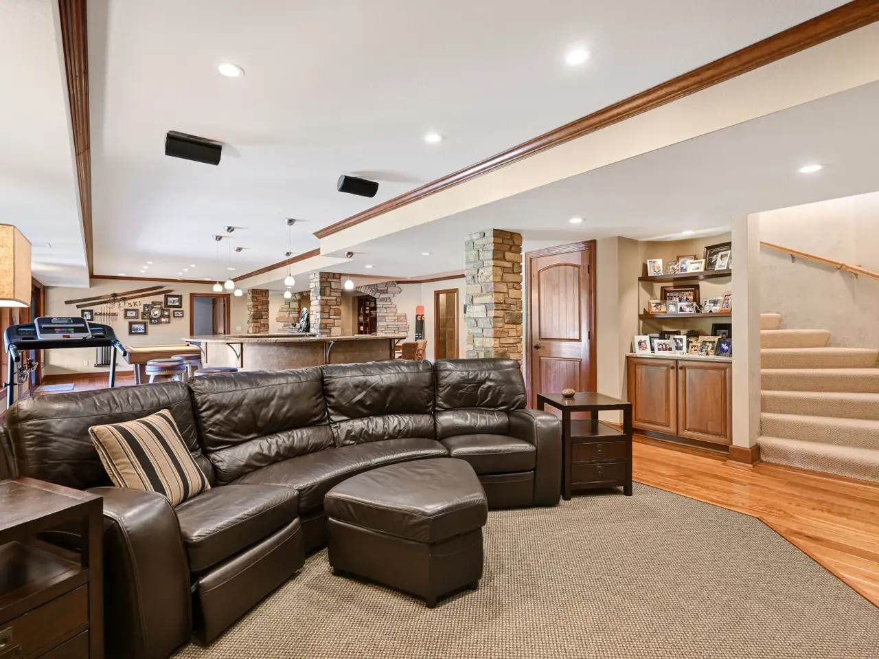 Secluded Executive Walk-Out Ranch. Tucked away on a quiet cul-de-sac, this stunning 3-bedroom, 3.5-bath executive walk-out ranch offers luxurious living space on a serene, park-like 1.9-acre wooded and fenced lot. Designed with quality in mind, this home combines privacy, elegance, and functionality. The open-concept great room features a wall of windows that flood the space with natural light and seamlessly connects to the formal dining area, sunroom, and chef's kitchen. The gourmet kitchen is a dream, complete with a large breakfast bar, cherry wood cabinetry, granite countertops, a professional-grade Viking stove, and a Sub-Zero refrigerator - perfect for entertaining or everyday living. 3.5-car heated garage includes a built-in dog wash and direct stair access to the lower level. The fully finished walk-out lower level is ideal for multigenerational living or in-law accommodations, featuring a bedroom, full tiled bath, large family room, and rec room - all finished with the same high-quality craftsmanship as the main level.