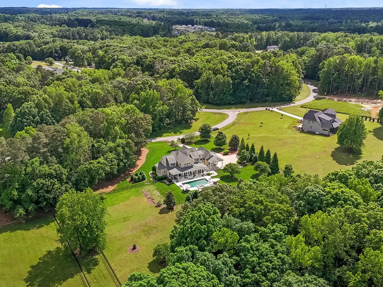 Better Than New Luxury Estate Home on 3.5 Acres with Resort-Style Pool, Spa & Gated Community Amenities. Welcome to this exceptional 4,913 sq. ft. estate residence, perfectly situated on 3.5 pristine acres in one of the area's most prestigious gated communities. Better than new, this 4-bedroom, 4.5-bathroom home boasts countless upgrades and thoughtful details you simply won't find in new construction. Step inside to discover rich hardwood floors throughout (no carpet), soaring ceilings, and an elegant open floor plan designed for both everyday living and grand entertaining. The true gourmet kitchen is equipped with top-of-the-line appliances, custom cabinetry, and designer finishes?crafted for style and function well beyond builder standards.The main-level primary suite is a luxurious retreat, offering spa-like amenities and superior comfort. Every room reflects meticulous craftsmanship, with custom features and upgrades at every turn - too many to list. Outside, your private backyard oasis awaits. A resort-style pool and spa anchor the expansive outdoor living space, complete with a covered veranda and welcoming front porch. Perfect for gatherings or quiet relaxation, this home is designed to embrace both elegance and comfort. Additional highlights include a whole-house generator, oversized living areas, and luxury details throughout that elevate this home above anything new construction can offer. Set within a premier gated community, residents enjoy unmatched amenities: a 75-acre lake, clubhouse, boathouse, and dock with kayaks - blending luxury, recreation, and nature in one perfect setting.This is more than a home; it's a lifestyle. Don't miss this rare opportunity to own a true estate property that is better than new in every way.