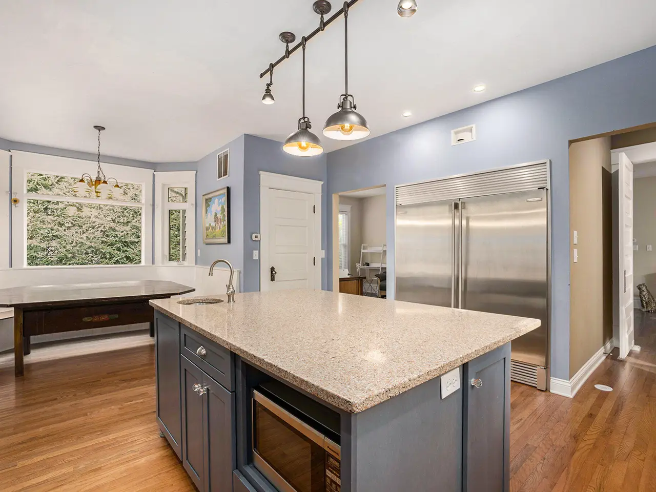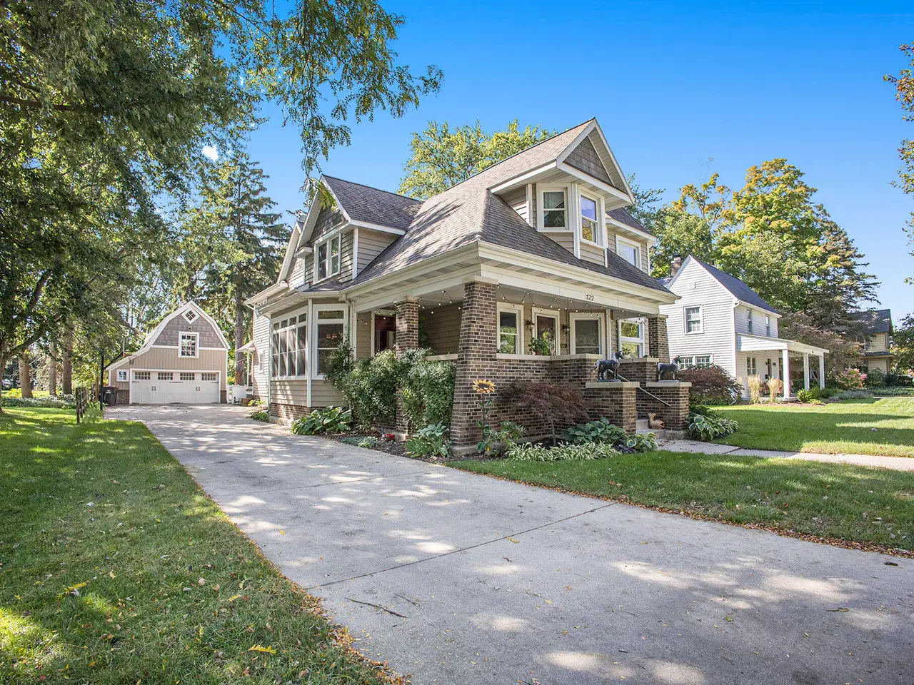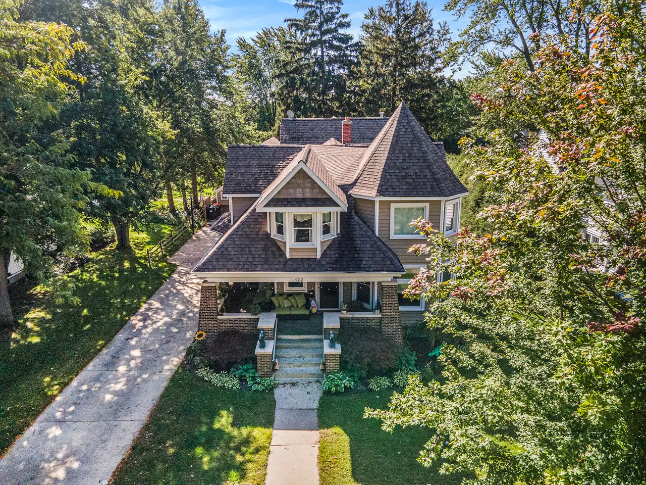 Rare opportunity to own a stately historic home in the heart of downtown Zeeland. This beautifully preserved residence has been thoughtfully expanded and updated, blending timeless character with modern comfort. Inside, you'll find soaring 9-foot ceilings and beautiful wood details throughout. Enjoy a gourmet kitchen with a spacious center island, dining nook and prep kitchen. The formal dining room perfect for entertaining. The luxurious primary suite is designed to impress. Additional highlights include hardwood and ceramic tile flooring, all bedrooms conveniently located upstairs, a partially finished basement with egress windows, dual water heaters, wide staircases, radiant heat, new dual A/C, and custom built-ins throughout. Step outside to enjoy a welcoming front porch, expansive back deck with BBQ and play area, an extra-deep yard, and a two-story barn-style garage offering ample storage and versatility.