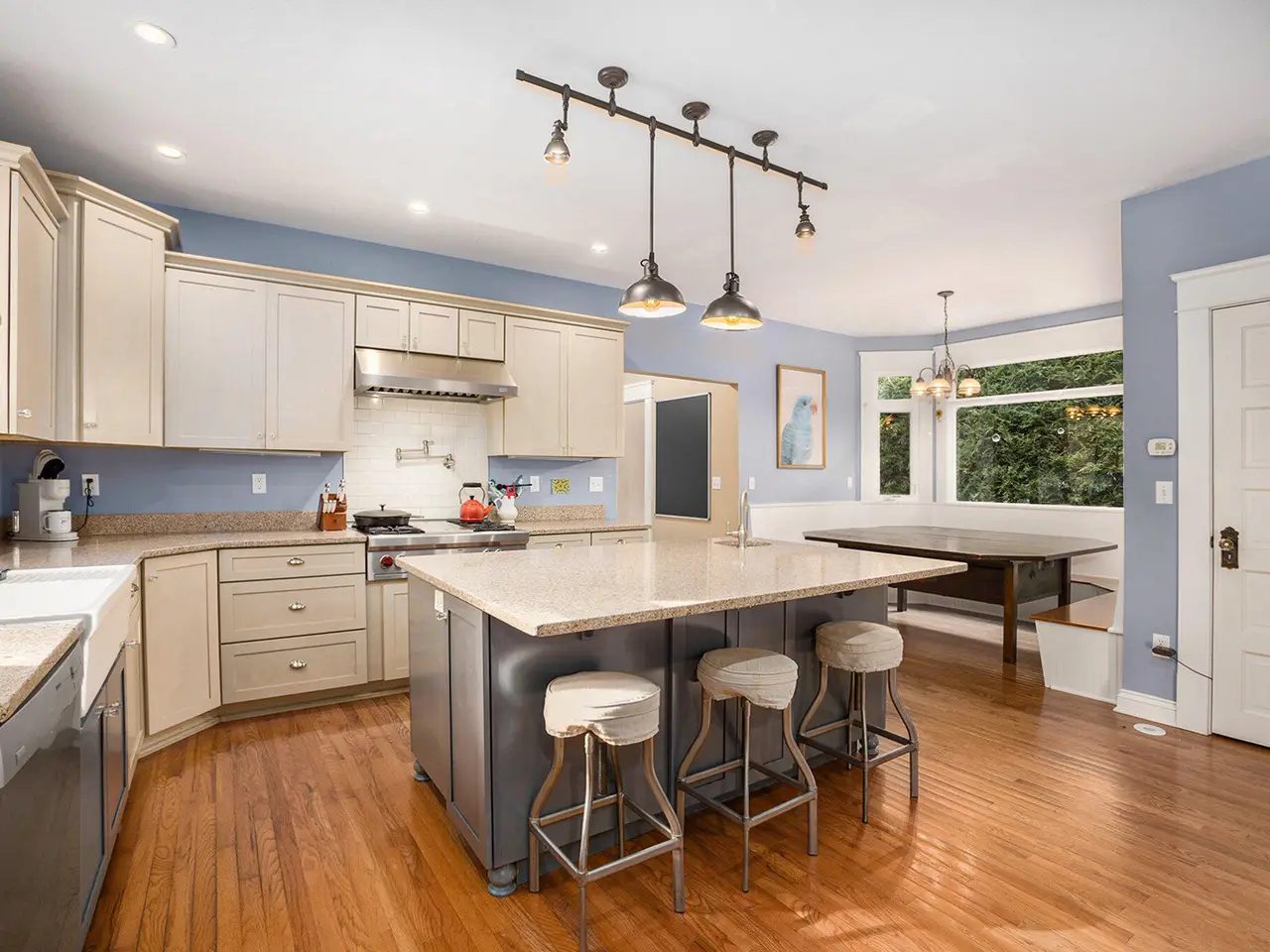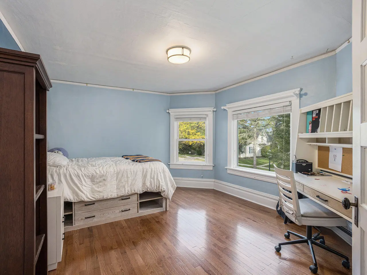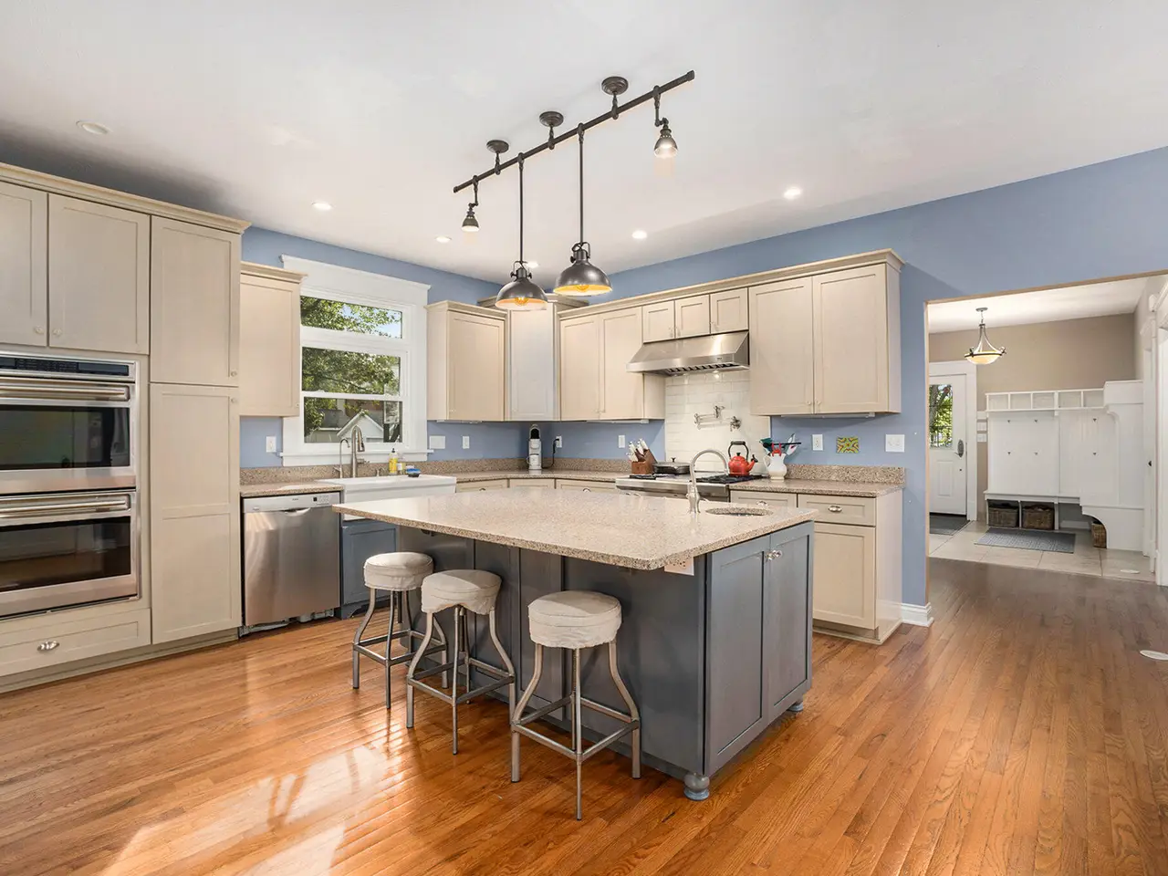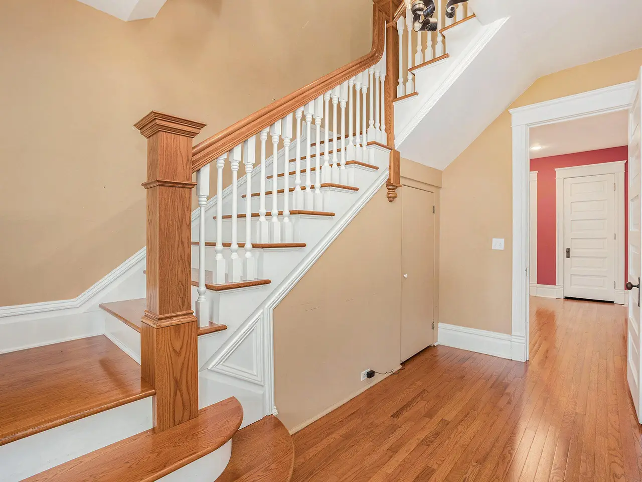 Rare opportunity to own a stately historic home in the heart of downtown Zeeland. This beautifully preserved residence has been thoughtfully expanded and updated, blending timeless character with modern comfort. Inside, you'll find soaring 9-foot ceilings and beautiful wood details throughout. Enjoy a gourmet kitchen with a spacious center island, dining nook and prep kitchen. The formal dining room perfect for entertaining. The luxurious primary suite is designed to impress. Additional highlights include hardwood and ceramic tile flooring, all bedrooms conveniently located upstairs, a partially finished basement with egress windows, dual water heaters, wide staircases, radiant heat, new dual A/C, and custom built-ins throughout. Step outside to enjoy a welcoming front porch, expansive back deck with BBQ and play area, an extra-deep yard, and a two-story barn-style garage offering ample storage and versatility.