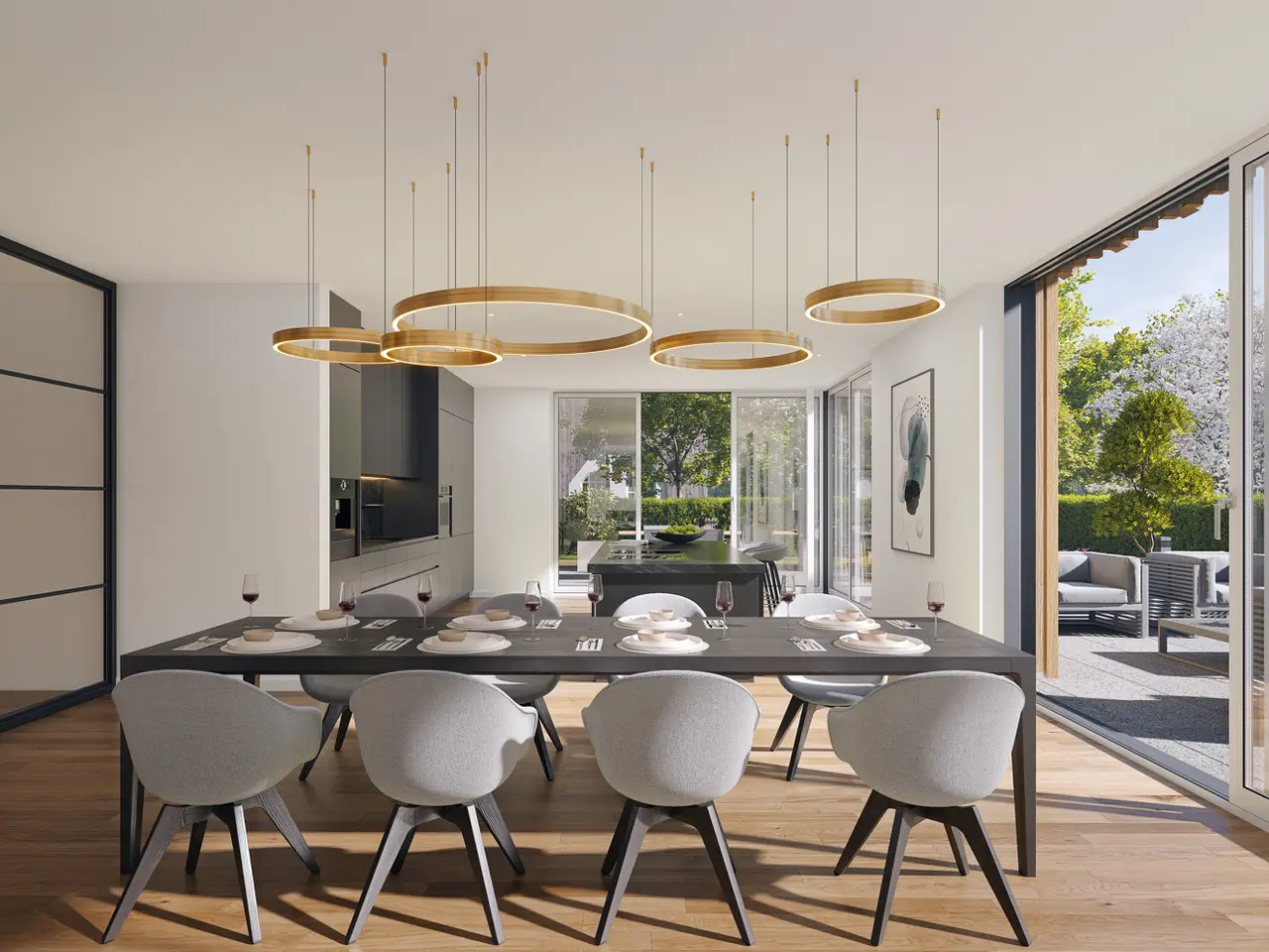 "Isarflimmern", a building project by Tschunke Houdek Immobilien GmbH, combines state-of-the-art living with well thought-out architecture, great attention to detail and a clear focus on quality in a perfect location. Isarflimmern is the name given to the area from Munich to the source of the Isar (called the "raging" by the Celts and still the raging one today), a unique paradox between the sophisticated cosmopolitan city of Munich, the headquarters of 7 DAX-listed global corporations and centuries of tradition in the most beautiful natural landscape. Isarflimmern is a Bavarian attitude to life or, to give it its full name, the former Bavarian Prime Minister Edmund Stoiber, who lived in the region. Edmund Stoiber "Laptop and Lederhos`n". Villas and modern detached and semi-detached houses characterize the architectural face of the community. On the high banks of the Isar, in the Zell district, a multi-party house with only three residential units and a top-class detached house are being built - pure Isar flicker!