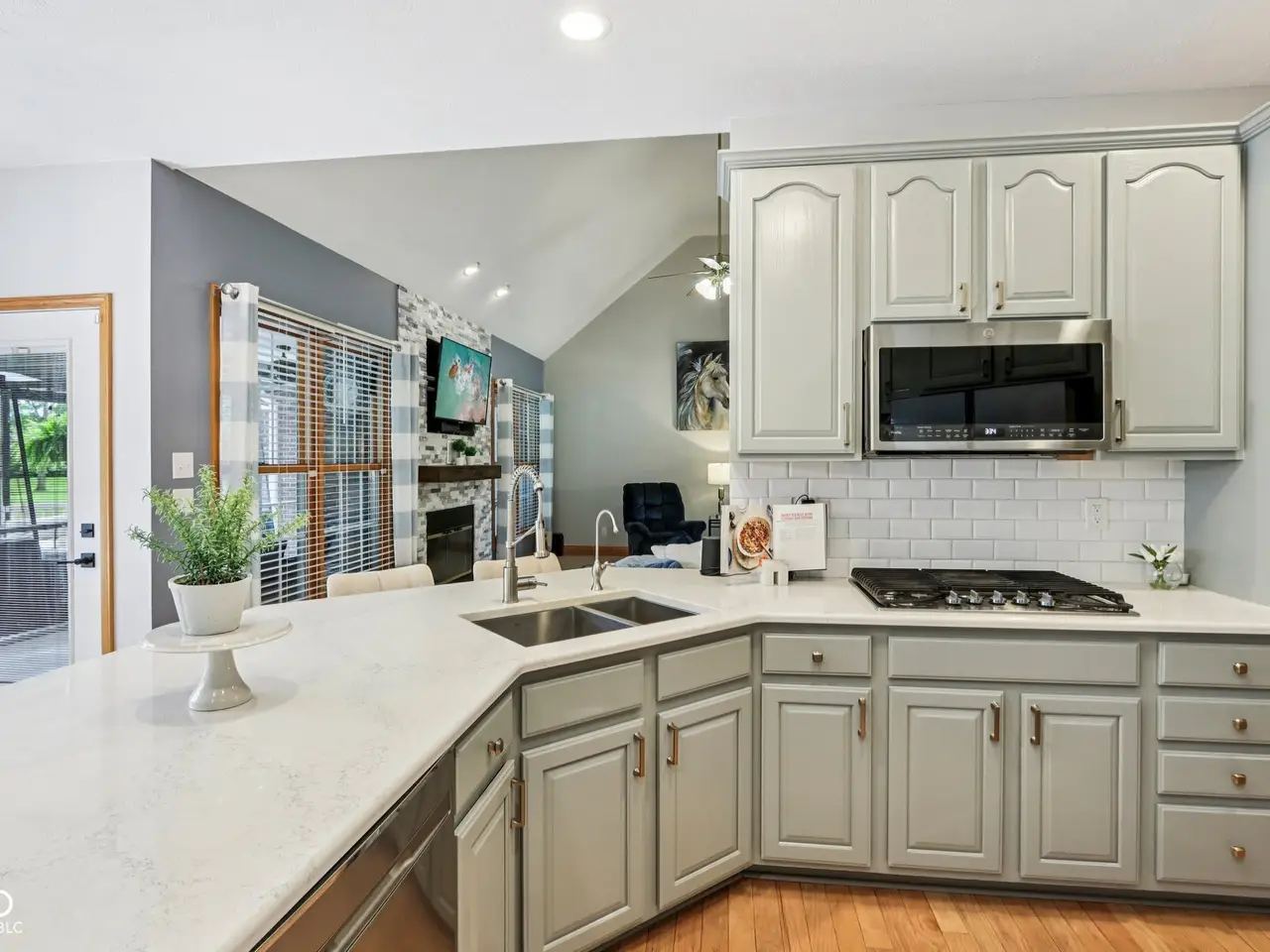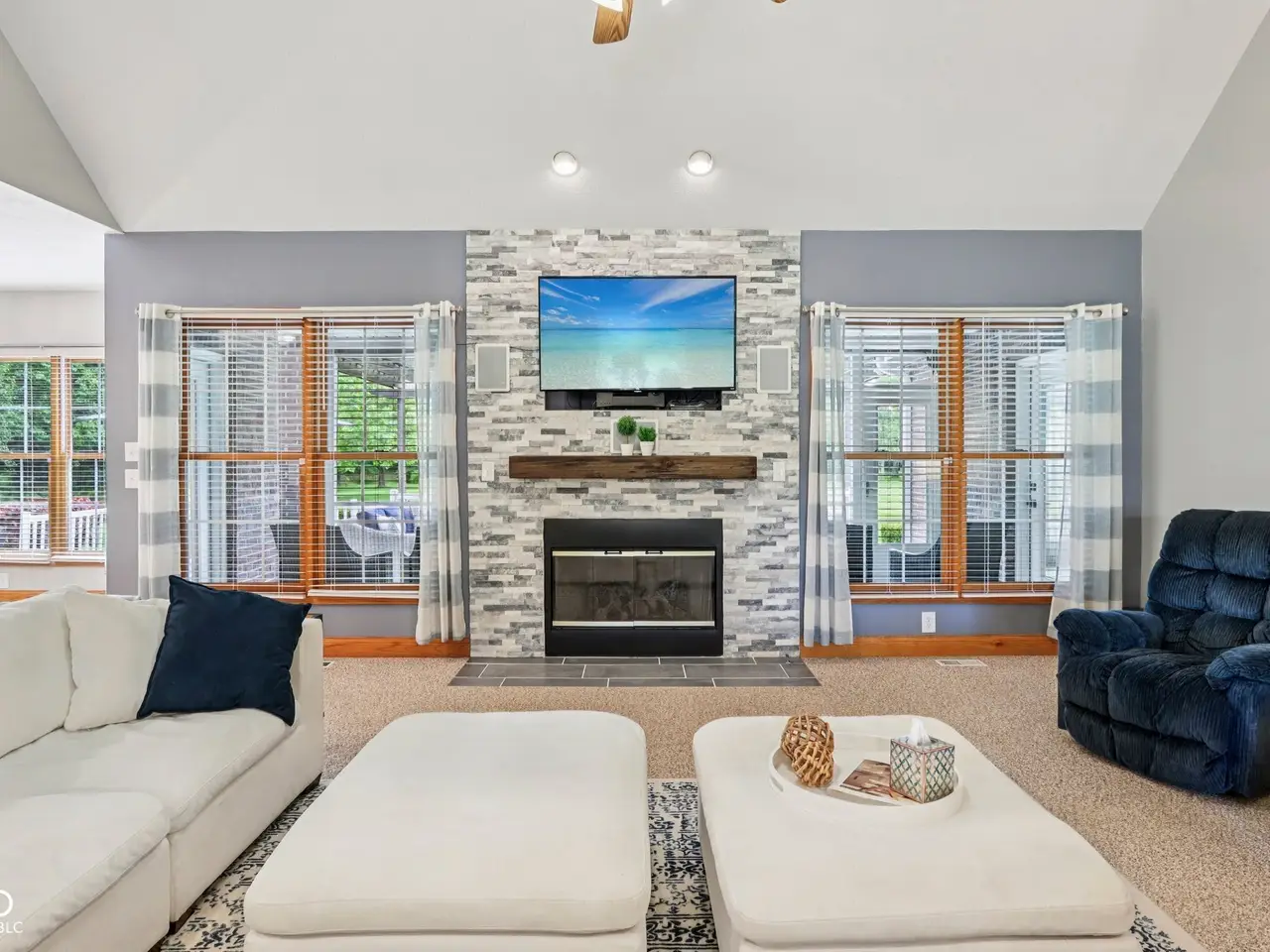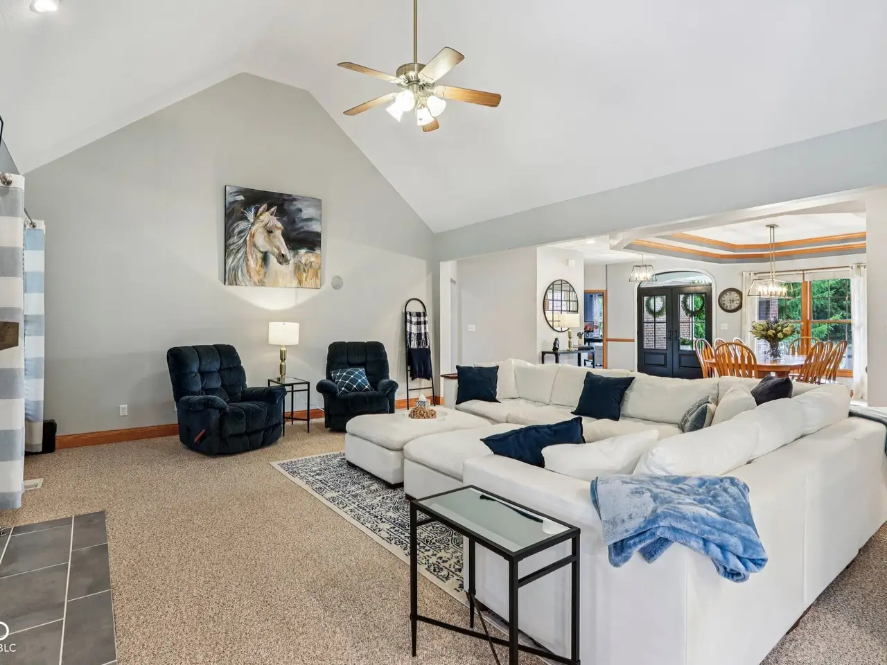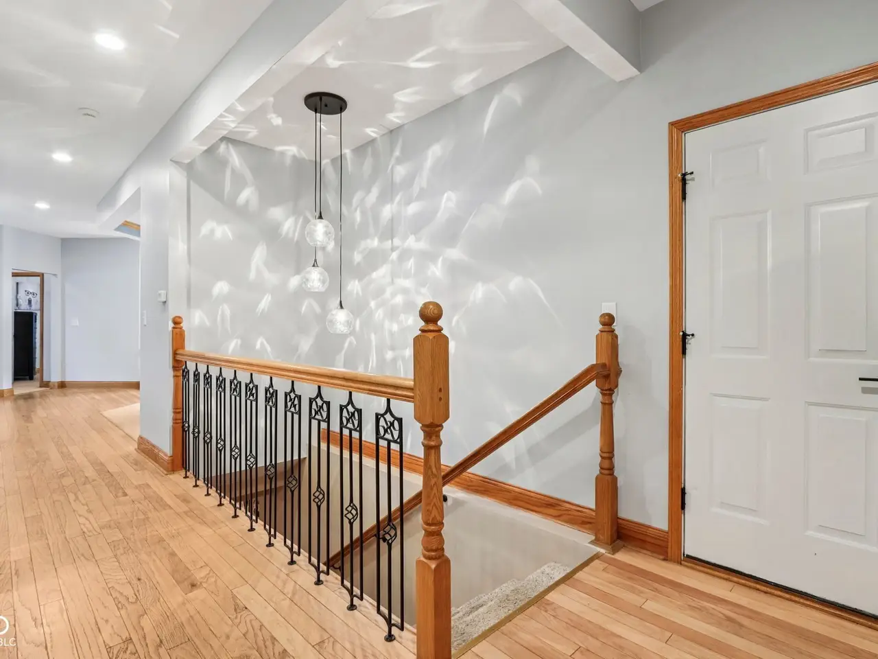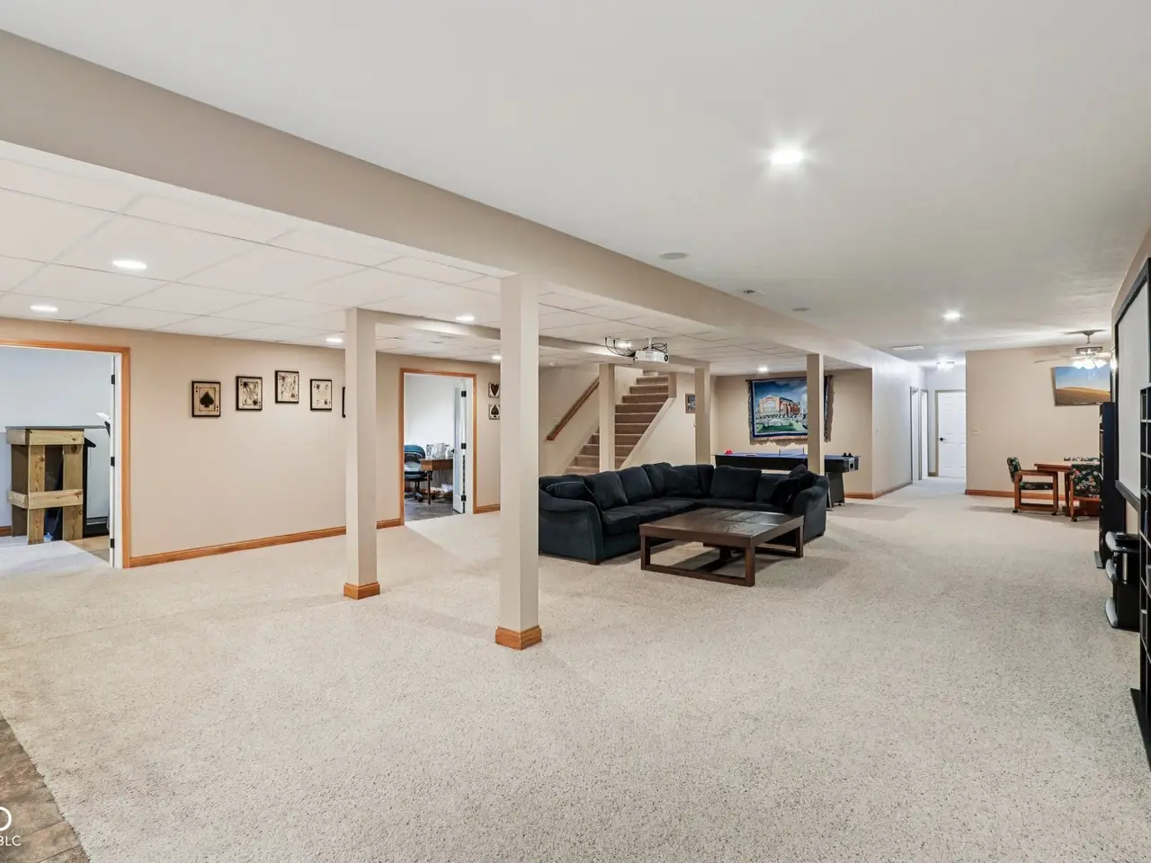 Private sanctuary on 3 beautifully landscaped, tree-lined acres - a true retreat offers space & countless possibilities. Greet your guests through double front doors. The great room impresses w/ its vaulted ceilings, updated stack-stone fireplace, rich wood mantel, & built-in speakers - perfect for both relaxation & entertaining. A dedicated office features a large window allowing you work from home while still feeling connected to nature. The primary suite is a restful escape w/ tall ceilings, large windows, & a remarkable, remodeled bath: custom tile, freestanding soaking tub, & walk-in shower. The repeated tile ties the space together w/ stylish, purposeful design - plus you'll enjoy your own private exit to the screened-in porch & hot tub for unwinding after a long day. The second bedroom offers a remodeled ensuite bath -- space is perfect for guests or multigenerational living. The third & fourth bedrooms share a beautifully updated Jack-and-Jill bath. The heart of the home-the kitchen-has been beautifully refreshed w/ painted cabinetry, quartz countertops, a large peninsula w/ additional seating, & new appliances (2022 or newer). Even the laundry room and 1/2 bath are redone! Hardwood floors, newly refinished in a modern, light matte finish, flow gracefully through much of the main level. Downstairs, the finished basement offers a true entertainer's dream - a huge gathering room with space for a pool table, poker table, air hockey, or whatever games bring you together. A large bar area stands ready for adult beverages or a kid-friendly hangout. The basement also includes a workout room, a craft room, a 5th bedroom, a remodeled full bath, and plenty of storage space - delivering something for everyone in the family.