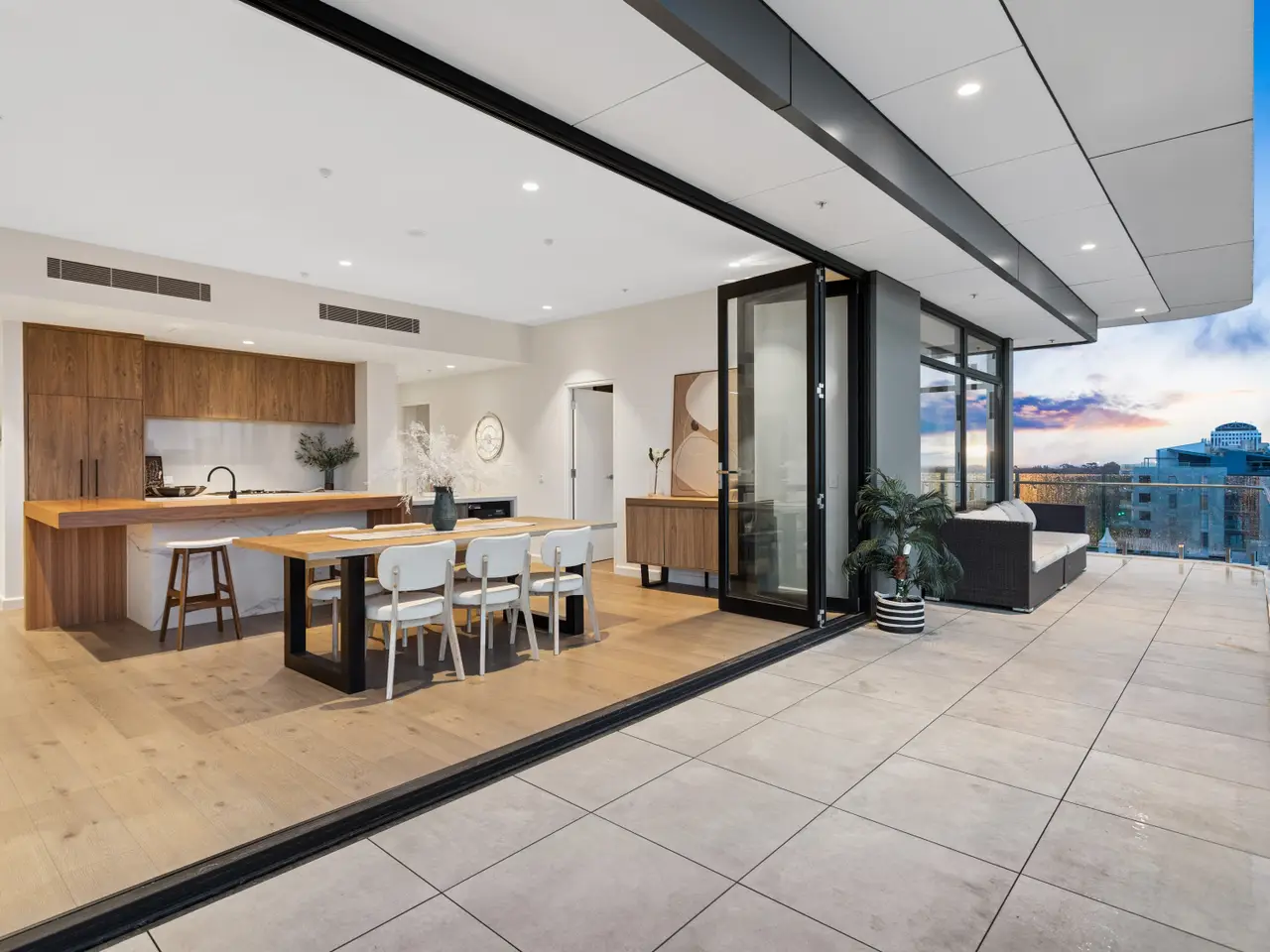 South Terrace's 'Paragon on the Park' captivates buyers with sumptuous style and next-level luxury rarely experienced within the Adelaide CBD. Elevate that to penthouse level, and you have the epitome of city living perfectly positioned to showcase an unparalleled city-to-parklands panorama. This majestic penthouse presents discerning downsizers, jet-setting executives and luxury buyers with spellbinding views across the city's north-west aspect, while steps from the entrance is nature's glorious greenery spanning the parklands and the picturesque Himeji Gardens. This bespoke top-tier apartment is architecturally designed to deliver exclusive privacy, exquisite interior style and top-of-the-world serenity - an exceptional abode for entertaining while cleverly crafted for uncompromised daily living. The three-bedroom layout spans 238sqm of light-infused space showcasing high calibre finishes and optimum functionality. Within open plan living, wall-to-wall glass reveals the entertainment terrace with bifold stacking doors providing an effortless transition to glorious outdoor dining. An exceptional kitchen showcases a timber and marble island bench, wine fridge, F&P Integrated fridge, Miele appliances and a butler's pantry, while every meal is served with a delicious side of mesmerising views. The bedrooms are plush sanctuaries of sleep and the bathrooms are cleverly designed to present a sophisticated aesthetic with storage discreetly incorporated. Completed in mid-2024, this exclusive residence also provides three-car accommodation and storage along with keyless entry and a guest intercom system. - Penthouse accommodation on the fringe of the south parklands - Entertainment terrace capturing uninterrupted views and golden sunsets - Open plan living: timber floorboards and stacking bifolds accessing the balcony - Top-shelf kitchen with a timber counter and stonetop island bench - Miele appliances, gas cooktop, dishwasher, 900mm oven - Wine fridge, F&P integrated fridge and butler's pantry - Three carpeted bedrooms with wardrobes - Master bedroom: beautiful north and west views, fully tiled ensuite, walk-in robe - Balcony access from the master and third bedroom - Stone-top double bathroom vanities, bathtub and showers - Full size laundry facilities with storage - Ducted reverse cycle air conditioning - Keyless entry and intercom system - Secure garaging for three cars plus separate storage facility RLA 285309