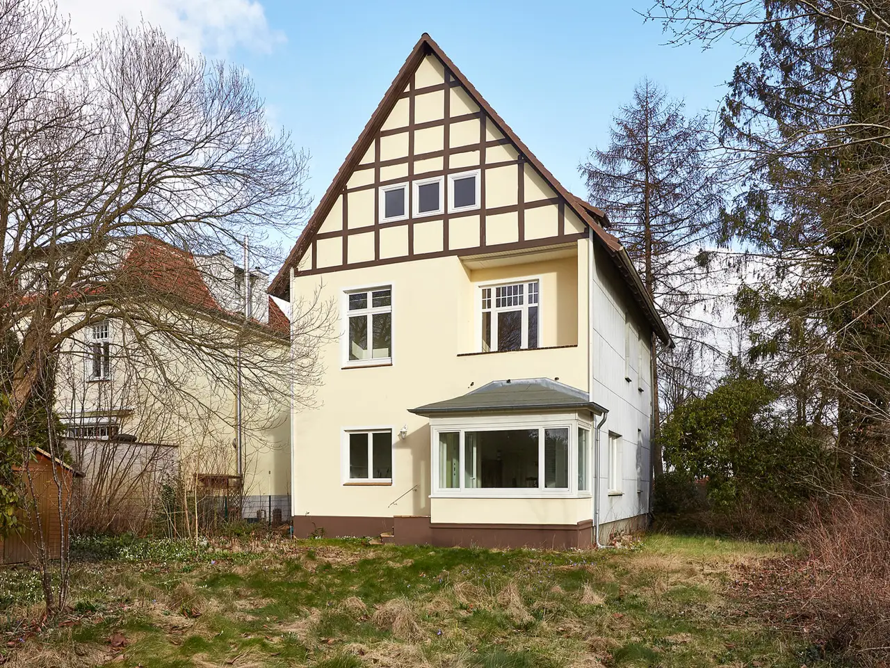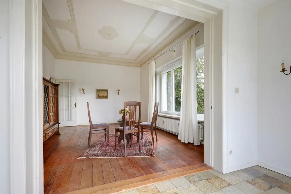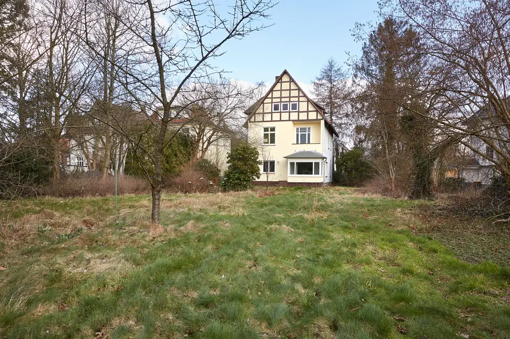 This city villa, built in 1906, is located on an approximately 2,444 m² west-facing plot, framed by hedges, rhododendrons and old trees in a prime location in Ahrensburg. The half-timbering in the gable area is a harbinger of the numerous original style elements that this villa has to offer inside - this property just needs to be awakened from its slumber. There are currently three self-contained residential units in the villa, each on the ground floor, on the upper floor and in the attic. It could be used as a single-family home; the room layout is family-friendly. The total living space is approx. 253 m² and offers a wide range of design options: representative living, living and working under one roof or living for several generations. Use as an investment property also seems conceivable. Access to the apartments is via the central staircase. The floor plan on the ground floor is almost identical to that on the upper floor and offers three spacious, well-planned rooms. On the street side and the garden side there is a terrace and a winter garden with garden access on the ground floor and a balcony and a loggia on the upper floor. A large kitchen can be designed as a kitchen-living room, and the bathrooms are currently equipped with a bathtub. There are also three rooms available in the attic. The front room offers a charming bay window and two spacious sides, so this room has no sloping ceilings. The back room is also spacious and easy to furnish. The charm of Art Nouveau can be found in many places and lends itself to shining in new splendor. These include the high stucco ceilings, the pitch pine floorboards and the double door in the living area on the upper floor. Some windows have already been replaced, taking into account the original character with lattice windows. The original style windows can still be found elsewhere. There are also some options for adapting the property to today's standards with regard to energy-saving measures for the roof and insulation. The property has a full basement. There is a gas heater from 1990 here, and there is also external access to the cellar. A connection to the fiber optic network is possible. As part of the renovation of the villa, it is necessary to examine which parking spaces could be created in the front area of the property. The garden offers a lot of design potential, the rear part of the property includes a second parcel. Let your imagination run wild and transport this collector's property into today.