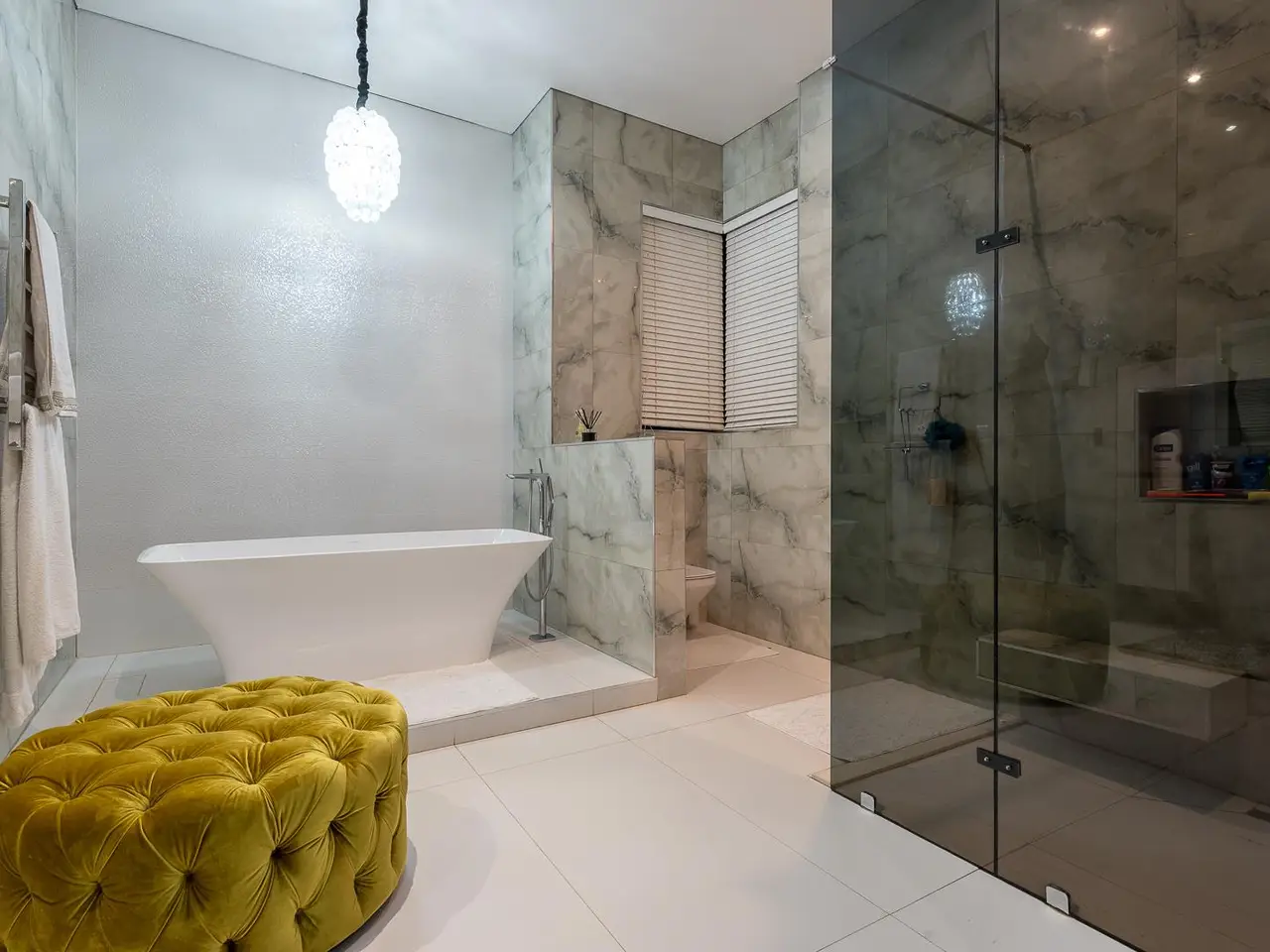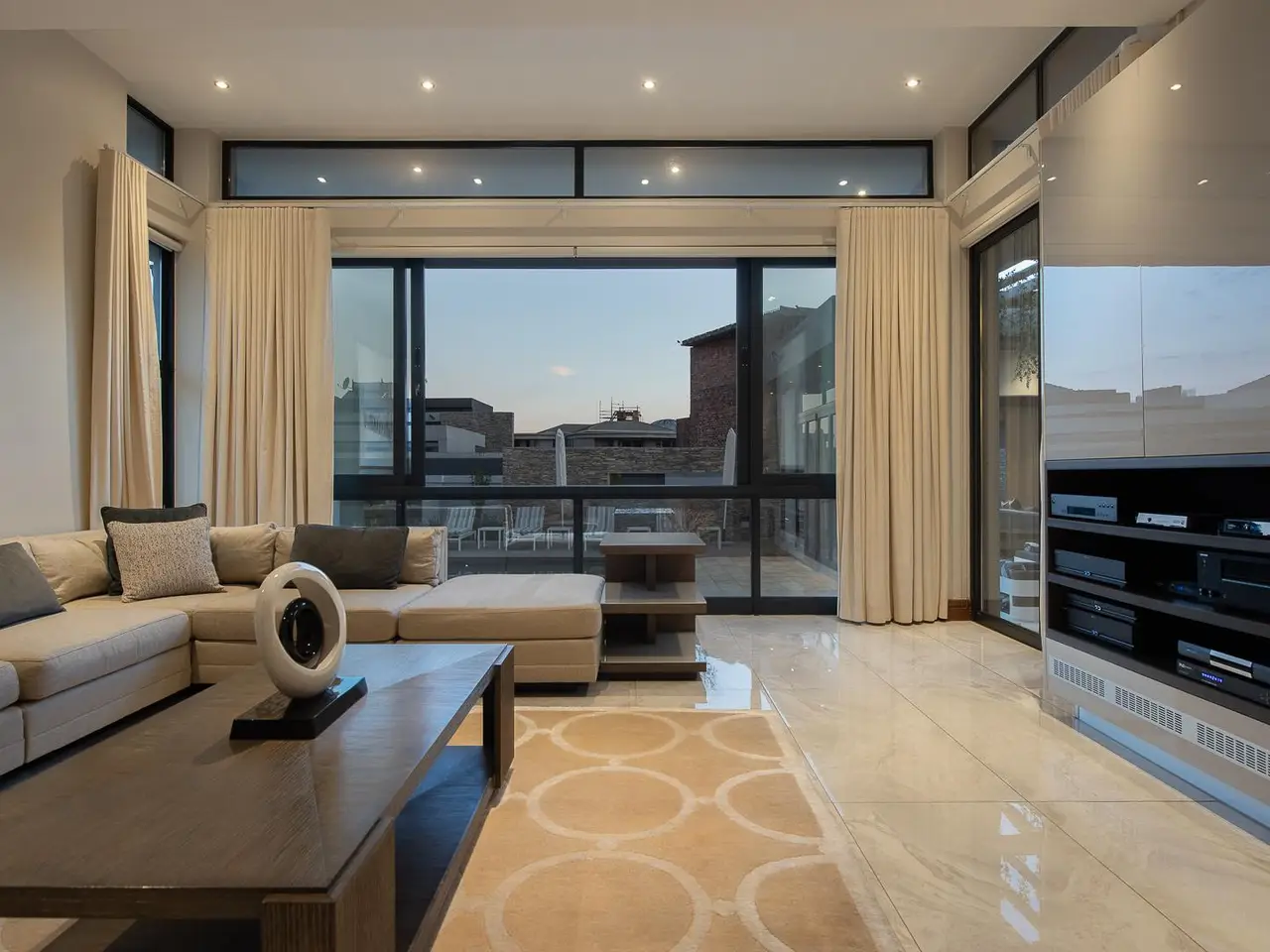 Location, Prestige Nature & Eco Estate, Architecturally Designed Master Built, Family Home & Entertainers Dream. With the use of quality Materials by the best builders in the business, An unmatched Architectural design that affords you effortless flow, allowing natural sunlight to highlight the homes natural beauty from the grand entrance, lit with grand Chandeliers to the formal lounge that opens to the patio and outdoor Pergola, A wine rack with entrance seating for guests to enjoy some delicious Pinot noir. A guest powder room/guest loo, guest bedroom en-suite, TV lounge with blue marble feature wall looking out to gorgeous landscaped gardens, open plan dining bar, living area with a well positioned fireplace for seperation. World class and gourmet chefs kitchen with miele deep fryer, griller, gas stove, oven, microwave complimented with scullery and pantry round off the ground floor living features. A seemless indoor outdoor flow takes you from inside perfection and class to outdoor paradise with eat out dining, boma, built in gas braai, outdoor elegant bathroom with shower and toilet, outdoor cinema and entertainment area with surround sound and projector screen where door stacks open to a beach entry to infinity swimming pool surrounded by rolling green lawns. Lets take you upstairs to Presidential accommodation, 4 oversized bedrooms all luxuriously en-suite with features and fittings that can only be described as class 5 star Hotel suites do not compare. Pyjama lounge with gas fireplace, gym, sauna, study and balconies complete the upstairs level. Full Home automation, aircons throughout, central vacuum, surround sound, cameras, staff accommodation, mounted generator, inverter system with solar panels, pool heat pump, 4 garages with direct access to the home and more. Call for exclusive viewing. *Extreme care has been taken to ensure that all representations contained in this advertisement are accurate and is provided on an GÇ£as isGÇ¥ basis with no guarantees whatsoever. The representations herein has not been compiled to meet a PurchaserGÇÖs individual requirements and it remains the PurchaserGÇÖs sole responsibility to inspect the property duly prior to entering into any purchase agreement. The representations herein does not constitute the terms of sale as the images and descriptions are merely indicative. Chas Everitt assumes no responsibility for any errors and we reserve the right to correct/change/update the advert at any time without prior notice.*