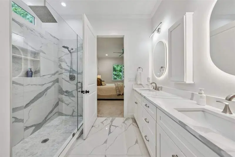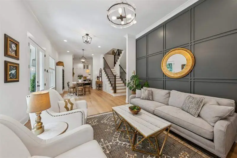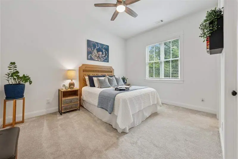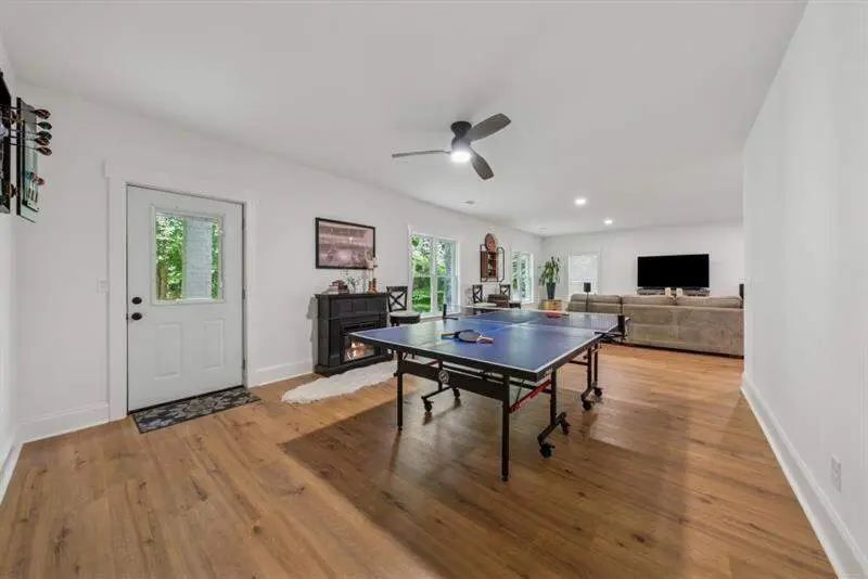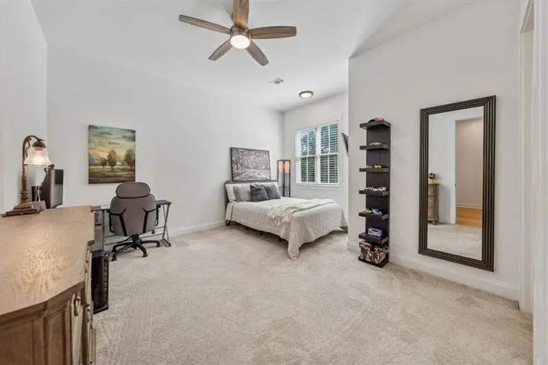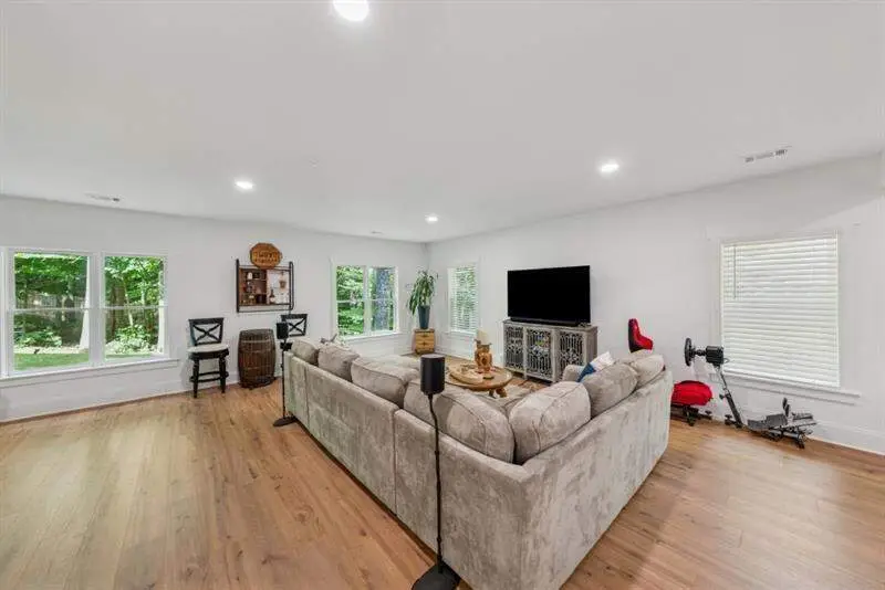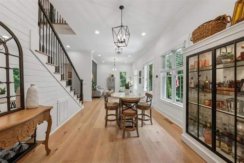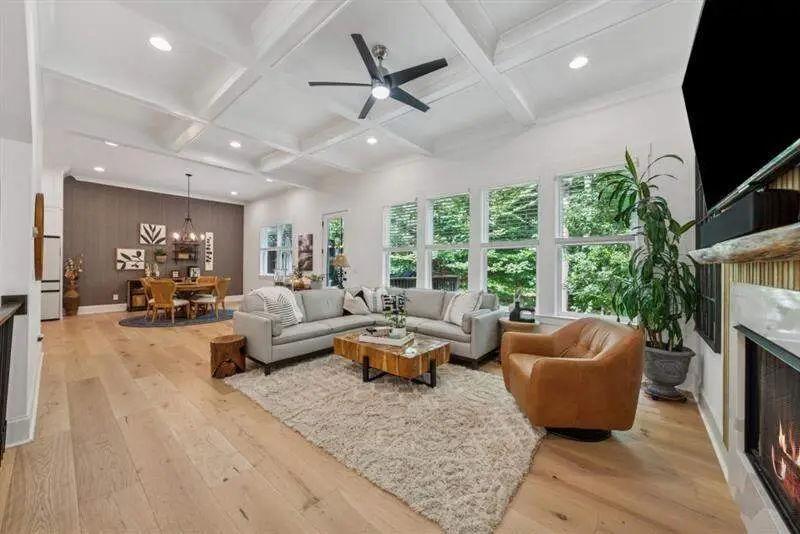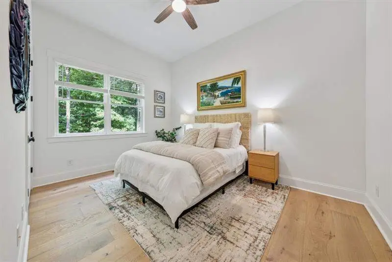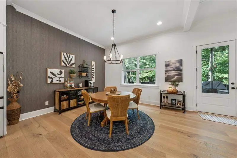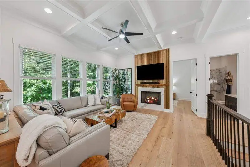 Experience unparalleled elegance in this gorgeous, modern, like new 6-bedroom, 5-bathroom plus office home. Perfectly situated less than 5 minutes from the vibrant dining and shopping of downtown Alpharetta, Roswell and Milton/Crabapple, this home offers the ideal blend of tranquility and convenience in the coveted Milton High School district. Step inside and be captivated. This bright and inviting 3-story home features soaring 11-foot ceilings and stunning 9-inch white oak floors that flow throughout the expansive open floor plan. A dramatic wall of windows floods the space with natural light and provides serene views of your private, wooded oasis. The cozy living area, accented by an inviting fireplace, creates a chic space perfect for lively gatherings or quiet evenings at home. Custom craftsmanship makes this home extra special, with beautiful coffered ceilings, planked walls, elegant wainscoting, and refined decorative moldings throughout. The heart of the home is a true chef's kitchen, shining with a large island, sleek quartz counters, spacious walk-in pantry, stylish wine bar, and stainless-steel appliances. On the upper floor, the stunning owner's suite is a true retreat, boasting a huge walk-in closet with custom built-ins and an island, plus a gorgeous ensuite featuring double vanities, a soaking tub, and a large shower for ultimate relaxation. Three additional bedrooms upstairs each with their own ensuite, as well as a light-filled separate office space with French doors. A fully finished basement adds incredible versatility with a bedroom, full bathroom, cozy living area, home gym, extra storage and large workshop. With more than 5,700 sq ft of thoughtfully designed space and easy access to GA 400, this home perfectly complements your lifestyle. Schedule your showing today and discover the life within Alpharetta you've been dreaming of!