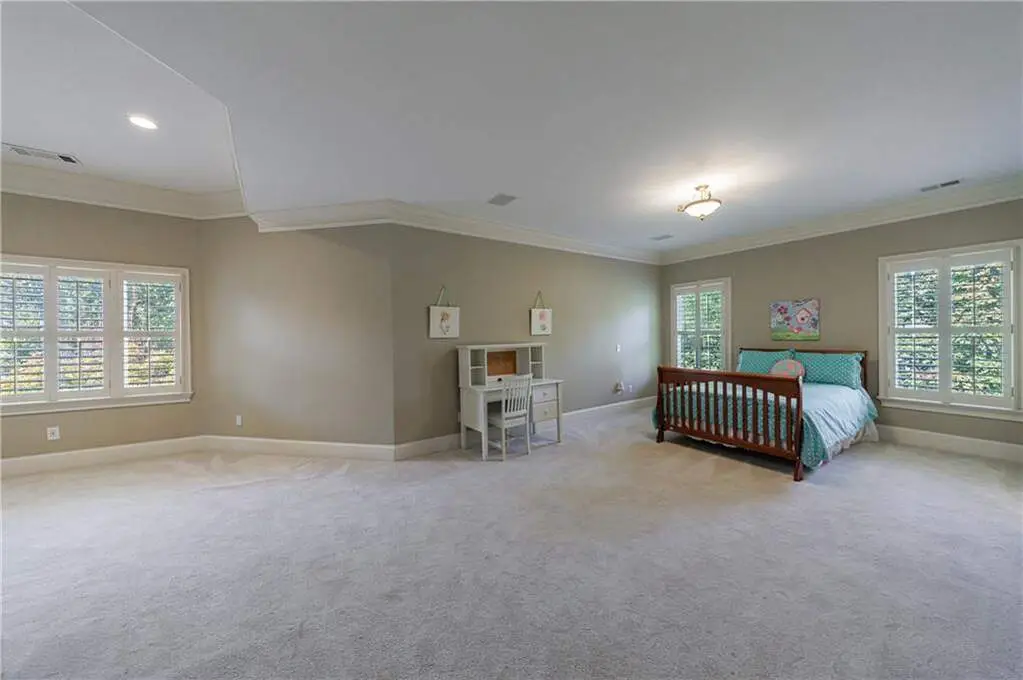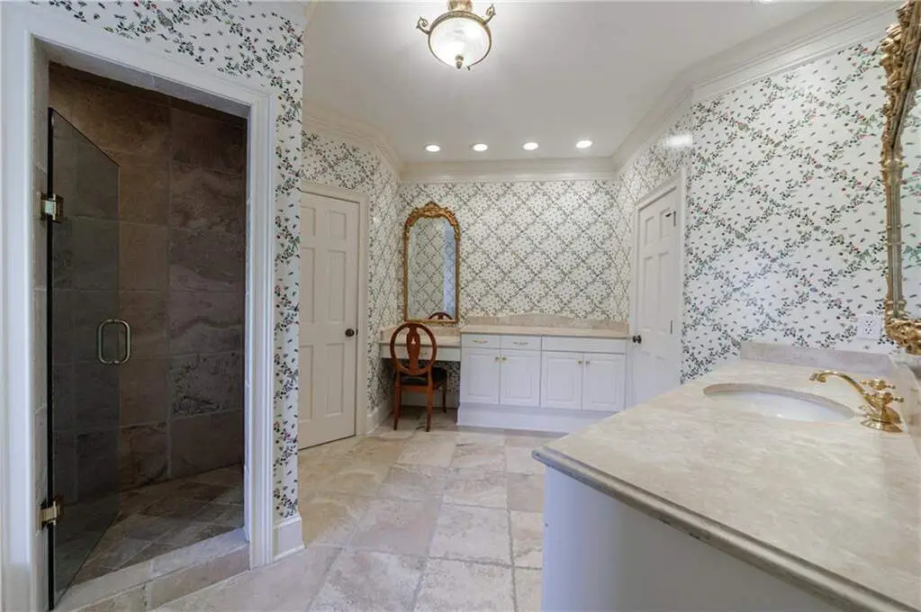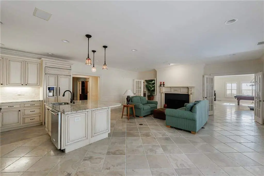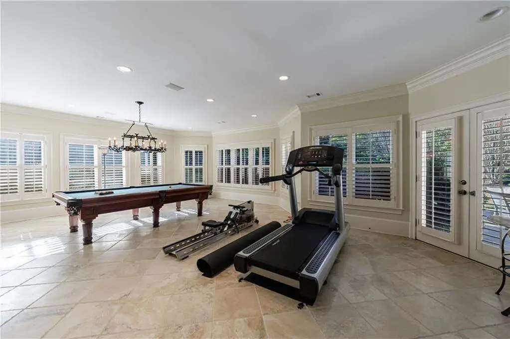 Exquisite European-Inspired Estate in Country Club of the South is set along the prestigious Country Club of the South golf course. This elegant all-brick European-style residence combines timeless architectural detail with modern sophistication and offers unparalleled craftsmanship throughout. A stately front portico with a coffered ceiling and double entry doors opens to a soaring 20-foot foyer entry, setting the stage for the home's grand yet inviting ambiance. The open and airy floor plan flows effortlessly from the curved floating staircase to the two-story great room, framed by floor-to-ceiling windows and features one of five exquisite stone fireplaces. Flanking the foyer are the banquet sized formal dining room and an elegant study featuring rich built-ins, coffered ceilings, and a fireplace. The chef's kitchen is a culinary masterpiece, featuring top-tier appliances, a large center island with bar seating, walk-in pantry with built-in ladder, and a butler's pantries. The adjoining breakfast room and keeping room-complete with fireplace and terrace access-create a perfect setting for everyday living and entertaining with sweeping views of the golf course. The primary suite on the main level is a private retreat with a fireside sitting area, two custom walk-in closets, and a luxurious marble bath with dual vanities, make-up desk, jetted soaking tub, and multi-head shower. Upstairs, you'll find two en-suite bedrooms, each with private baths and large closets and two bedrooms with an adjoining bath, each with large closets. An expansive finished attic (over 1,000 sq. ft. not included in the total square footage) with permanent stair access finishes off the 3rd level. This space offers conditioned air and is ready to customize. The terrace level is designed for entertaining on a grand scale, featuring a full secondary kitchen,, fireside family room, game and fitness areas, home theater, office, hobby and tool rooms, and a stunning English pub bar adjoining