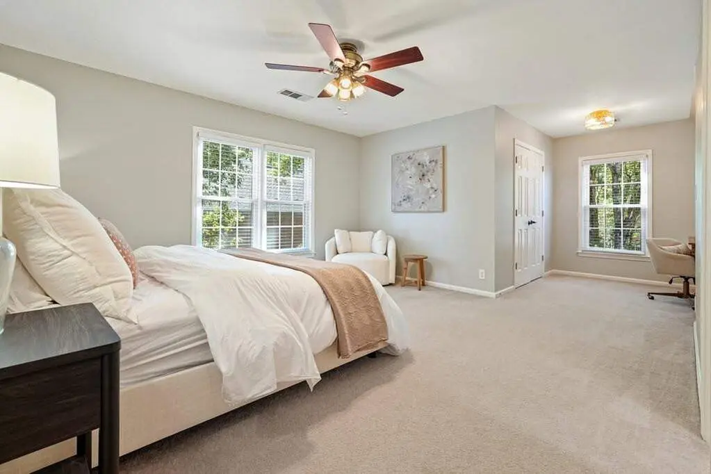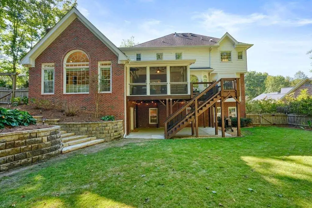 Welcome Home to 3965 Brookline Drive, situated in the prestigious enclave of Park Brooke, one of Alpharetta's most coveted communities. Ascend the elegantly curved brick stairs and be greeted by a soaring two-story foyer, where sunlight cascades through oversized, energy-efficient windows. Gleaming hardwood floors stretch seamlessly throughout the main level, guiding you past a home office, formal living and dining suite perfect for intimate soir es or lavish gatherings. The heart of the home unfolds in the chef-inspired gourmet kitchen, blending elegance and practicality - showcasing bright white cabinets, smooth granite countertops, a gas range and expansive views of the back yard. Adjoining the kitchen, a comfortable breakfast nook flows effortlessly into the vaulted family room, where a striking painted brick fireplace serves as the focal point, framed by built-in shelving and direct access to the expansive screened-in porch. Ascend either staircase to discover three generously proportioned secondary bedrooms, each with walk-in closets and two full bathrooms. The primary suite, a private aerie on the upper level, exudes serenity with its soaking tub, separate shower, dual vanities, and a cavernous walk-in closet outfitted with custom shelving organizers. Beyond the interiors, this residence harmonizes with its surroundings through thoughtful expansions, including a finished terrace level that houses a fifth bedroom, full bath, living space with additional fireplace, recreation area, workshop and ample storage, all opening to a covered patio that overlooks the lush, fenced backyard complete with a roaring fire pit & bocce court. Recent enhancements, from accent walls & fresh interior paint to state-of-the-art HVAC upstairs ensure effortless comfort year-round. Park Brooke's resort-inspired lifestyle enhance everyday moments: lounge poolside at the community oasis, hone your skills on the lighted tennis, pickleball and basketball courts, or stroll the private gree