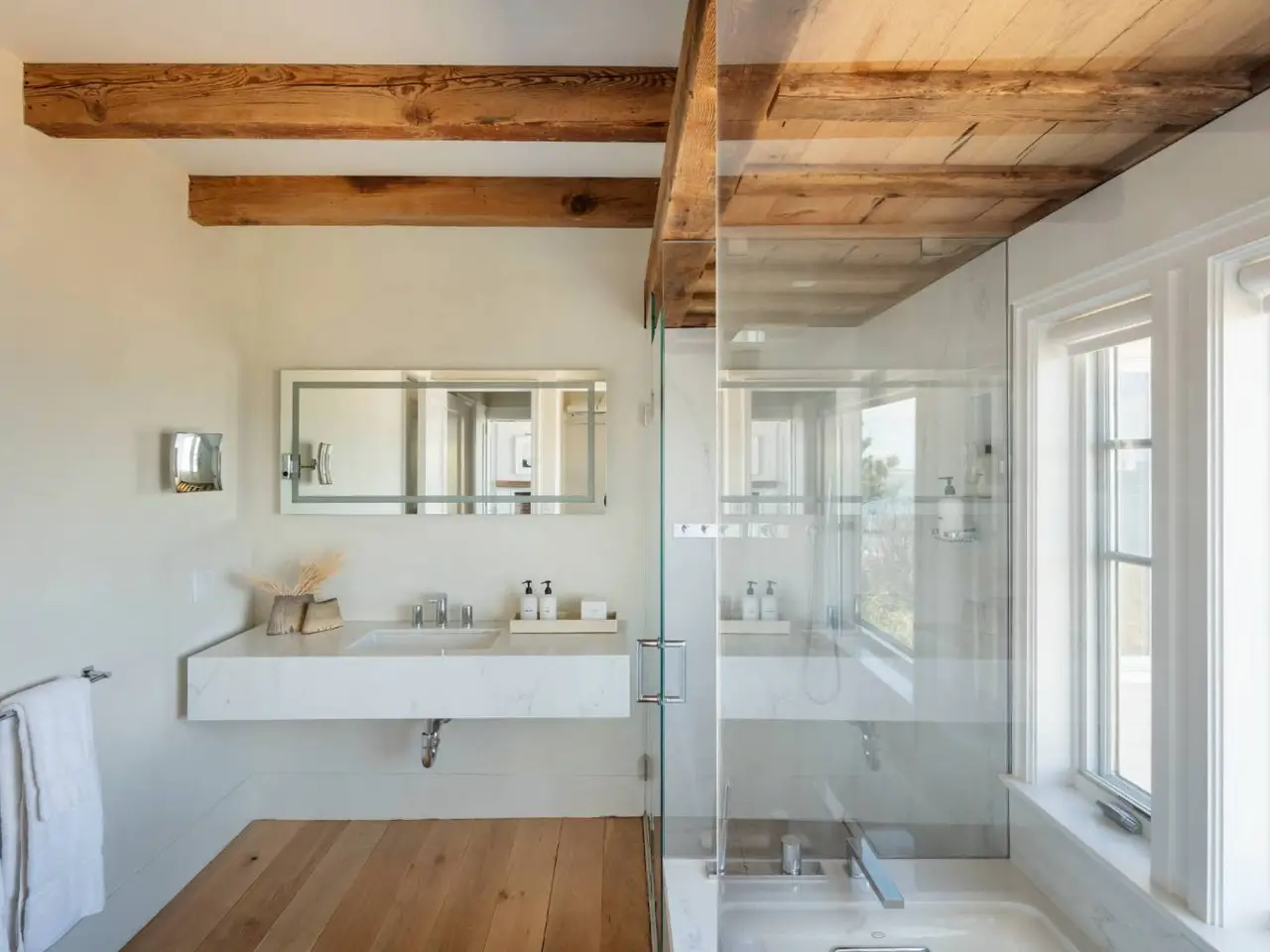 Perched on the water's edge, this recently transformed waterfront house features a timeless design and the luxury of a private beach overlooking the tranquil Gardiners Bay. Imagine leisurely lunches with your feet in the sand, swimming just steps away and watching wide open sunsets day after day. This unique offering includes the .22 acre adjacent lot providing space for a pool and guest house. The main level blends antique wooden beams with sleek Venetian plaster complemented by an abundance of natural light. Every detail, inside and out, is state of the art and has been incorporated to contribute to a feeling of quiet luxury and complete comfort. Natural landscaping from the dunes to the entrance ensures your privacy. A comprehensive list of systems and fittings, as well as a recent survey and certificate of occupancy are available. The home has deservedly garnered attention in multiple design publications. Private showing by appointment.