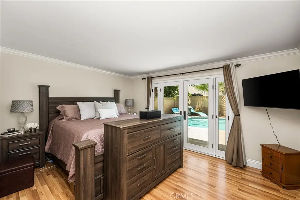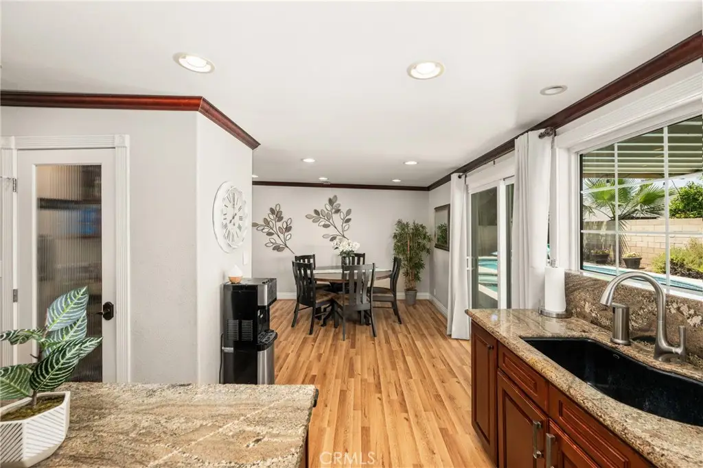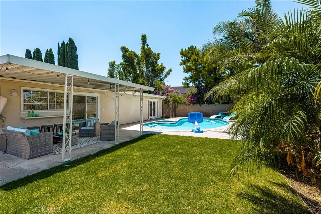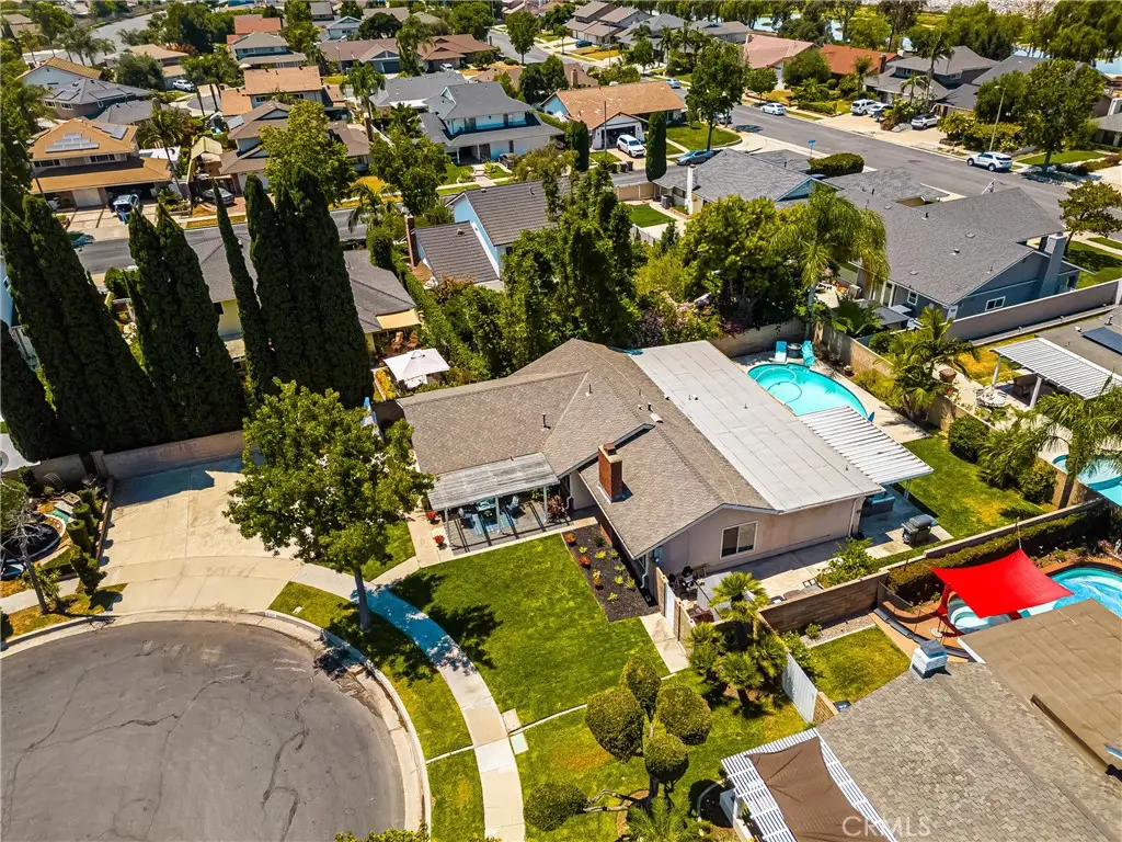 Tucked away in a peaceful Anaheim Hills cul-de-sac, this beautifully upgraded single-story pool home offers 4 bedrooms, 2 baths, and a layout designed for comfort and convenience. The spacious living room features vaulted ceilings, crown molding, wood flooring, a cozy brick fireplace, and plantation shutters. Energy Star-qualified windows and recessed lighting add to the home's efficiency and charm. The updated kitchen boasts granite countertops, a center island, stainless steel appliances, and a pantry--perfect for everyday living and entertaining. French doors in the primary bedroom open to a private backyard retreat complete with a sparkling pool and spa, covered patio, fruit trees, and a side dog run. Additional highlights include mirrored closets, six-panel doors, ceiling fans, a water softener system and wood flooring throughout. With a wide driveway suitable for extra cars or RV parking, a two-car garage equipped with an EV charging outlet, upgraded HVAC system, water softener, roof, house insulation, water heater, energy-efficient pool pump and rain gutters--this home is move-in ready. Located in an award-winning Canyon High School district, within walking distance to Riverdale Park, shopping, and dining, with easy freeway access. No HOA. Welcome Home, this one's ready for you!
