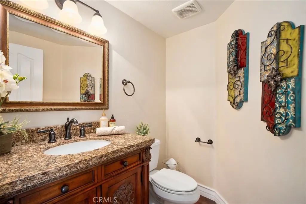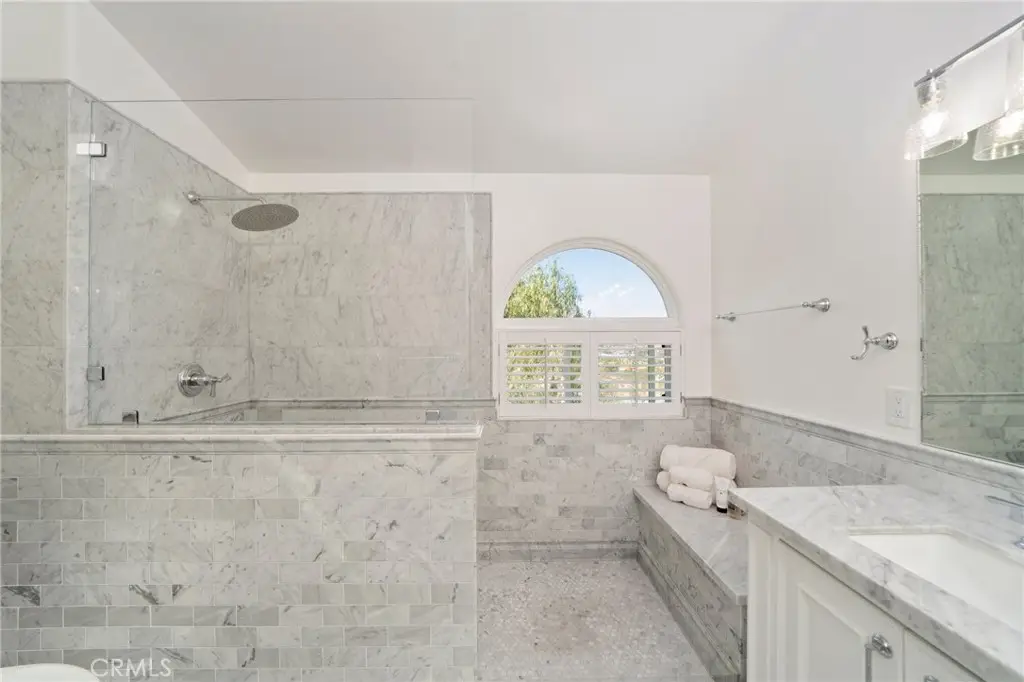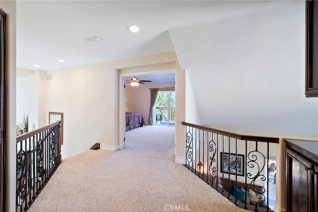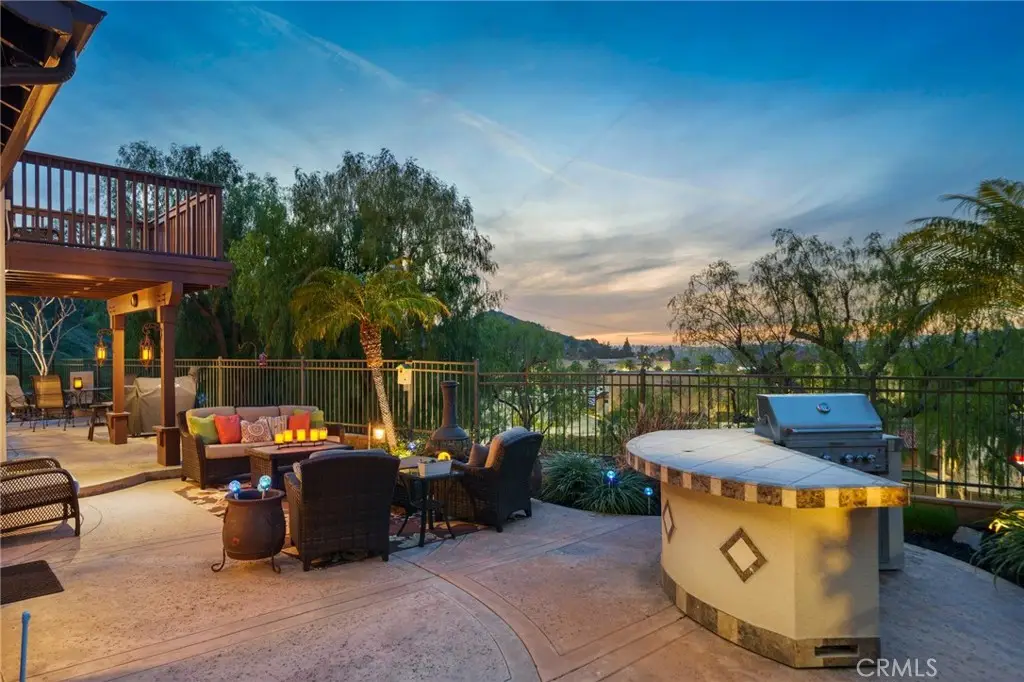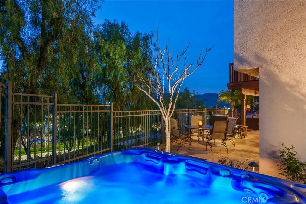 Stunning Anaheim Hills Home with Panoramic Views! Nestled in the heart of Anaheim Hills on a peaceful cul-de-sac, 8085 E Kendra Ct offers breathtaking city light and snow-capped mountain views. This beautifully upgraded 4-bedroom, 2.5-bath home spans approximately 2,200 sq. ft. and features a 3-car garage with epoxy floors and built-in cabinetry. Step inside to find elegant wood flooring and an upgraded iron staircase, setting the tone for this sophisticated residence. To the right, the inviting family room boasts a cozy fireplace, Bowers & Wilkins surround sound system, and a sliding glass door that leads to the backyard--offering an incredible indoor-outdoor living experience. Electronic equipment is neatly stored in a pullout cabinet for a sleek, clutter-free look. The remodeled kitchen is a chef's dream, featuring recessed lighting, stainless steel appliances, granite countertops, a stylish tile backsplash, and a reverse osmosis system. A breakfast nook and slider provide easy access to the backyard, perfect for morning coffee with a view. The formal dining room, conveniently adjacent to the kitchen and you have another slider to the backyard. The spacious formal living room adds to the home's charm.The main floor also includes a remodeled half bath and an inside laundry room for convenience. Upstairs, the luxurious primary suite is a private retreat, complete with a ceiling fan, a sliding door leading to a Trex deck with stunning views, and a walk-in cedar-lined closet. The remodeled primary bath features dual sinks, a carrara marble shower with matching walls, brizo faucets and fixtures and a skylight with dual-pane glass and an automatic shade. The secondary bedrooms offer LVP floors, ceiling fans, cedar-lined closets, and window shutters. The remodeled hall bath features dual sinks and a porous marble shower with matching walls.Exceptional Outdoor Living designed for relaxation and entertaining, the backyard boasts professional landscaping by Seth Pompey, landscape lighting, a built-in BBQ with a fridge, a covered patio extending from the upper deck, and an above-ground spa with an outdoor shower. Additional Features Recently painted exterior, New garage doors & rain gutters. High-energy efficient roof with dual-layer paper, reflective membrane. Whole-home soft water and filtration system, 9 security cameras on the house & 12 on the street This meticulously maintained home offers the perfect blend of comfort, luxury, and breathtaking scenery.