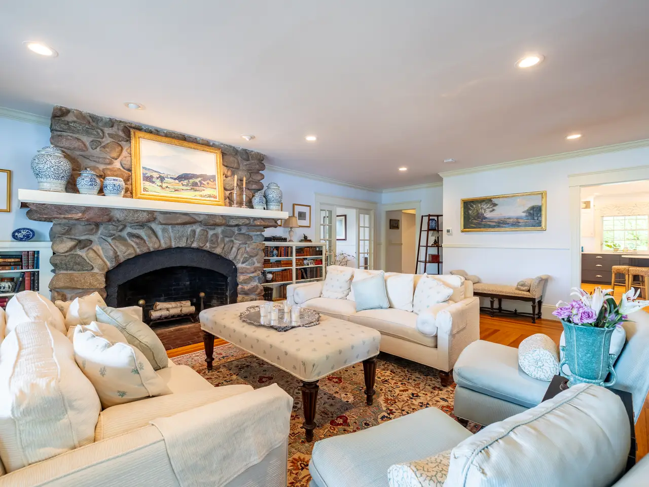 WATER VIEWS IN ANDOVER!! Welcome to this stunning Colonial home perched on a private peninsula with breathtaking panoramic views of Haggetts Pond. Thoughtfully designed for both comfort and luxury, this residence features a two-car garage, ample parking, and a sport court. Inside, the sun-filled living room with a dramatic stone fireplace, opens to a recently updated, eat-in chef's kitchen complete with high end, sleek stainless steel appliances. The finished lower level offers a spacious flex area ideal for a home gym, media room, or office. Wake up in your primary suite with water views in this true retreat, boasting a second stone fireplace, walk-in closet, and a spa-like bath with a jetted tub. Step outside to a wrap around porch for a relaxing afternoon overlooking Haggetts Pond that is perfect for entertaining. Energy-efficient solar panels add sustainability to style. All just moments to I-93, Indian Ridge Country Club, shopping, dining, and more—this rare waterfront gem offers it all!