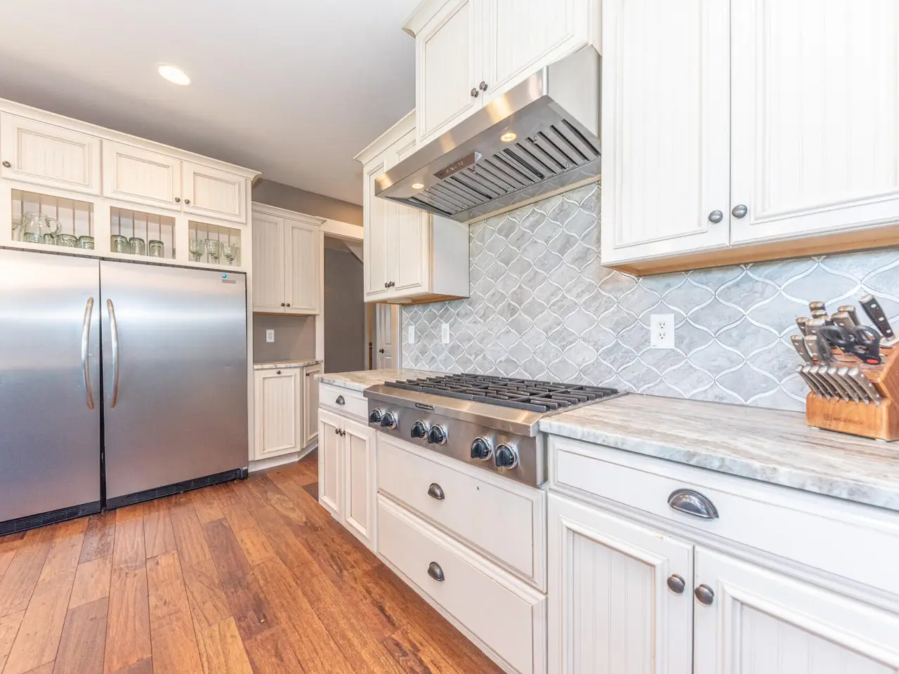 This former builder's showcase home has been beautifully maintained with countless upgrades and improvements. Fantastic open floor plan is perfect for entertaining including a deluxe kitchen with Masterpiece cabinetry and professional appliances overlooking a spacious two-story great room with expansive stone fireplace. Luxurious main floor primary suite includes a soaking tub and dual vanity plus a large walk-in closet. Private guest suite with separate staircase is perfect for visiting family, au pair, or a quiet work-from-home space. Huge finished basement has a recreation space, stunning new kitchen, full bath, and home gym. Other features include newer hardwood floors, a three-car garage, automatic generator, Anderson 400 series windows, all new window treatments, nine foot ceilings, butler pantry, closet organization systems, upgraded trim & crown molding, and professional landscaping. Relax & unwind on the wrap around front porch or watch stunning sunsets from the screened back porch!
