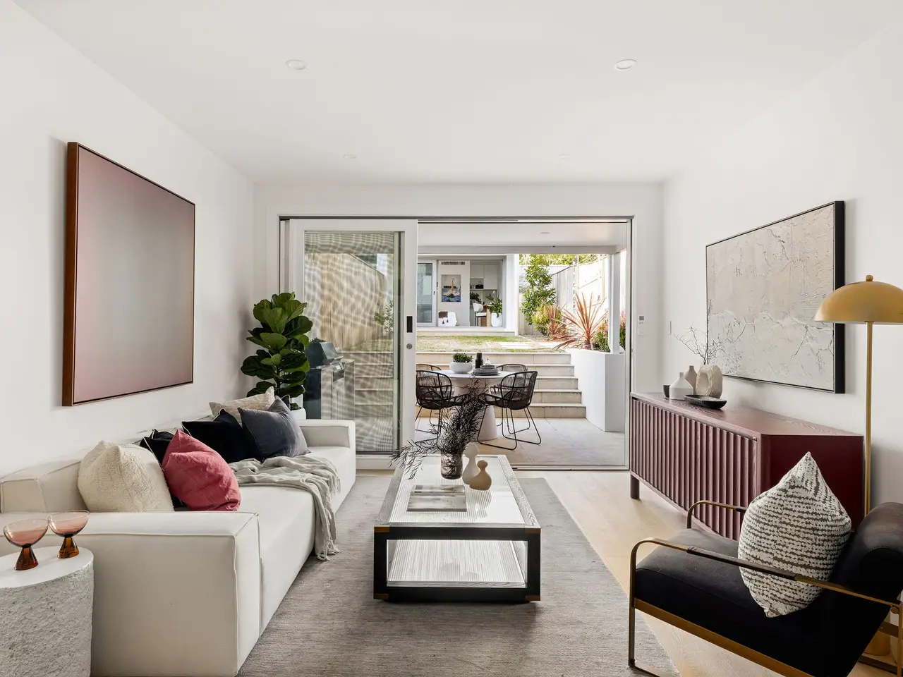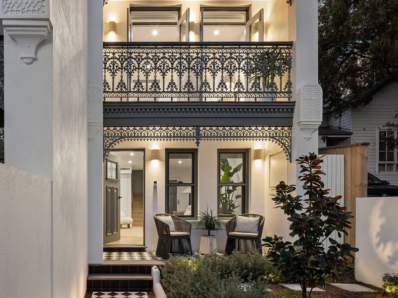 Completed in 2024, this terrace has been designed with a recreated Victorian façade, complementing the era of surrounding homes in Annandale. Behind the period-inspired frontage lies a completely new residence created for modern family living. The tri-level design includes a fully self-contained rear studio, with attention to detail, comfort, and craftsmanship evident throughout - from the engineered timber flooring to the oversized rooms, high ceilings, ducted air-conditioning, and professionally landscaped gardens. There are two living areas, one with combined dining flowing out to the outdoor entertaining area and garden, alongside a powder room and laundry, and a streamlined kitchen with Bosch appliances and integrated dishwasher. The middle level features a generous bathroom and a master suite with double doors opening to a traditional Juliette balcony. Upstairs, two additional bedrooms are serviced by a stylish bathroom with fluted free-standing tub. The top floor is reserved for a second master suite, complete with pitched ceilings and a cleverly integrated ensuite. Adding further appeal, the property is just footsteps to the renowned Cherry Moon Café, Annandale Public School, and city-bound buses. - A contemporary tri-level terrace, completed in 2024 - Substantial family home ready to move into and enjoy - North-facing backyard, with undercover alfresco kitchen - Easy-care landscaped back garden with ambient lighting - Separate studio with bedroom, kitchenette and bathroom - Moments to Annandale Public School and Cherry Moon Café - Plenty of transport options, just minutes to Sydney CBD buses