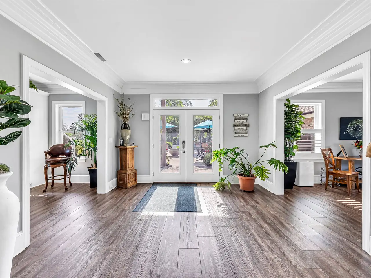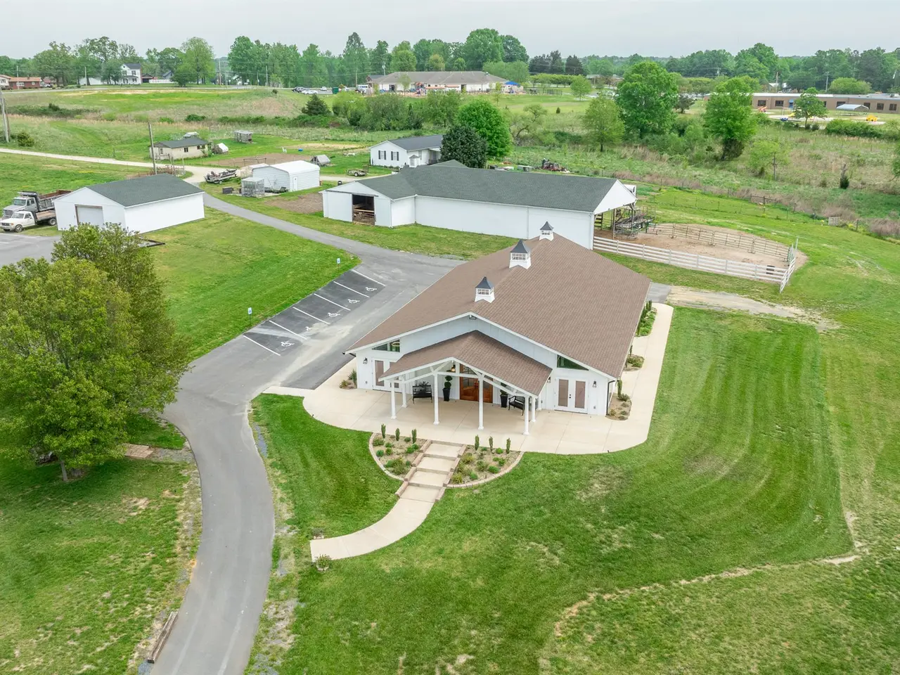 Nestled on 23 acres of picturesque land, this venue offers a blend of luxury, functionality and charm. At the heart of this estate sits a grand 8,500 square foot home with a two-story living room, two kitchens and dining areas, multiple decks, balconies and a patio. Outside discover all the possibilities for entertainment and celebration. A charming barn, wedding chapel and multiple outdoor areas provide surroundings for unforgettable events. Three income producing rental homes are also located on the property along with a working cattle/hay barn and a pond. Whether you envision a serene family retreat, a bustling farm or lucrative income producing venue, this property offers endless potential.
