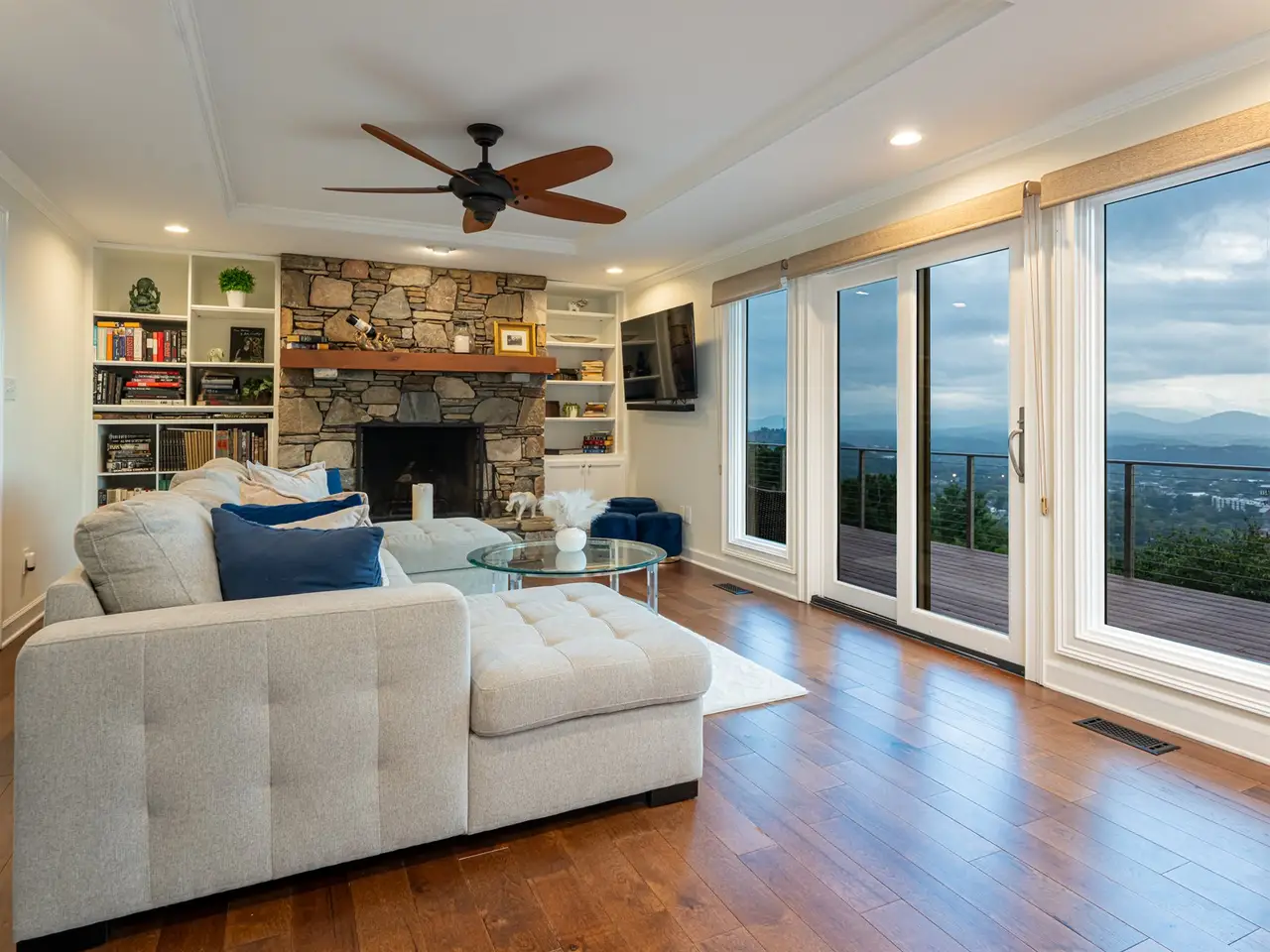 Impressive cityscapes and magnificent mountain views await you at this beautiful Town Mountain home. Situated in the Highland Gate neighborhood, enjoy fabulous scenery as well as convenience to all vibrant downtown Asheville has to offer. This exquisite home offers some of the most captivating westerly views of downtown Asheville, framed by sweeping mountain ranges that create our city's iconic backdrop. These are the kinds of views that inspire joyful text messages, cherished holiday card portraits, and unforgettable gatherings with friends and family. From the expansive deck, evenings unfold in a kaleidoscope of color as the sun sets behind the Blue Ridge Mountains, sparking lively conversations and quiet moments of wonder alike. Inside, the panorama continues?whether you're in the beautifully appointed kitchen, the inviting living room with custom built-ins and a stacked-stone fireplace, or the serene primary bedroom. Two guest suites with en-suite baths, along with a flexible office or workout room on the terrace level, provide equally inspiring views of lush surroundings and glimpses of the city skyline. Picture mornings wrapped in a cozy blanket with coffee in hand, gazing across an autumn landscape ablaze with color. Or evenings with a glass of wine as the skies fade from fiery sunset to twilight, while city lights begin to twinkle in harmony with the stars above. Few settings capture Asheville's four-season splendor quite like this. Meticulously maintained and thoughtfully designed, this home blends beauty, comfort, and functionality. Be sure to review the full features list?and schedule your private showing today to experience this extraordinary property in person.