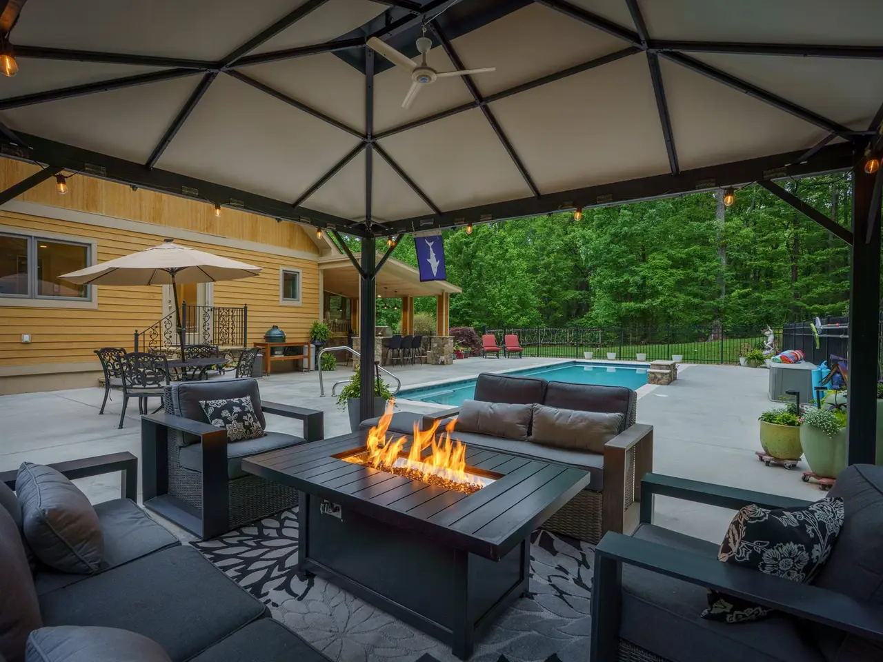 Experience the Pinnacle of Mountain Living! Nestled on an expansive 6.76 serene acres?a rare offering of both space and privacy?this luxurious estate captures the charm of forested tranquility while delivering unmatched convenience just minutes from downtown Asheville. With direct access to the scenic Mountain-to-Sea Trail, outdoor adventures await just beyond your doorstep. Architectural Brilliance Meets Natural Beauty. Designed for both comfort and elegance, the home's soaring vaulted great room is embraced by walls of windows that frame lush, wooded views and allow natural light to flood the space. A dramatic stone fireplace anchors the living area, creating a striking focal point that adds warmth and character. A Chef's Dream & Entertainer's Delight! The sophisticated chef's kitchen features a grand center island, rich designer lighting, and premium appliances including a brand new luxury grade Thermador refrigerator?perfect for culinary creativity and casual gatherings alike. Seamlessly adjoining the living areas, it's an entertainer's dream. Serene Retreat on the Main Level. The primary suite?conveniently located on the main level?offers peaceful seclusion and an indulgent, spa-like bath designed for ultimate relaxation. Two beautifully appointed upstairs ensuite bedrooms offer elegance, comfort, and versatility. Versatile Lower-Level Living. A fully-finished lower level adds significant living space and functionality, including a guest suite, fireplace, kitchenette for convenience and a fitness room tailored for wellness and enjoyment. Exceptional Outdoor Living & Entertainment. Outdoor living is elevated by a screened porch, a fully appointed outdoor kitchen, and a resort-style pool complete with a mesmerizing cascading waterfall. Whether hosting large gatherings or enjoying quiet, family time, this property invites you to savor nature in style. Thoughtful Extras for Comfort and Convenience. High-end additions extend beyond aesthetics? a generator for peace of mind, dual Rinnai tankless hot water heaters for efficiency, and a dedicated golf cart garage, recent updates include a brand-new roof. Impeccable Craftsmanship and Lifestyle-Spanning approximately 6,115 square feet of thoughtfully designed living space, this home was built with timeless quality. A 2-car garage, plus golf cart garage, circular driveway, and hardboard siding enhance both form and function. Prime Location & Top-Rated Schools. Quiet and private yet centrally located, the home is served by Buncombe County Schools, including Estes/Koontz Elementary, Valley Springs Middle, and T.C. Roberson High?each known for strong educational programs. Unmatched Flexibility & Future Potential & Opportunity. A rare and valuable feature of this property is the inclusion of two separately surveyed lots, offering exceptional versatility for future use. Whether you're envisioning a family compound, an additional guest residence, or simply securing long-term investment potential to redevelop later or explore future resale strategies, this added acreage opens the door to a variety of possibilities and enhances the property's investment appeal. With no HOA and no restrictive covenants, the property is free from the limitations that often come with community developments. This creates an outstanding opportunity for use as a luxury short-term rental, a private retreat, or even a multi-generational estate. The existing layout, resort-style amenities, and proximity to downtown Asheville make it an ideal candidate for discerning investors seeking both lifestyle and income-producing potential. A World Apart, Yet Moments from Downtown! This exclusive estate offers a rare combination of peaceful mountain living and seamless access to Asheville's vibrant culture, dining, and arts?providing both refuge and connection in one idyllic setting!