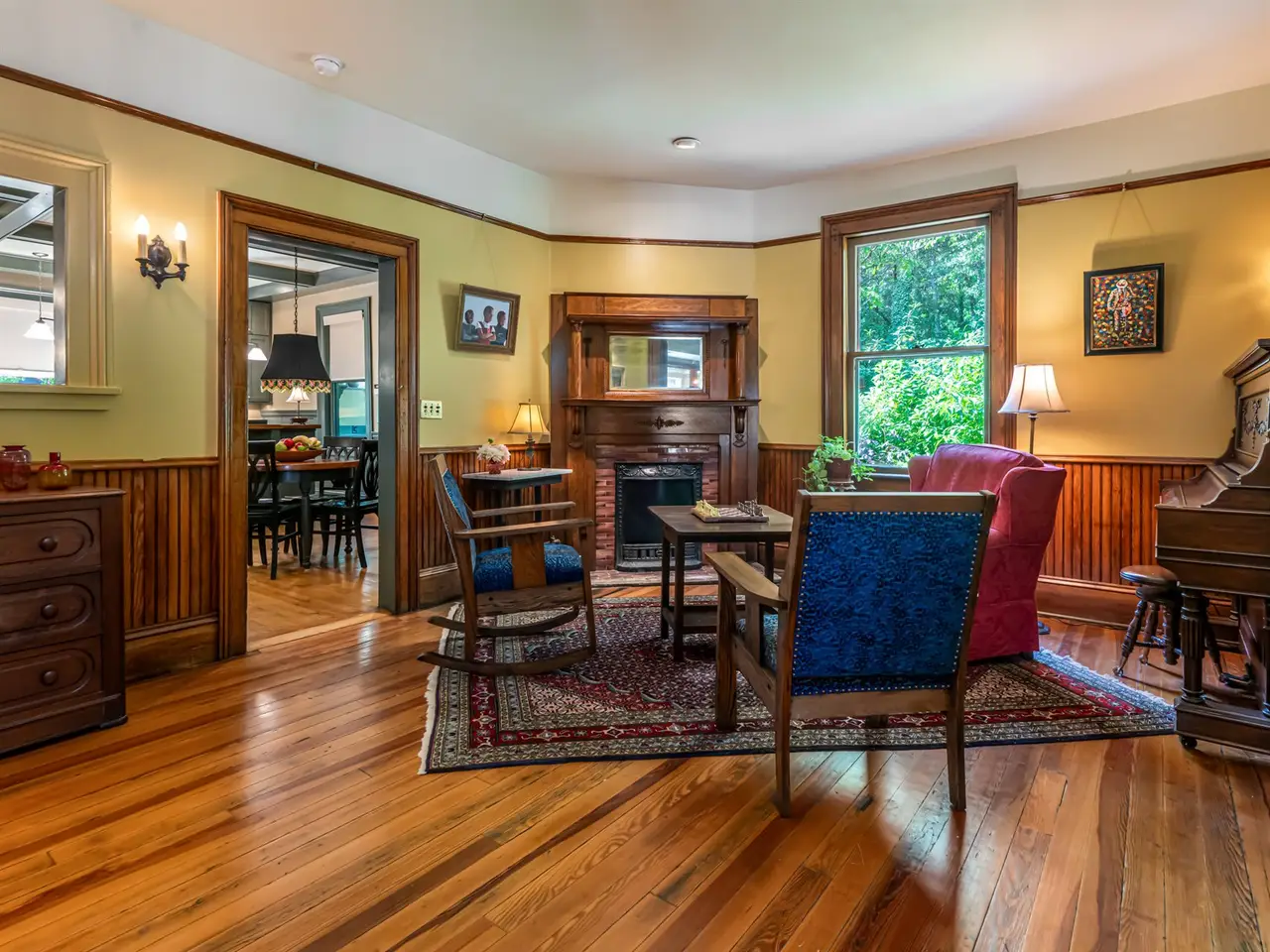 Charming, stylish historic home with spacious entry foyer, beautiful period details throughout, wood floors, high ceilings, wood-burning fireplace in kitchen/keeping room & five other period fireplaces. Wonderful deep front porch wraps around to family room that opens through four-panel sliders to a lushly landscaped patio area. Exudes period charm & grace, while incorporating ALL modern conveniences-- an exquisite space, inside & out, for elegant entertaining! IMAGINE crochet on the lawn! Great new 2-story addition (2012). BEAUTIFULLY landscaped ACRE! Legal Homestay on main level grosses over $25k annually. 400 amp electric; 1550 gallon gravity fed cistern. Potential for 2-3 additional lots (with City subdivision approval). Commercial/multifamily parcel zoned NCD below on Broadway (same owners) and can be sold separately or as a package (call for info). Shop lot to left of driveway (Min. 1/4 acre) INCLUDED with this listing (also see MLS 42999248 w/o lot). Currently working w/City to rezone to RS8. Seller to retain shop use for up to 1 year. SO CLOSE to downtown and Greenway!
