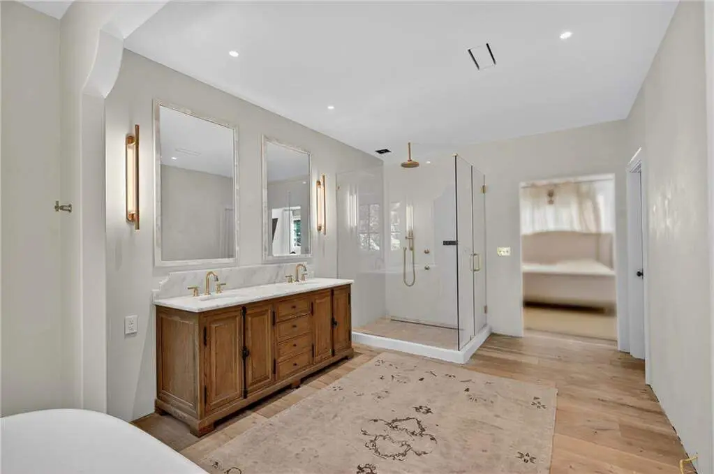 This beautifully renovated and expanded home is nestled in the heart of North Buckhead, situated in a neighborhood known for its fun, friendly atmosphere and strong sense of community. Designed and owned by a local designer, the home showcases exquisite attention to detail throughout, from graceful arched doorways to curated finishes that blend timeless charm with modern luxury. The light-filled main level features a gorgeous kitchen with Carrara Gold marble counters, a CornuFe range in rich blue, and an inviting open layout perfect for entertaining. A guest suite on the main level offers privacy and comfort, while the functional mudroom connects directly to the two-car garage. The newly added second story includes an expansive primary suite with a vaulted ceiling, luxurious marble bathroom with soaking tub, separate shower, and double vanities, plus an oversized walk-in closet. Two additional secondary bedrooms share a stylish Jack-and-Jill bath. The daylight terrace level provides incredible flexibility with multiple living areas, an office, bedroom, and full bath, ideal for guests, a gym, or playroom. Outdoors, enjoy the large private fenced backyard with multiple play areas, a fire pit, and lush landscaping, perfect for entertaining or relaxing with family. This exceptional home is just moments from Buckhead's best restaurants, shops, and schools, offering an unbeatable combination of style, comfort, and convenience.