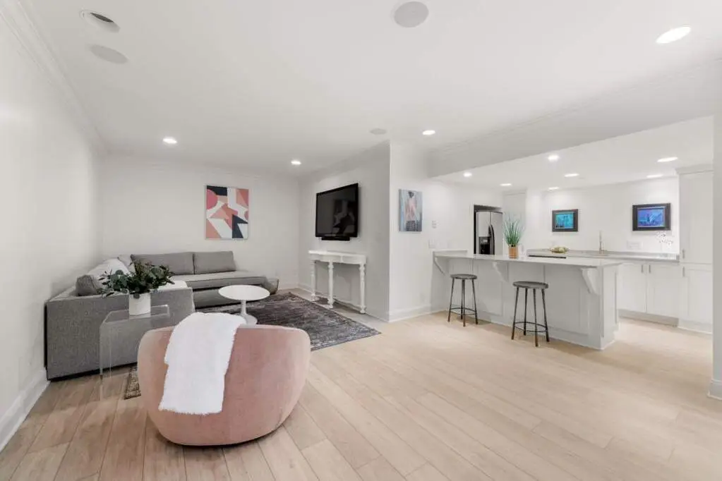Welcome to 320 Long Glen Drive a complete architectural transformation that merges timeless traditional design with refined transitional luxury, tucked quietly near Chastain Park. Every inch of this reimagined five-bedroom, five-bath, two-half-bath estate has been rebuilt for the way people live today combining refined transitional style, enduring materials, and a resort-level outdoor experience in one of Sandy Springs' most coveted gated enclaves near Chastain Park. Beyond the private brick courtyard, steel-framed glass doors open to luminous interiors defined by pale hardwoods, layered millwork, and subtle low-voltage lighting that creates a warm, gallery-like ambiance. At the heart of the home, the chef's kitchen features an impressive oversized quartzite island, professional-grade appliances, and Kingdom Woodworks custom cabinetry, all opening to a vaulted fireside keeping room where natural textures and stone details set a relaxed yet refind tone, bright breakfast room framed by picture windows overlooking the dreamy backyard oasis, creating a seamless connection between indoor elegance and outdoor living. The show-stopping Great Room is both architectural and inviting an entertainer's dream with a dramatic cove ceiling, floor-to-ceiling windows overlooking the lavish landscape, and a striking marble-topped Wet Bar flanking the stone fireplace. This space effortlessly connects to an elegant dining room with a dramatic lacquered fireplace and a glass-enclosed wine gallery that sets the stage for refined entertaining, ideal for curated tastings or evening gatherings. A private retreat in every sense, the main level primary suite balances sophistication with privacy. Dual owner's baths each with its own quartz surfaces, stepless showers enveloped in marble, custom cabinetry, and bespoke fixtures are connected through dual custom closets designed for form and function. A serene sitting alcove captures garden views, completing a space that feels more boutique hotel