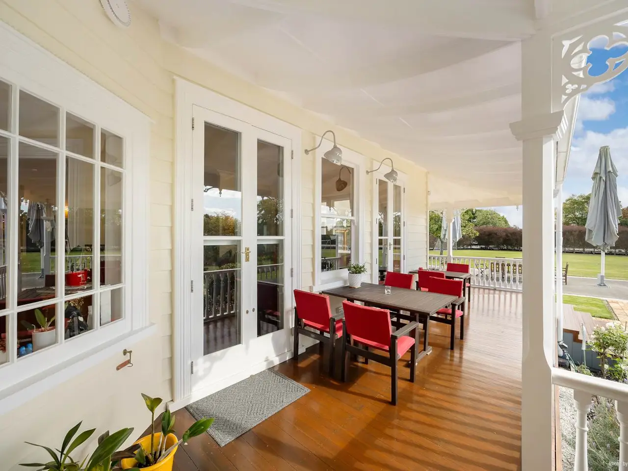 Open-plan dining area with courtyard access