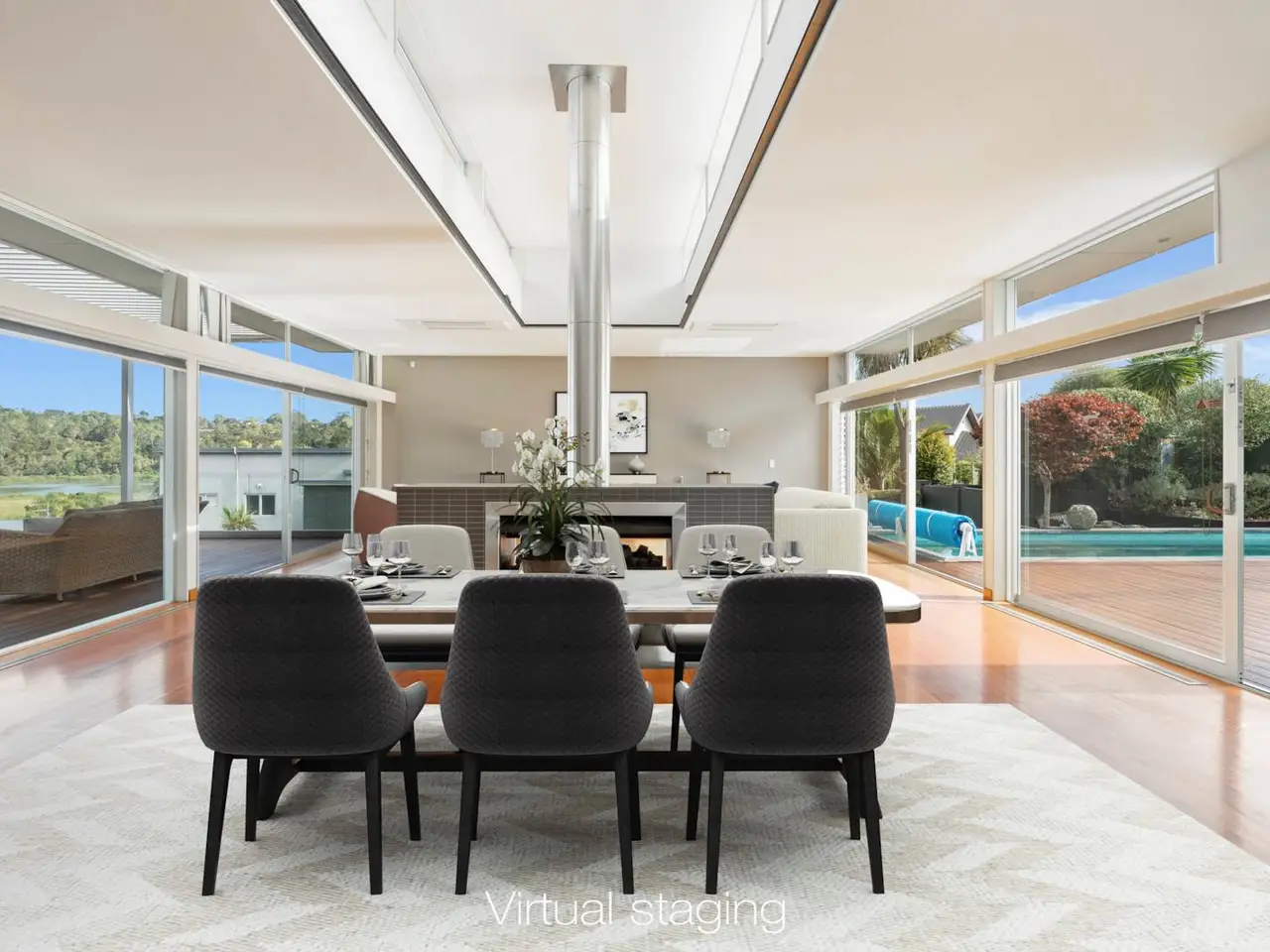 Close to Albany, this exceptional architectural home, designed by Francesco Tonetti of Architecttura – Devonport and built in collaboration with Metro Constructions, Auckland, is a true testament to high-quality craftsmanship and design. Set on a generous 1503sqm section, the home commands stunning views of Lucas Creek and its surrounding scenery. With wide road frontage spanning across Schopolo Place and Kerema Way, this residence offers panoramic vistas from every room, including the bath. Constructed using premium materials such as Titan Board, Linea weatherboard, a cavity system, and reinforced with extensive steel beams across all living areas, the home ensures both durability and luxury. Cantilevered decking and expansive glass windows paired with special aluminum louvre shutters allow the outdoors to blend seamlessly with the interiors. The bespoke floating stairs on steel with solid Tasmanian Oak treads and floors throughout are some of the features on offer. The design is a true testament to Tonetti’s intuitive understanding of space by skillfully using land’s natural contours, embracing the topography of the section to ensure that every room captures the breathtaking views and the ever-changing, vibrant sunsets. The home’s modern, contemporary vibe is perfectly complemented by a relaxed beachside living feel, making it an ideal sanctuary for those who appreciate luxury with a laid-back atmosphere. Upon entering, you are greeted by a spacious layout that ensures both privacy and connection with the surrounding environment. The master suite is a true highlight, offering sweeping views. Full glass ranch sliders and a Juliet balcony open out to the panoramic vistas, allowing natural light to flood the room and giving a sense of openness. The suite also features a large, modern walk-in wardrobe, offering ample space for your belongings. The ensuite is equally impressive, with a bathtub positioned strategically to allow you to soak in the views while you unwind. On the same level, two additional bedrooms enjoy their own share of stunning views. These rooms are serviced by a separate shower and toilet, as well as double vanities—ensuring that no one in the family will ever have to fight over bathroom time. This layout was designed with convenience in mind, allowing for easy use and comfort without compromising privacy. The home’s living spaces have been designed to cater to a variety of needs. On the West facing side, you’ll find expansive decks that provide the perfect setting for outdoor dining and relaxation, with incredible water views and sunsets. A set of louvres offers shelter if the weather turns, allowing you to enjoy the space year-round. On the East facing side, the outdoor area features a swimming pool, lush gardens, and a covered patio-ideal for entertaining or simply relaxing in a private, tranquil setting. Downstairs, the large family room provides plenty of space for casual living and relaxation. In addition, there is an abundance of storage throughout the home, making it as practical as it is beautiful. The lower level also offers flexibility with the option of two bedrooms or a single large bedroom, designed to adapt to the changing needs of a growing family. The family room flows out to a deck that leads to another room, perfect for use as a media room or a home gym, all with picturesque views. This home truly offers the best of both worlds: the luxury of modern living combined with the serene, ever-changing beauty of nature. With its intelligent design, breathtaking views, and versatile spaces, this residence presents a rare opportunity to purchase a truly unique property. Now is the perfect time to upsize and secure this exceptional home, don’t miss your chance to own this incredible piece of architectural brilliance. Deadline sale: Closes on Thursday 10 April 2025 at 2:00PM (unless sold prior)