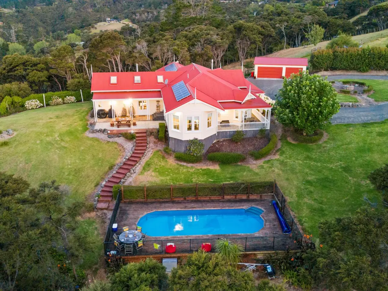 Walking through the gate and looking down the 100-metre drive, you will be captivated by this extraordinary home. This award-winning modern re-creation of a 1900’s era Victorian Villa, resplendent in its beauty, leaves a lasting impression on everyone who visits! It's more than just a home; it's a dream come true, blending contemporary construction with traditional character and the endearing charm of yesteryear!This 6-year-old Supreme Winner of the NZ Grand Designs House of the Year Award bears the exclusive hallmark of bespoke luxury and impeccable craftsmanship. Driving down the concrete driveway past the two-bedroom guest dwelling-The Lodge-the magnificent scale of the villa emerges.Private and established on more than three acres of native bush and landscaped gardens, the villa’s elevated position offers views of the McKenzie Ranges, Kaipara Harbour, and idyllic rural vistas.The luxurious, richly textured interior décor exudes glamourous opulence throughout, with plush carpet underfoot, gallery hallways, 3.6 m high ceiling, feature stained glass windows & bejewelled elegant chandeliers overhead. The layout is spacious & grand. Built to modern standards, the home features a heat pump, double glazing & solar power, providing energy-efficient, comfortable living all year round.The hub of the home is the epic open-plan designer kitchen/dining room with a towering Cathedral ceiling. The awe-inspiring rural views from the enormous kitchen picture frame window take your breath away. The designer kitchen features bespoke imported cabinetry, a Belling Gas Hob, a Wagener coal range & double fridges. Access opens out onto the entertainment area with steps leading down to the swimming pool & deck. A spa pool with a covered rotunda is also included.The family lounge, with its wood burner fire, is an intimate & relaxing space for the whole family. The library doubles as a media room, secondary living, or extra bedroom. The family bathroom features a claw-foot bathtub & pedestal basins.The five large bedrooms include the Master Suite with a walk-in wardrobe and ensuite bathroom.The Lodge accommodates extended family living or additional income opportunities, e.g., Air BnB.A large, near-new triple Versatile garage offers excellent storage & vehicle parking.
