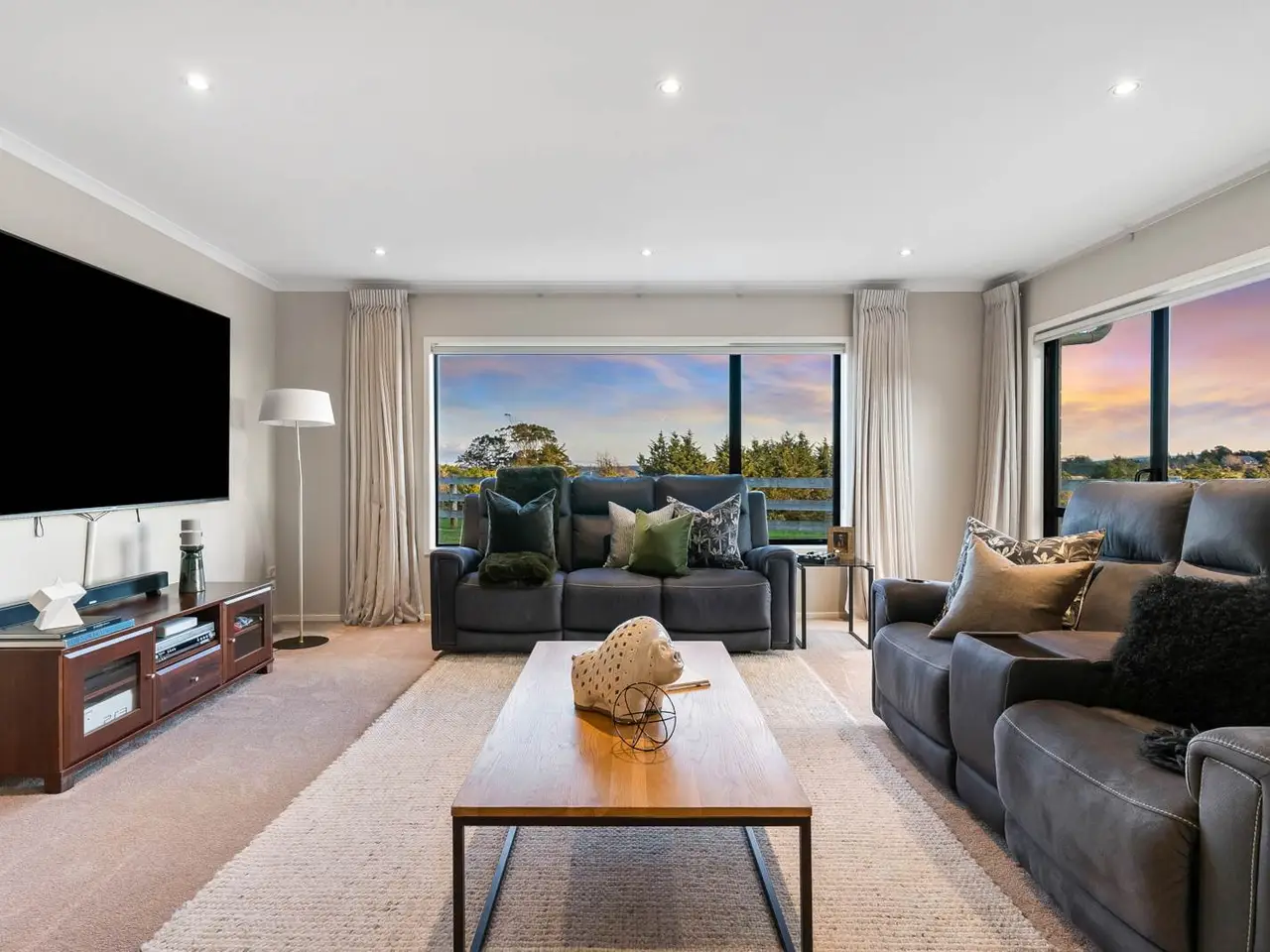 A long concrete driveway leads past the loading ramp and 130 square metre (approx) shed to expansive parking for myriad extra vehicles and entry to this 309 square metre (approx) brick with metal tile roof home located on 7975 square metres (1.9706 acres) of land with distant views to Port Waikato. Double doors off the entry foyer access a stylish lounge room which flows into sun-drenched open plan family living with both heat pump and wood-burning fire, entered also from a second set of double doors in the foyer. Sliding stacker doors spill out to scenic leisure and entertaining on two north-facing covered patios, one luxuriously equipped with café blinds and a large bubbling spa adjoining fully fenced fibreglass salt water pool with solar heating, pool robot and roller cover. There’s yet another covered al fresco area to enjoy off the dining and family rooms. Carpet morphs to large easy-care tiles in the streamlined dream kitchen with impressive cabinetry, engineered stone benchtops, quality appliances, island breakfast bar with pendant lighting and butler’s pantry with a second sink and dishwasher. Plantation shutters dress windows here while drapes adorn the spacious living areas. Off the hallway there are numerous storage cupboards and a laundry, also with built-in storage and outdoor access. Bedrooms are plentiful here – five in all, including the master with both fan and heat pump, walk in wardrobe, ensuite with bath and fully tiled shower and a sliding door out to the poolside patio and bubbling bliss in the spa. Three of the remaining four bedrooms have built-in robes, one has a heat pump and another, doubling as a large home office, boasts a walk-in robe. Placed between the bedrooms, a family bathroom is cleverly divided into three separate zones - vanity, toilet and bath and shower, conveniently facilitating individual use. The hallway also offers access to the double lock up garage with marine carpet and storage. Outdoors the fabulous 130 square metre (approx) Aztec high stud concrete floored shed features two 4m roller doors plus small door, a mezzanine floor, work benches and 3 phase power. There are 2 paddocks, yards and a loading ramp water tanks and plentiful hard stand parking for all manner of vehicles. Location is excellent, within 5kms to Pukekohe Township and community facilities and close proximity to numerous reputable schools. This brilliantly equipped super-spacious indoor/outdoor entertainer has it all! Our vendors have plans in motion and are keen to sell so bring the family and inspect soon. Excellently presented ultra-spacious 309m2 (approx) brick residence Concrete driveway & expansive parking/hardstand parking Tranquil countryside views & distant Port Waikato glimpses HRV system. Alarm system. 3 heat pumps Sunlit lounge & open plan family living both off foyer entry Family living/wood-burning fire & heat pump. Stylish dining Superb large excellently equipped kitchen + butler’s pantry Sliding & stacker doors out to scenic al fresco entertaining Several covered north-facing patios/café blinds & large spa Fenced solar heated salt water pool. Roller cover Abundant hallway storage. Laundry with outdoor access Cleverly designed 3 zone family bathroom/bath & shower 4 light spacious bedrooms, 3 + built-in robes, 1 + walk in robe Master + fan, heat pump, walk-in robe, chic ensuite & patio Hallway access to double lock-up garage with marine carpet & storage Equipped 130 sqm (approx) Aztec high stud concrete floored shed Pool shed. Wood shed. Grassy children/pets play space Fully fenced property. 2 paddocks. Yards & loading ramp 2 x 30,000lts water tanks & filtration system. Garden shed Less than 5km to Pukekohe Township Township and community 12kms to Bombay Motorway. 42kms to Auckland Airport Zoned for Buckland school, Pukekohe High & Intermediate Auction: 177 King Street, Pukekohe (Branch Office) on Thursday 18 September 2025 at 2:00PM (unless sold prior)