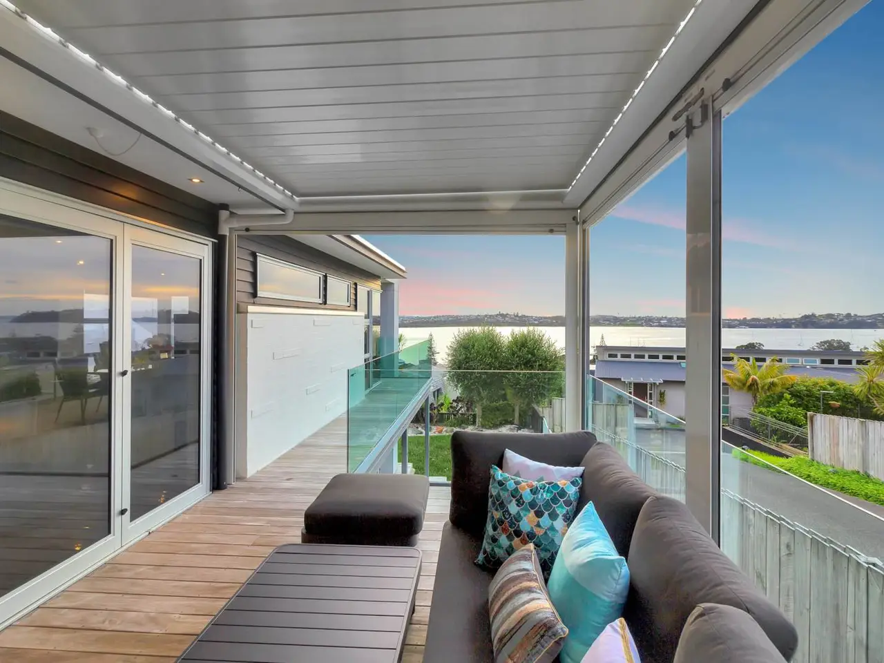 Expansive decking with breathtaking Estuary and city skyline views
