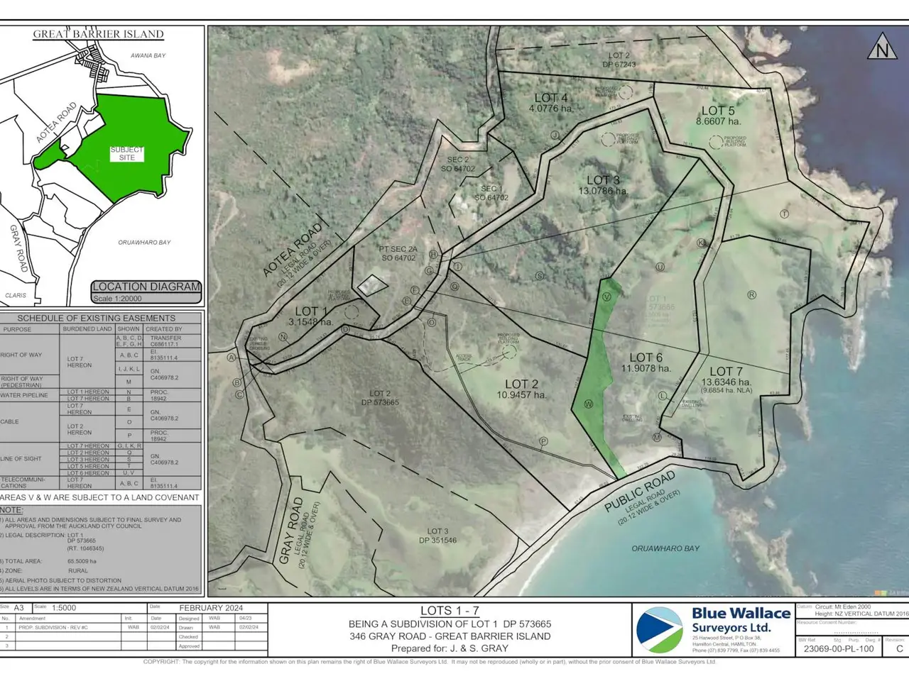 This remarkable 10.9 hectare (26.9 acres) coastal property is the last block of land available that leads directly onto the pristine white sands of Palmers Beach and some of the best surf on Great Barrier Island. The ultimate dream destination for those seeking tranquility, beauty, surf and sun. The property is accessed via a private road leading off Gray Road from the top of the Awana Hill. From there, it's only a short drive until you reach one of the best level building platforms on the Barrier with breathtaking views out to the Pacific Ocean, Medlands Beach and Kaitoke Beach. Build your dream retreat here and you can walk down your private wetlands to famous Palmers Beach with 127 meters of your own beach frontage. In addition the site is only 6.5 kilometers (4 miles) from the Claris airport and 2 kilometers from Awana Beach. This is a once in a lifetime opportunity to secure an exclusive landmark site that has never been on the market before. Subject to the issue of Certificate of Title.To be actioned 26 February 2025 (if not sold prior). Auction: 34 Shortland Street, City on Wednesday 26 February 2025 at 10:00AM (unless sold prior)