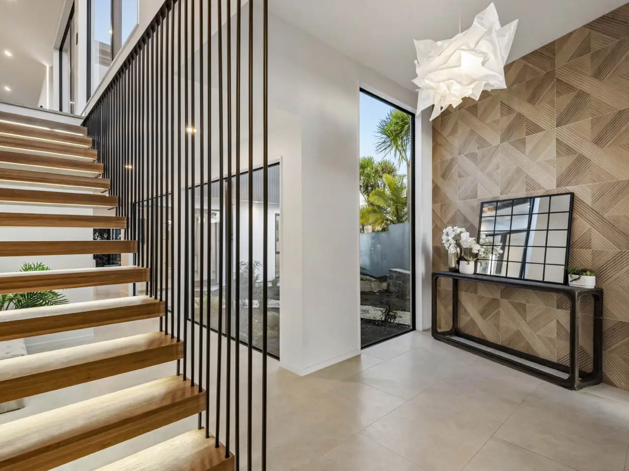 Perched on one of Northcote Point’s most admired streets, this exceptional residence captures spectacular views and embodies the very best of refined coastal living. Just moments across the harbour from Auckland’s CBD, this tightly held neighbourhood is celebrated for its charm, heritage, and enviable convenience — a place where city energy meets relaxed North Shore living.Step inside this brand-new, architecturally designed family retreat and experience the perfect blend of elegance, comfort, and function. Spanning approximately 300m² across two levels, the home delivers a sense of space and sophistication with multiple living zones, ideal for both entertaining and quiet retreat.The upper level is the heart of the home — a sun-filled, open-plan living and dining area framing sweeping water views. The designer kitchen is a dream for entertainers, featuring premium appliances including a gas hob, built-in oven, steamers, and microwave, complemented by a wine cellar for effortless hosting. The living space flows through to a private master suite with panoramic harbour and city vistas, a walk-in robe, and a luxurious ensuite with a soaking tub overlooking the lights of Auckland — a true sanctuary at day’s end.Downstairs, a grand double-height foyer sets the tone for the home’s impressive design. Three additional bedrooms (including one ensuite) share this level with a media room and a generous family lounge that opens onto a sheltered L-shaped balcony — perfect for year-round entertaining or quiet morning coffees.Designed for low-maintenance luxury, this home is state-of-the-art in both style and comfort, offering a lock-up-and-leave lifestyle without compromise.Positioned minutes from Stafford Park, Halls Beach, and Little Shoal Bay, with vibrant cafés, restaurants, and city access close by, this is Northcote Point living at its finest — sophisticated, scenic, and effortlessly convenient.Don’t miss the opportunity to make this remarkable property your own.