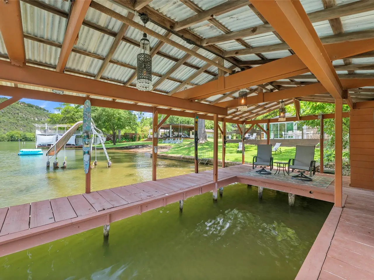 Rested along one of the most coveted stretches of Lake Austin, 3100 Edgewater Drive is a charming waterfront retreat offering 100'+/- of waterfront just minutes from the city. This privately gated property spans just over an acre, shaded by towering cypress and oak trees that provide a picturesque and tranquil setting. The two-bedroom, two-bathroom home is designed for effortless lakeside living, with inviting interiors that blend comfort and charm. Whether you're unwinding indoors or stepping outside to take in the natural beauty, this retreat is perfectly suited for those who appreciate a relaxed waterfront lifestyle. Steps from the door you will find fish, turtles and a bird watchers paradise. A highlight of the property is the covered tie-up boat dock, an ideal spot for gathering with friends while watching the boats drift by in the shade. The back patio extends the living space outdoors, offering a perfect place to enjoy morning coffee or sunset cocktails with the sparkling lake as your backdrop. Whether used as a full-time residence or a weekend getaway, 3100 Edgewater Drive embodies the essence of laid-back luxury, where every day on Lake Austin feels like a retreat. Within Eanes ISD. 24-Hour Advance Showing Notice Required. Tax and assessed values are estimates for illustration purposes only. All figures should be independently verified.