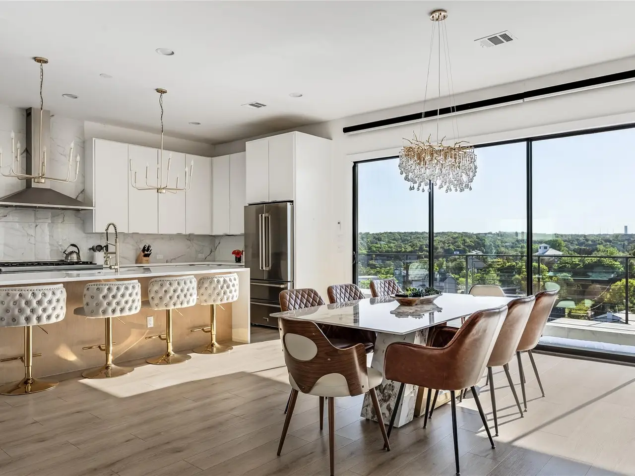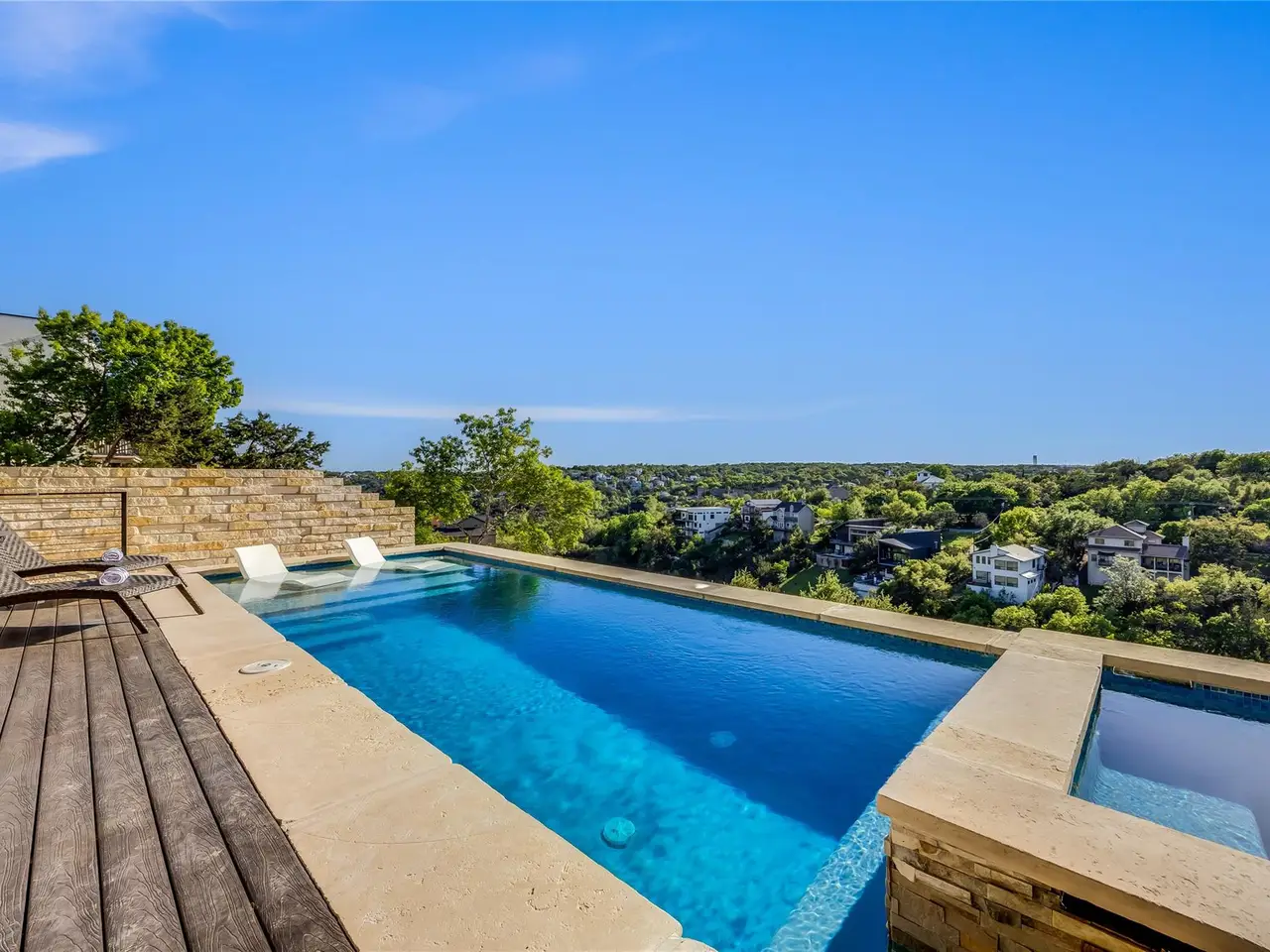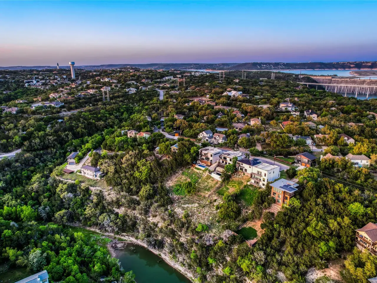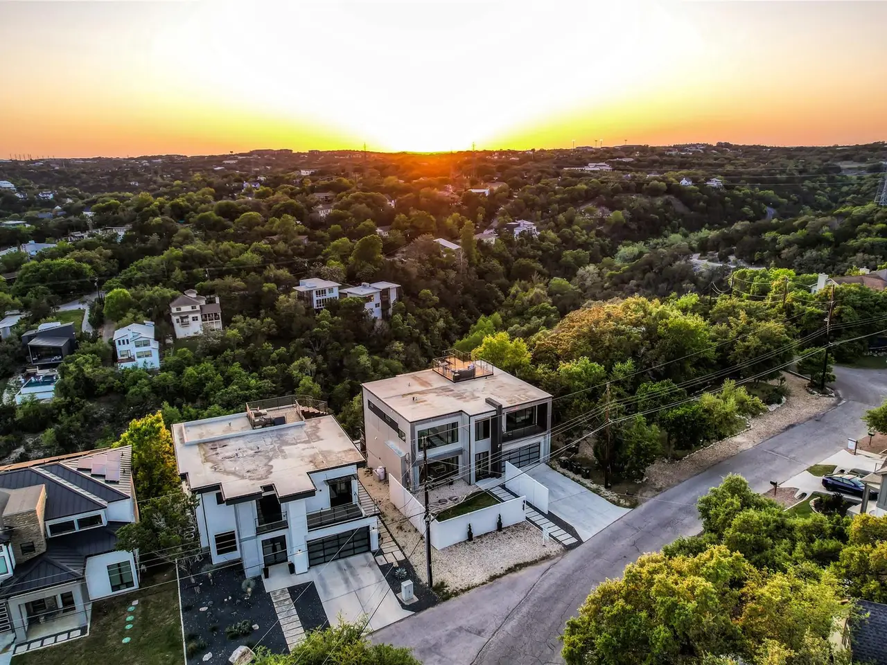 Nestled in the serene enclave of Apache Shores, Firefly Canyon is a breathtaking modern retreat offering panoramic views and a coveted setting backing onto Apache Shores Lake, a tranquil, creek-fed oasis. This stunning home boasts five spacious bedrooms and four luxurious bathrooms, designed with an open-concept layout that seamlessly blends style and functionality. The chef's kitchen features high-end stainless steel appliances, expansive quartz countertops, a waterfall island, and sleek European-inspired cabinetry. The generous dining area is framed by elegant sliding glass doors, opening onto a sprawling outdoor patio that invites effortless indoor-outdoor living. Designed for both relaxation and entertaining, this home offers a private rooftop deck, a cozy fire pit, and a heatable pool and spa--all set against the backdrop of breathtaking lake views. The primary suite is a true retreat, featuring a private balcony and a spa-inspired bathroom. Perfectly situated just 10 minutes from Lakeway and 20 minutes from downtown Austin, Firefly Canyon balances privacy with convenience. Its prime location and luxurious amenities make it an outstanding investment opportunity, offering top-tier rental potential year-round in Austin's thriving vacation market. With easy access to Lady Bird Lake, Lake Travis, top-ranked schools, medical facilities, scenic hiking trails, and premier shopping and dining, this exceptional property delivers an unparalleled lifestyle in one of Austin's most sought-after communities.