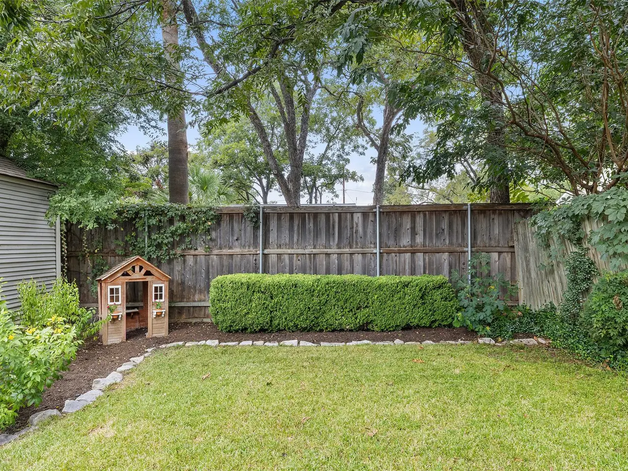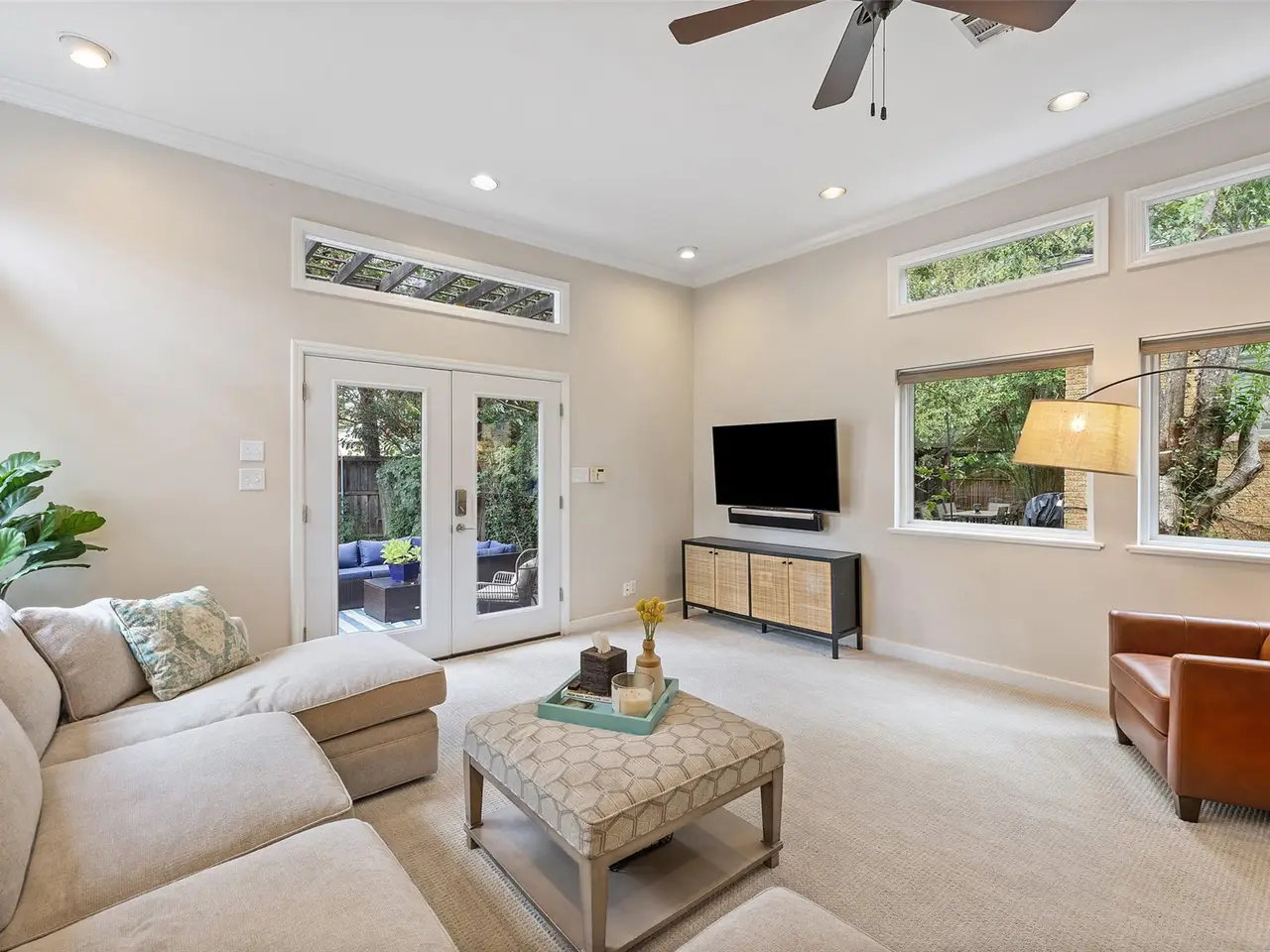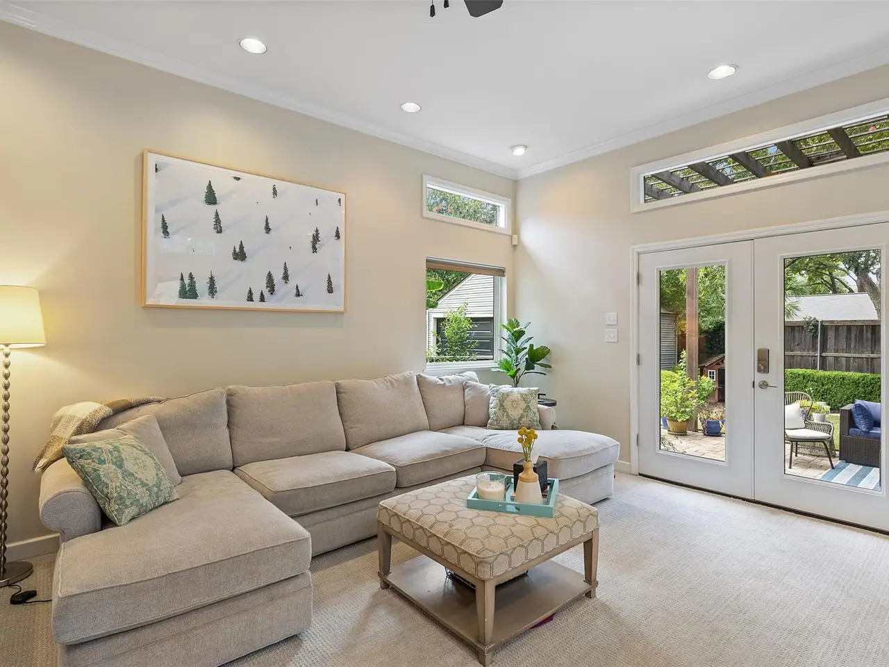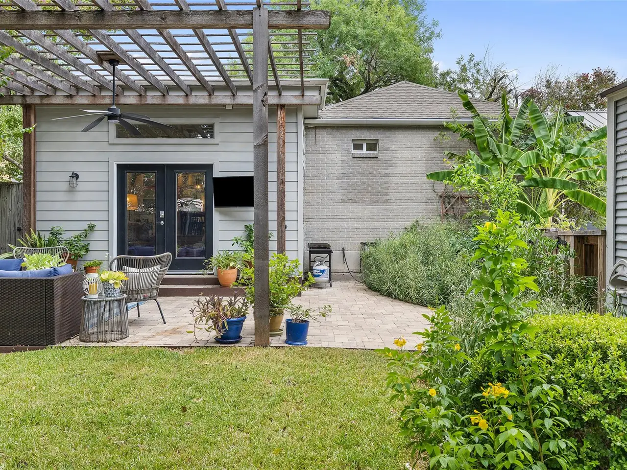 Welcome to 1510 Hartford Road, a timeless 1940 residence lovingly updated to pair modern comfort with classic character. From the moment you step inside, the charm is undeniable--corner windows in the front living room frame views of the porch and yard, bathing the space in natural light. This inviting area flows into the kitchen and dining room, where dark green cabinetry, counter seating, and a statement chandelier strike the perfect balance of style and function.Just beyond, a sunken living room offers a cozy yet open atmosphere with built-in shelving, expansive windows, and French doors to the backyard. It's a versatile space--ideal for gatherings, quiet evenings, or simply enjoying the home's abundant natural light.The primary suite has been re-imagined as a true retreat. A custom walk-in closet with a center island connects seamlessly to a light-filled bathroom featuring dual vanities and fresh, modern finishes. A spacious second bedroom and full bath complete the interior, offering comfort and flexibility for guests, family, or a home office.Out back, a covered porch with a mounted TV sets the stage for relaxed evenings, while the grassy lawn offers room for pets, play, or gardening. A detached two-car garage with a long private driveway adds convenience and storage.Situated in the coveted Old Enfield neighborhood, 1510 Hartford Road places you moments from Clarksville's shops, restaurants, and parks, as well as the University of Texas, the Texas Capitol, and Downtown Austin. With its rich character and central setting, this home is a true Central Austin treasure.