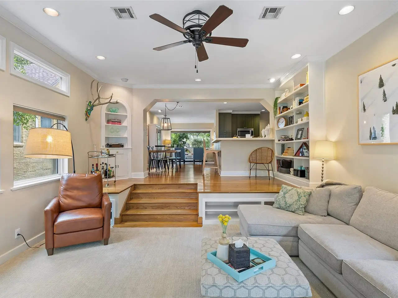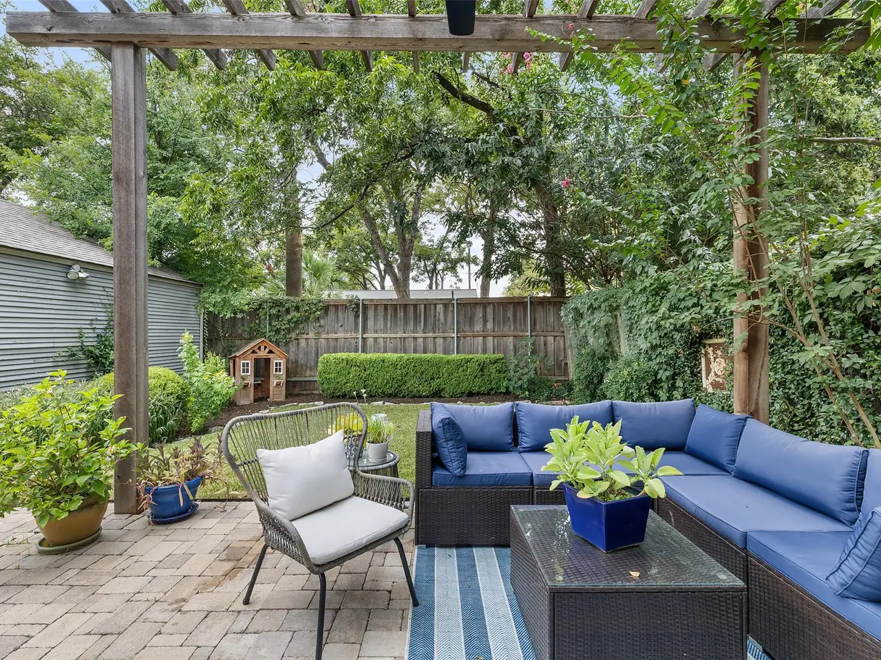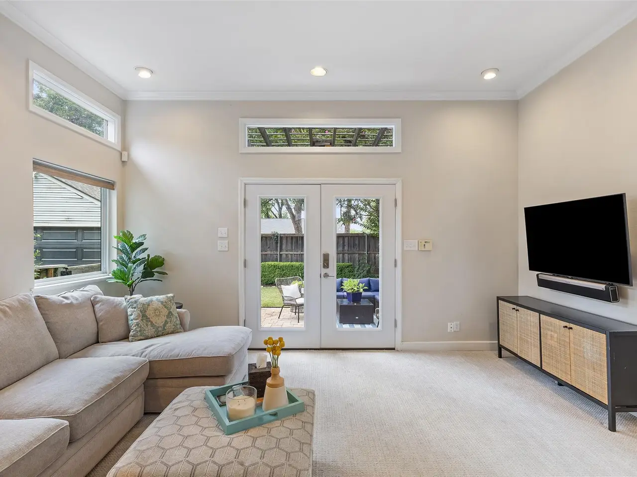 Welcome to 1510 Hartford Road, a timeless 1940 residence lovingly updated to pair modern comfort with classic character. From the moment you step inside, the charm is undeniable--corner windows in the front living room frame views of the porch and yard, bathing the space in natural light. This inviting area flows into the kitchen and dining room, where dark green cabinetry, counter seating, and a statement chandelier strike the perfect balance of style and function.Just beyond, a sunken living room offers a cozy yet open atmosphere with built-in shelving, expansive windows, and French doors to the backyard. It's a versatile space--ideal for gatherings, quiet evenings, or simply enjoying the home's abundant natural light.The primary suite has been re-imagined as a true retreat. A custom walk-in closet with a center island connects seamlessly to a light-filled bathroom featuring dual vanities and fresh, modern finishes. A spacious second bedroom and full bath complete the interior, offering comfort and flexibility for guests, family, or a home office.Out back, a covered porch with a mounted TV sets the stage for relaxed evenings, while the grassy lawn offers room for pets, play, or gardening. A detached two-car garage with a long private driveway adds convenience and storage.Situated in the coveted Old Enfield neighborhood, 1510 Hartford Road places you moments from Clarksville's shops, restaurants, and parks, as well as the University of Texas, the Texas Capitol, and Downtown Austin. With its rich character and central setting, this home is a true Central Austin treasure.