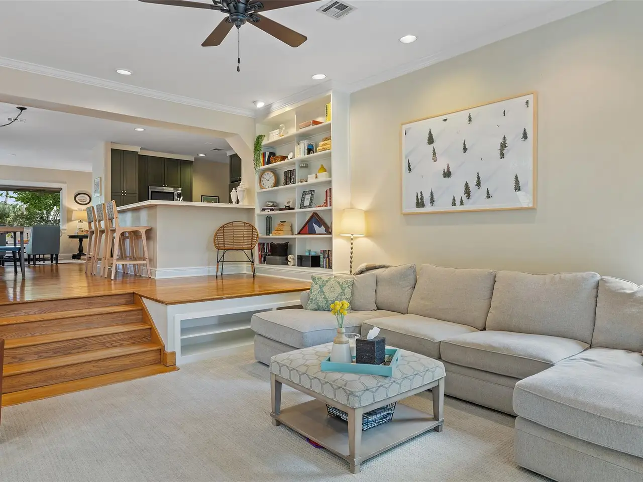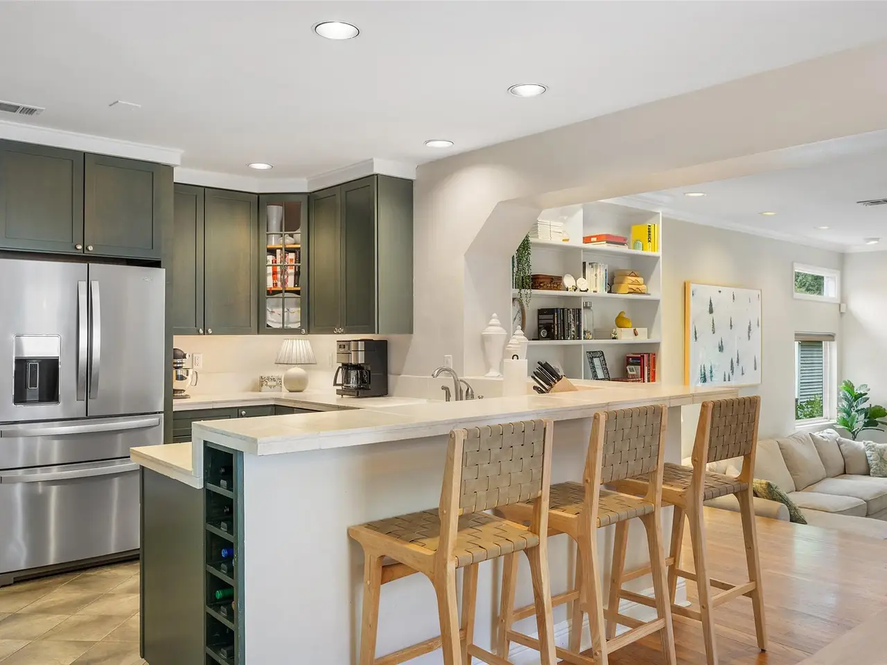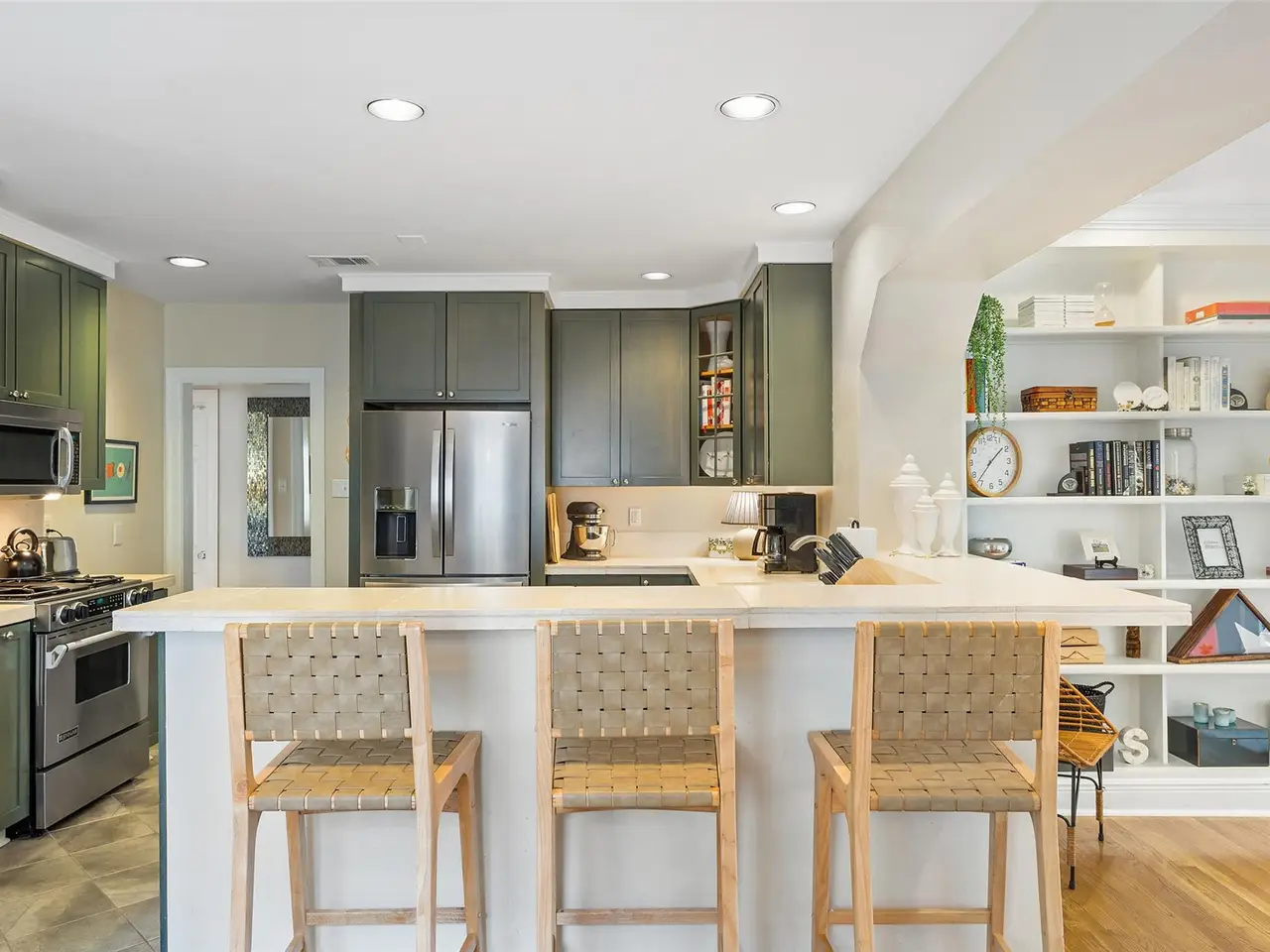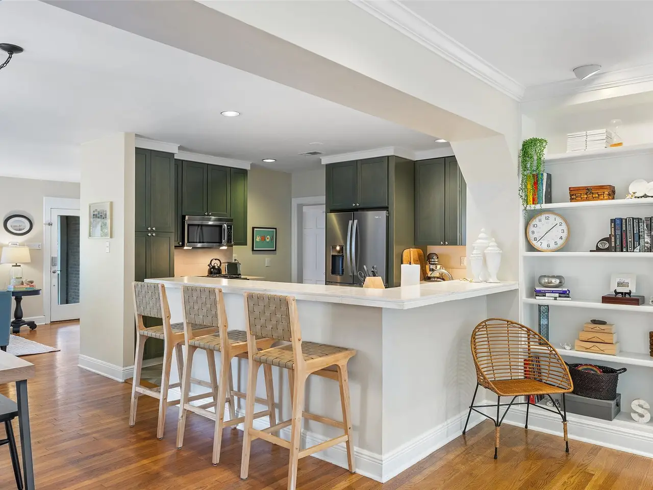 Welcome to 1510 Hartford Road, a timeless 1940 residence lovingly updated to pair modern comfort with classic character. From the moment you step inside, the charm is undeniable--corner windows in the front living room frame views of the porch and yard, bathing the space in natural light. This inviting area flows into the kitchen and dining room, where dark green cabinetry, counter seating, and a statement chandelier strike the perfect balance of style and function.Just beyond, a sunken living room offers a cozy yet open atmosphere with built-in shelving, expansive windows, and French doors to the backyard. It's a versatile space--ideal for gatherings, quiet evenings, or simply enjoying the home's abundant natural light.The primary suite has been re-imagined as a true retreat. A custom walk-in closet with a center island connects seamlessly to a light-filled bathroom featuring dual vanities and fresh, modern finishes. A spacious second bedroom and full bath complete the interior, offering comfort and flexibility for guests, family, or a home office.Out back, a covered porch with a mounted TV sets the stage for relaxed evenings, while the grassy lawn offers room for pets, play, or gardening. A detached two-car garage with a long private driveway adds convenience and storage.Situated in the coveted Old Enfield neighborhood, 1510 Hartford Road places you moments from Clarksville's shops, restaurants, and parks, as well as the University of Texas, the Texas Capitol, and Downtown Austin. With its rich character and central setting, this home is a true Central Austin treasure.